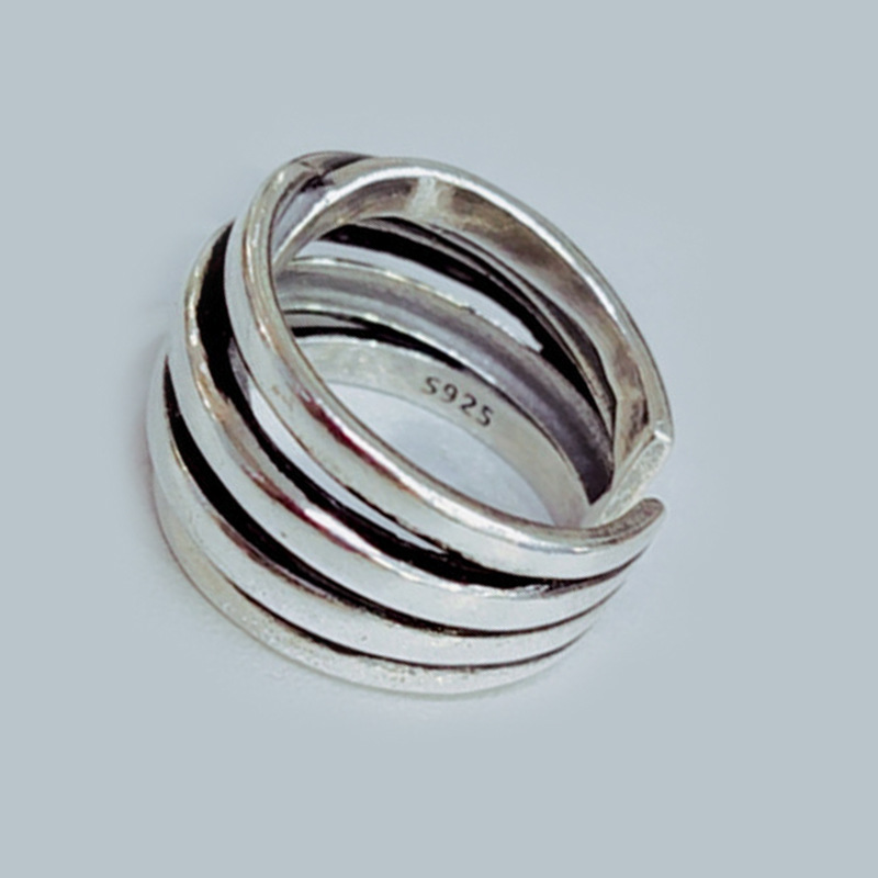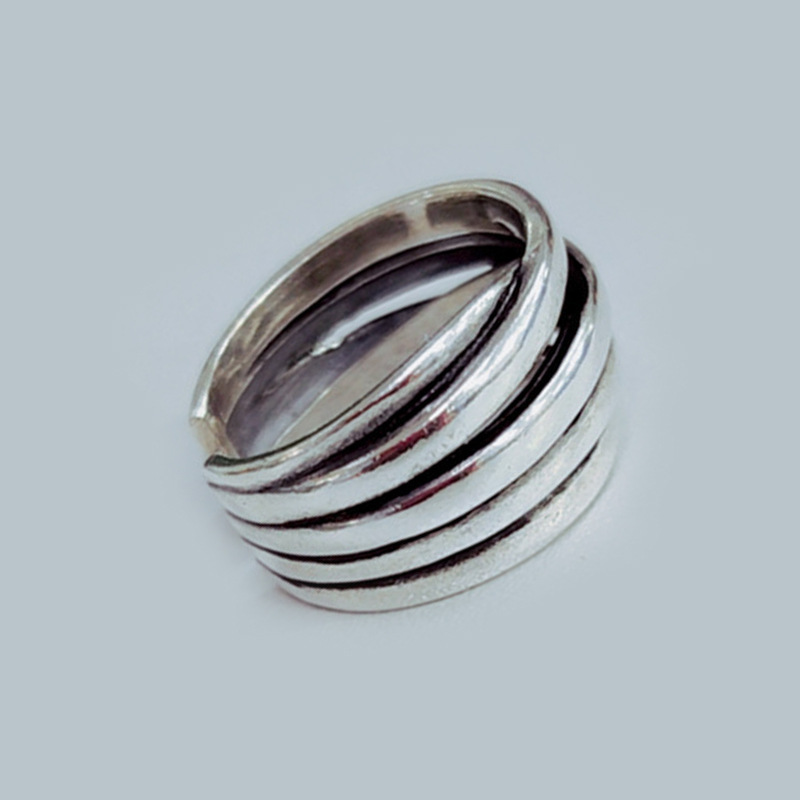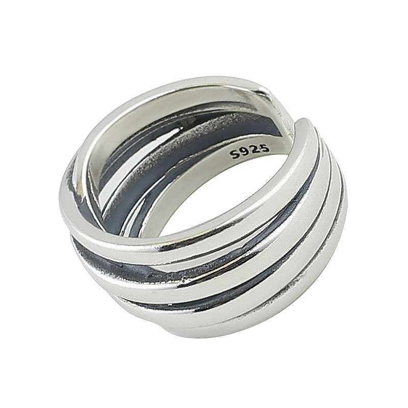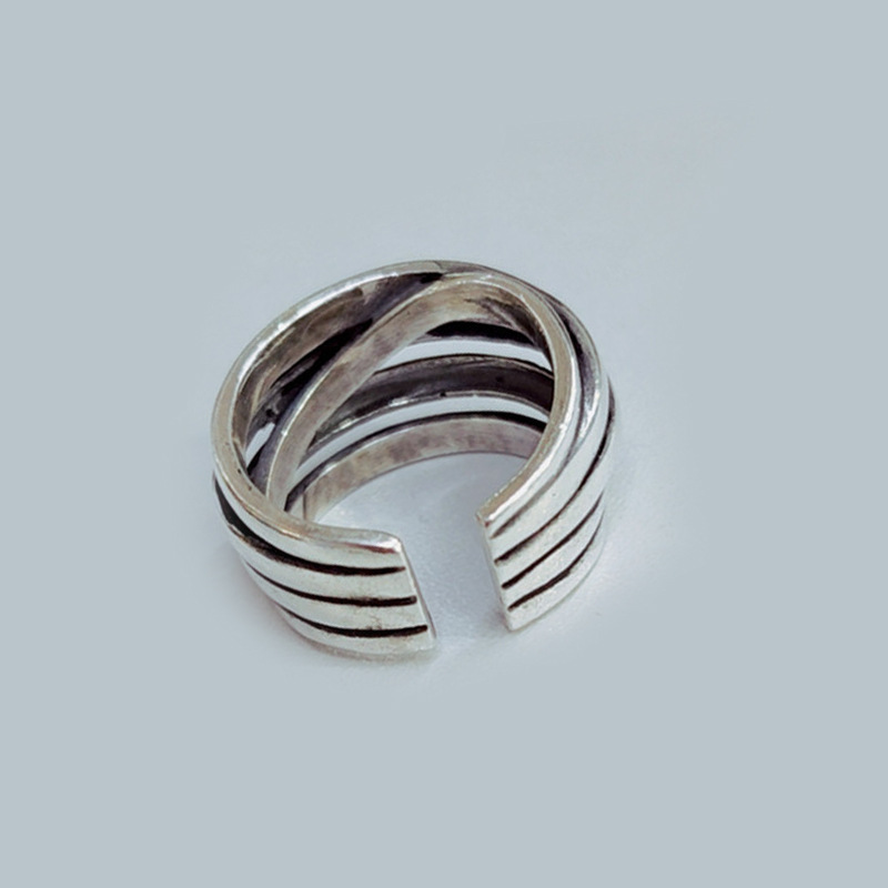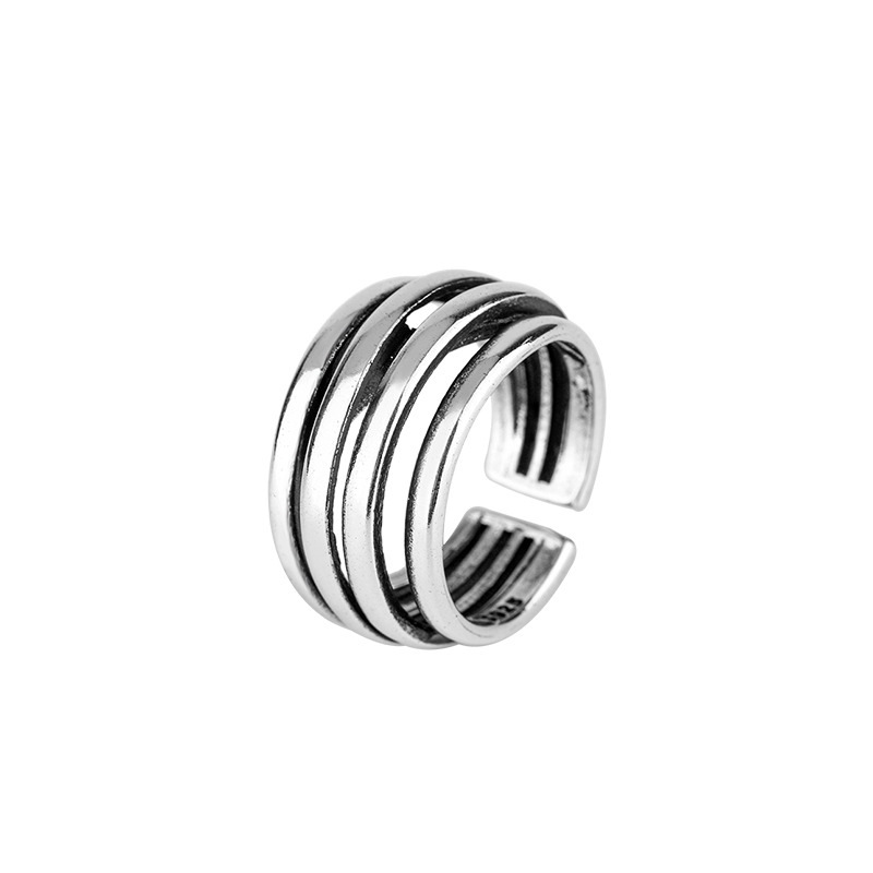 0 Review for Four-circle Fixed Hong Kong Style Open Personalized Silver-plated Glossy Line Ring