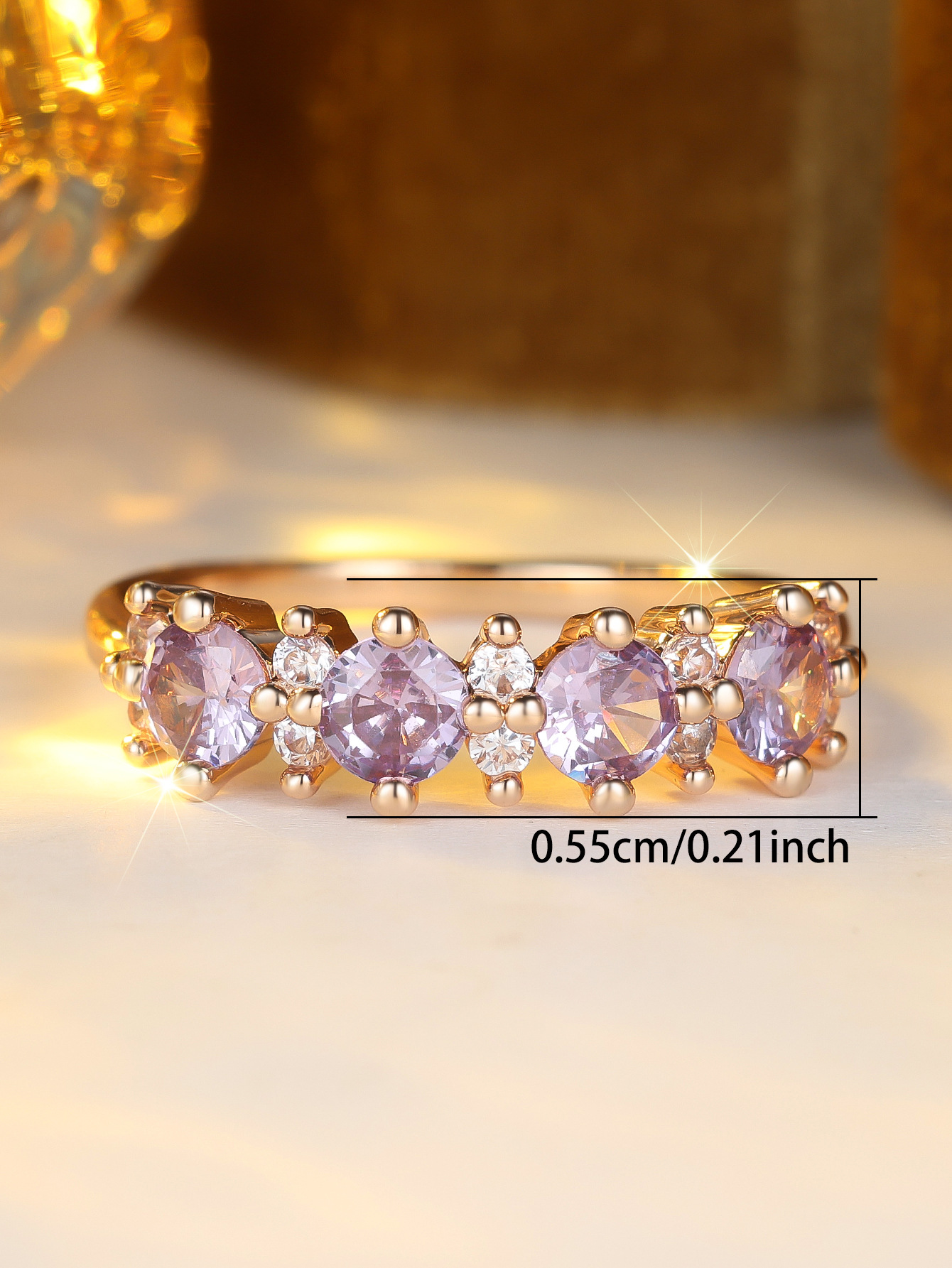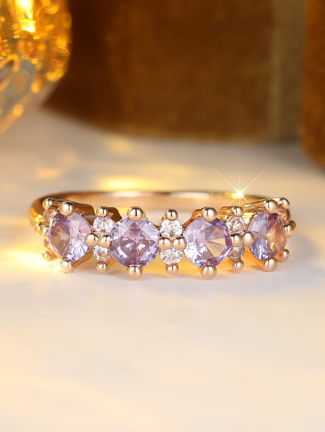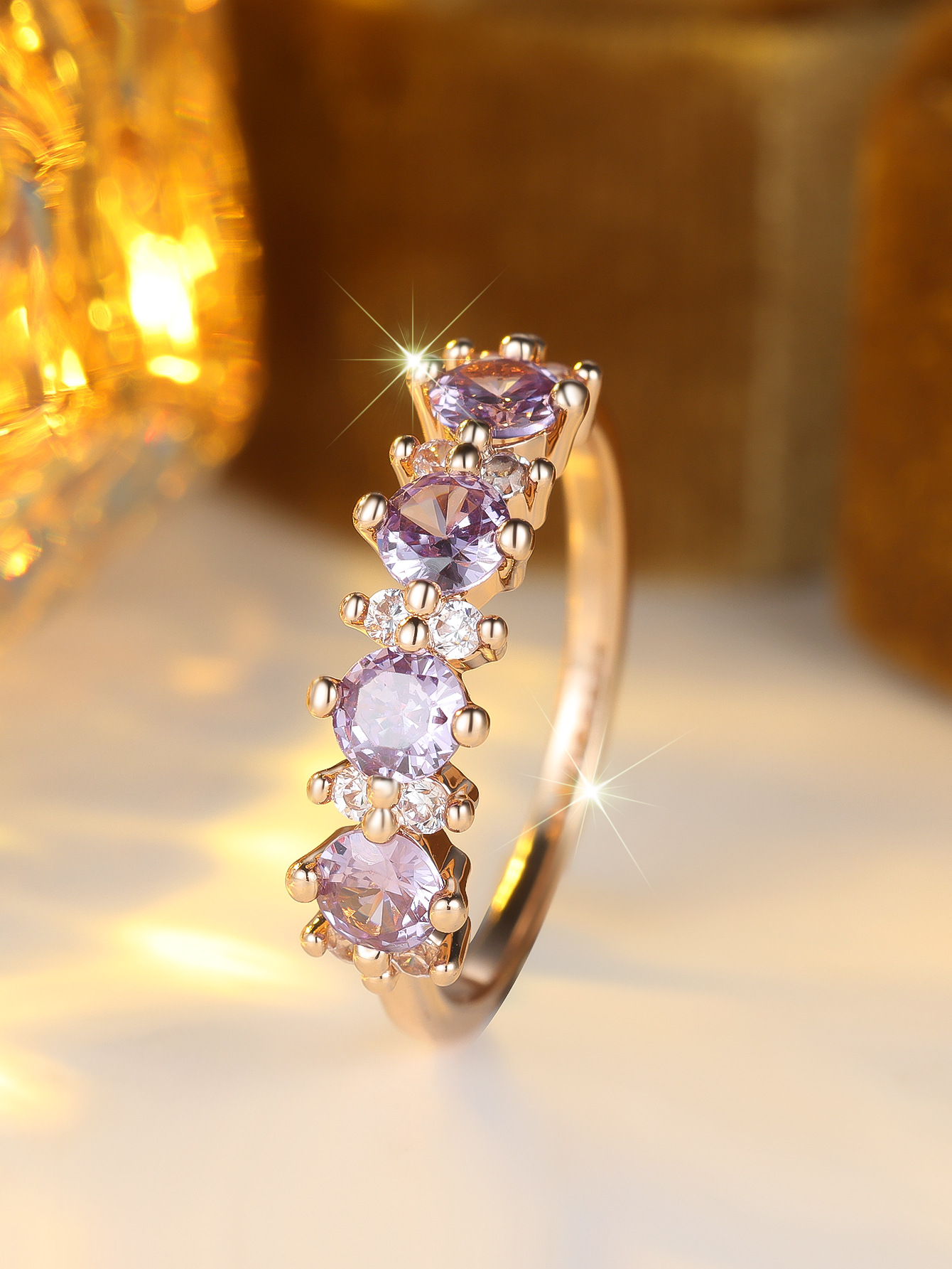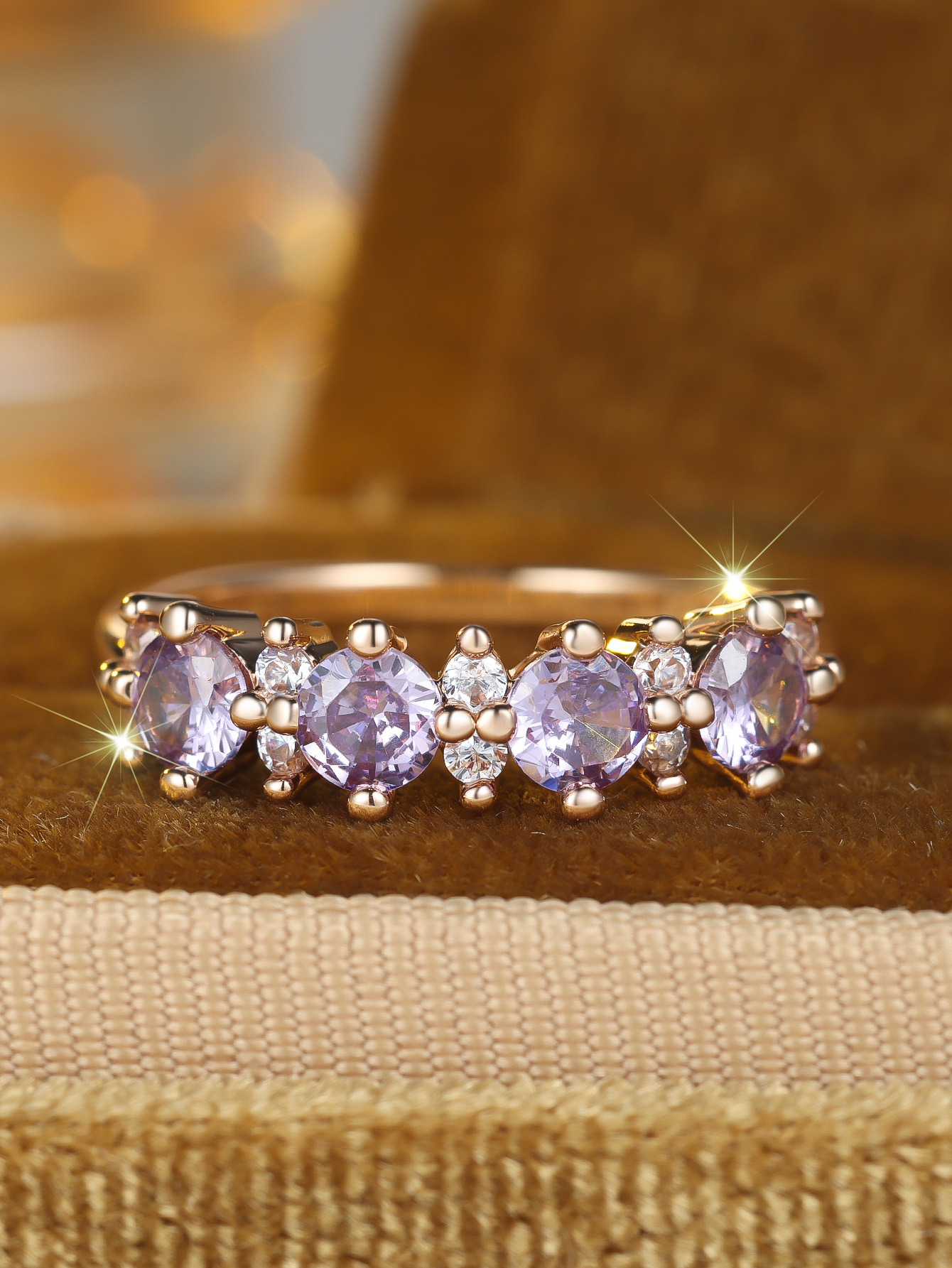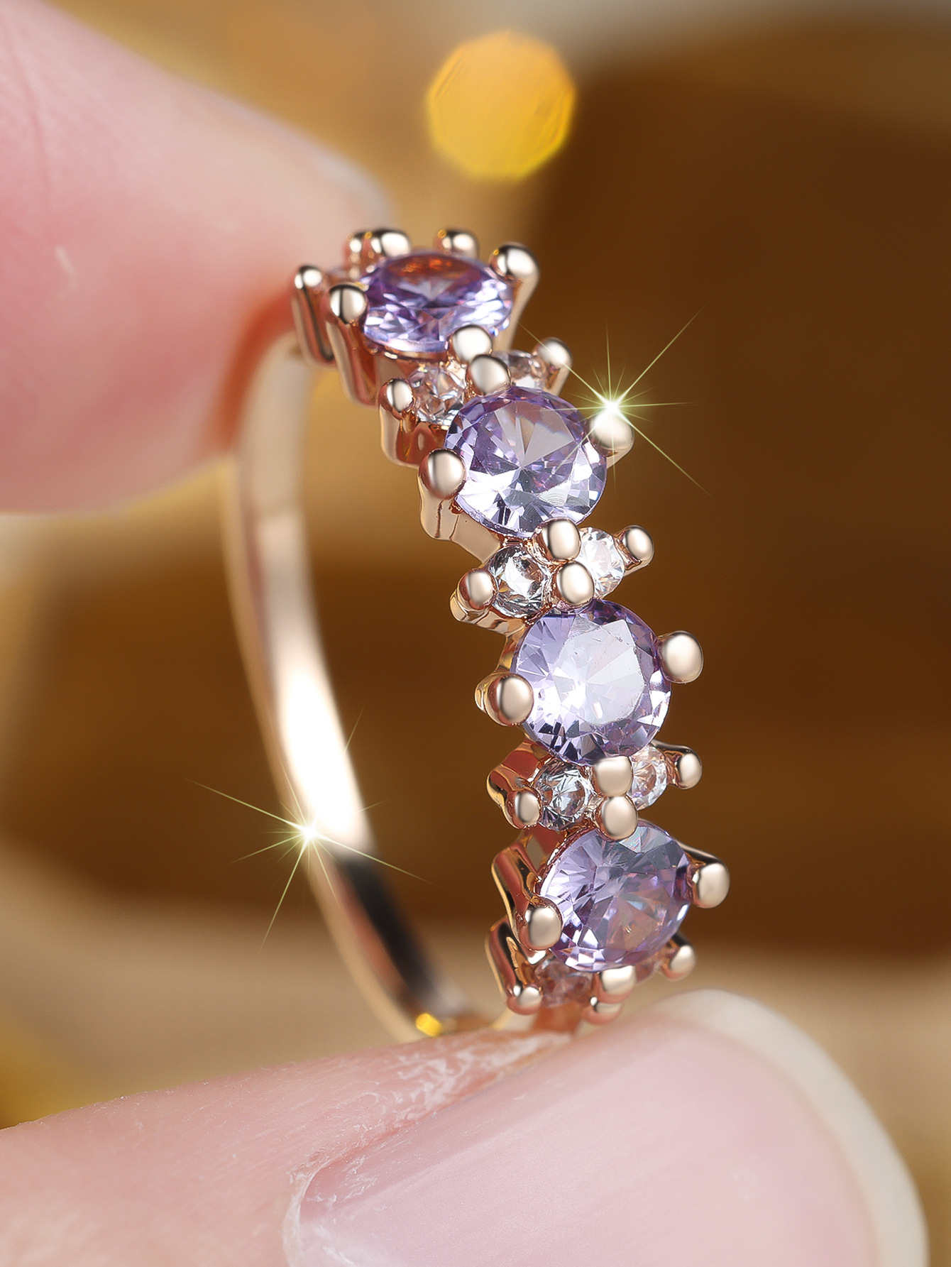 0 Review for French-style Round Purple Diamond-edged Ring For Women