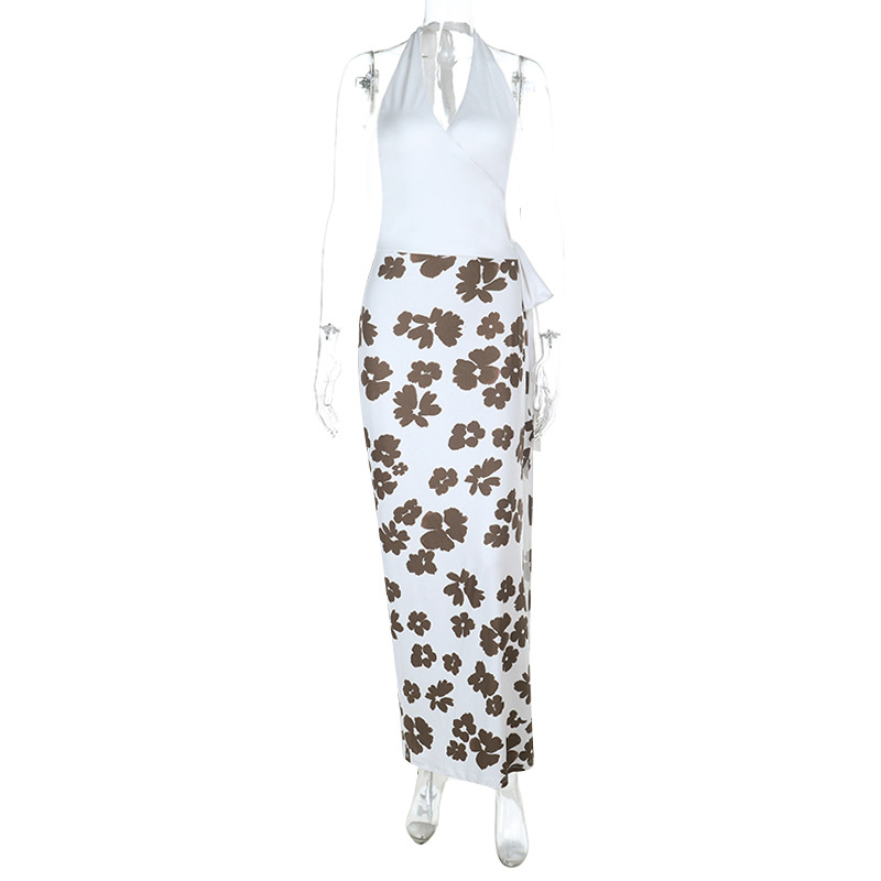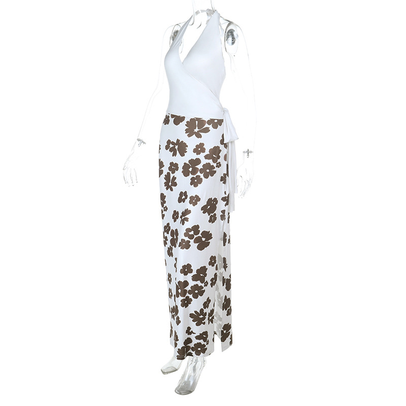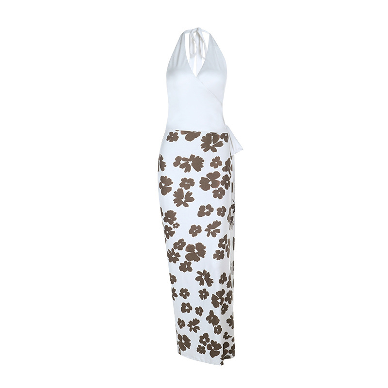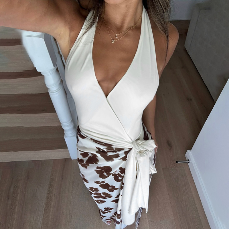 0 Review for Fully Managed V-Neck Printed Patchwork Chic Long Dress