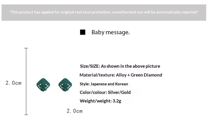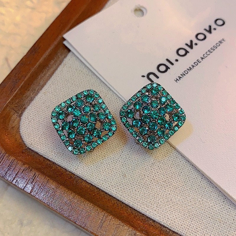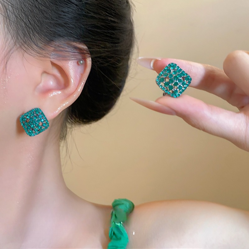 0 Review for Green Fully Paved Hollow-out Crystal Square Stud Earrings