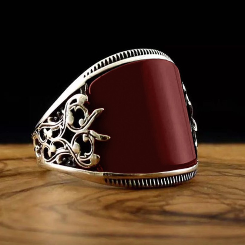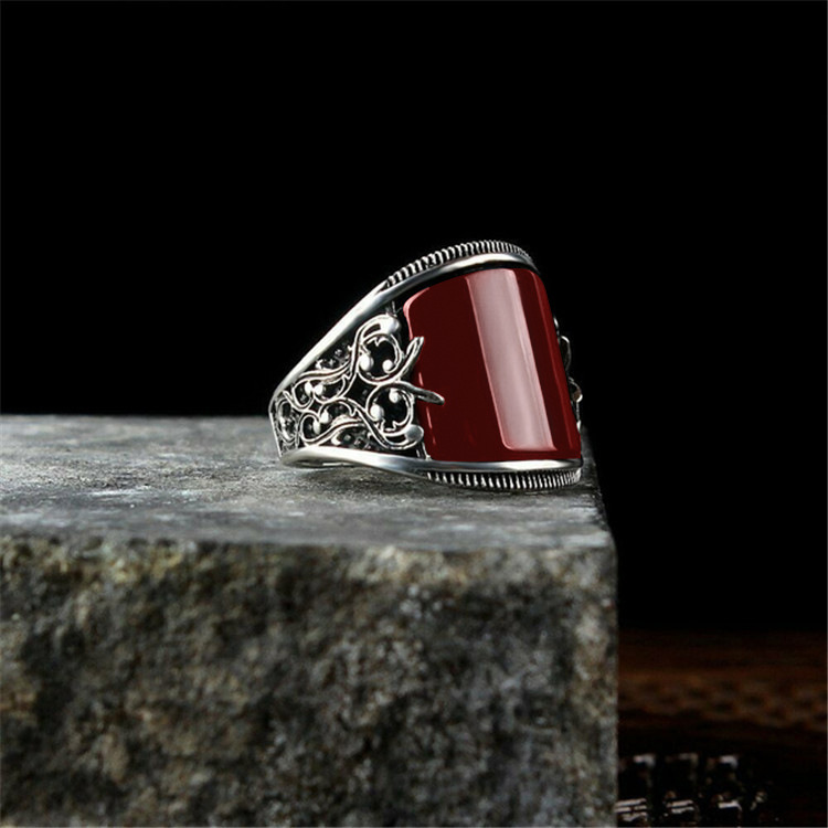 0 Review for Handcrafted Red Baked-paint Relief-pattern Ring