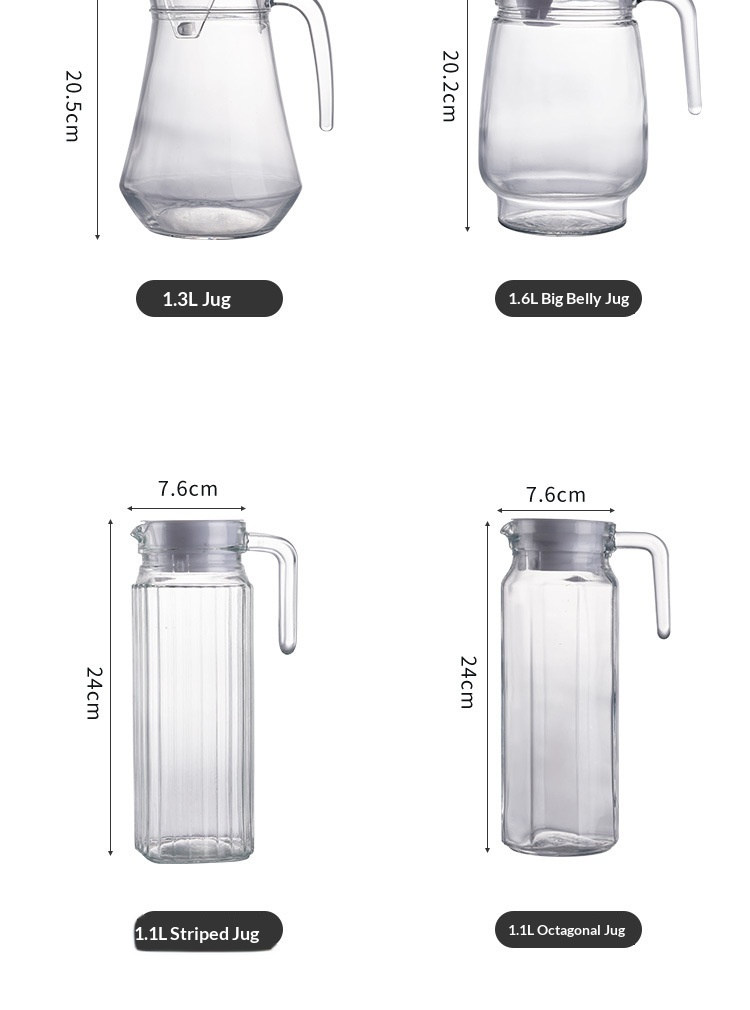 Style: 500 ml striped cold water jug, 500 ml spray-top cold water jug, 500 ml octagonal cold water jug