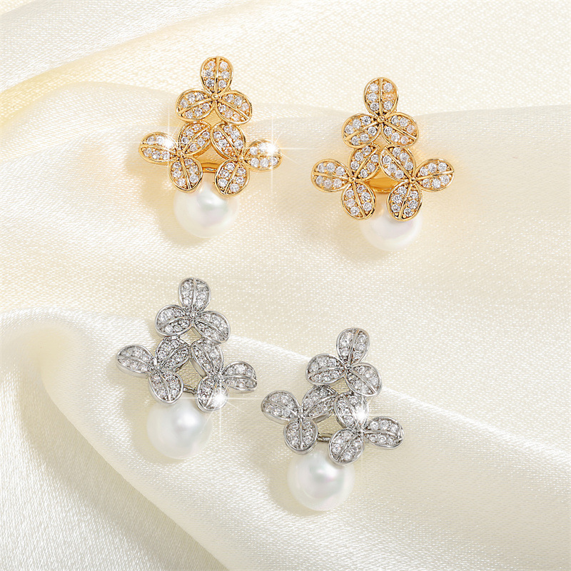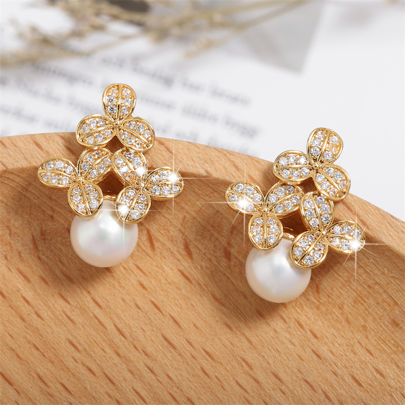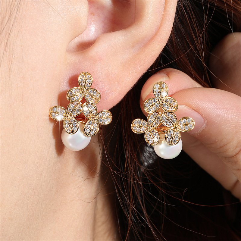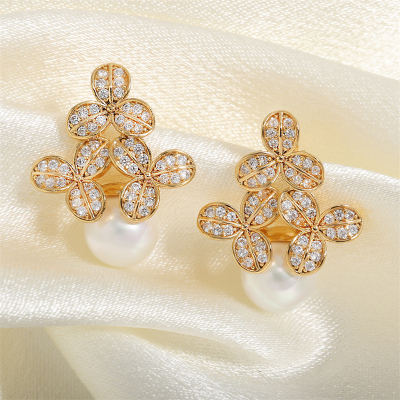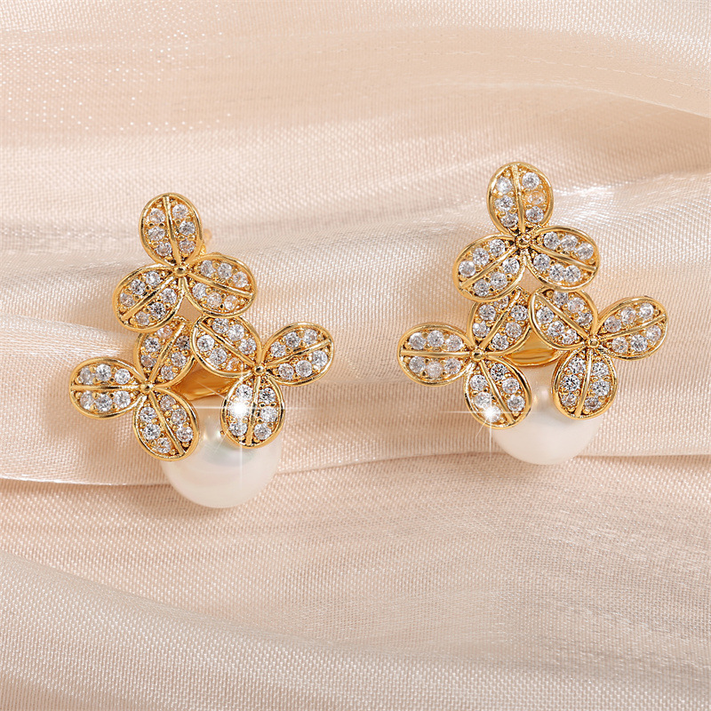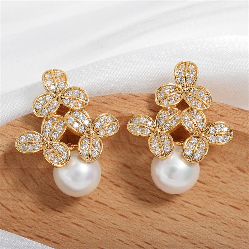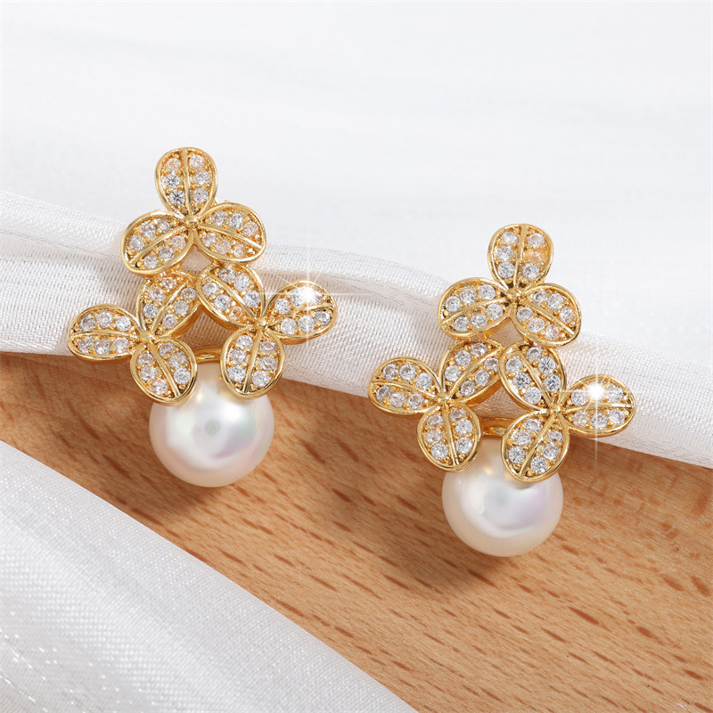 0 Review for High-grade Micro-inlaid Flower Pearl Earrings