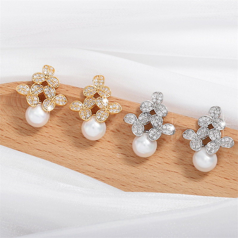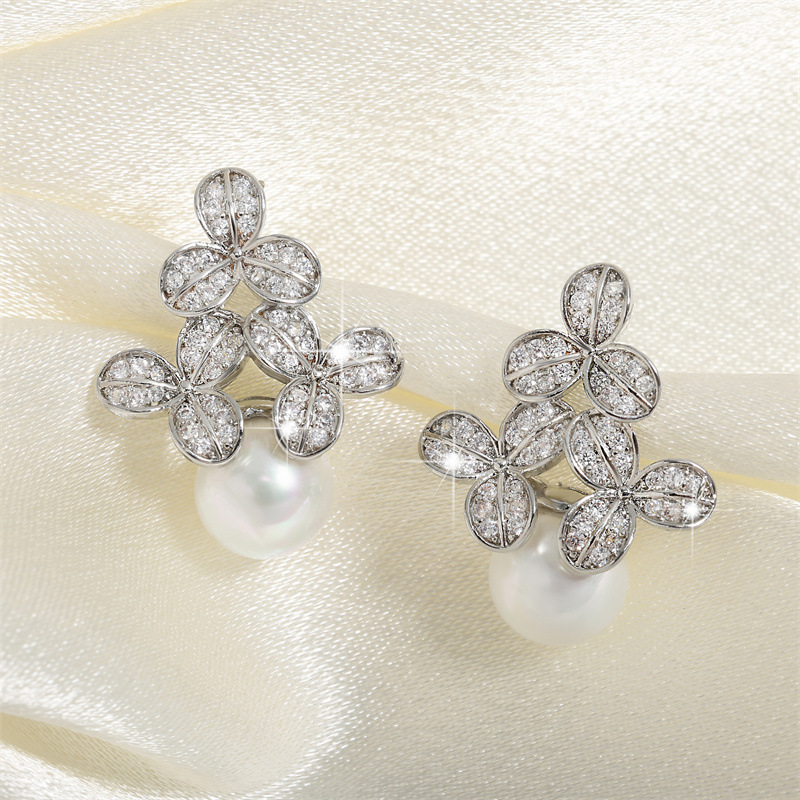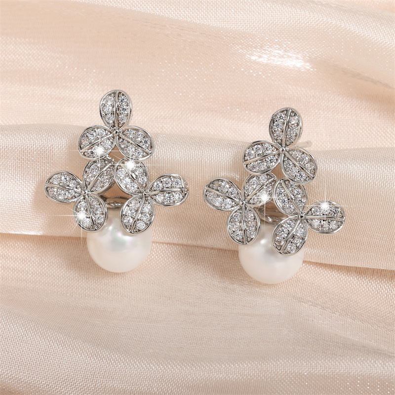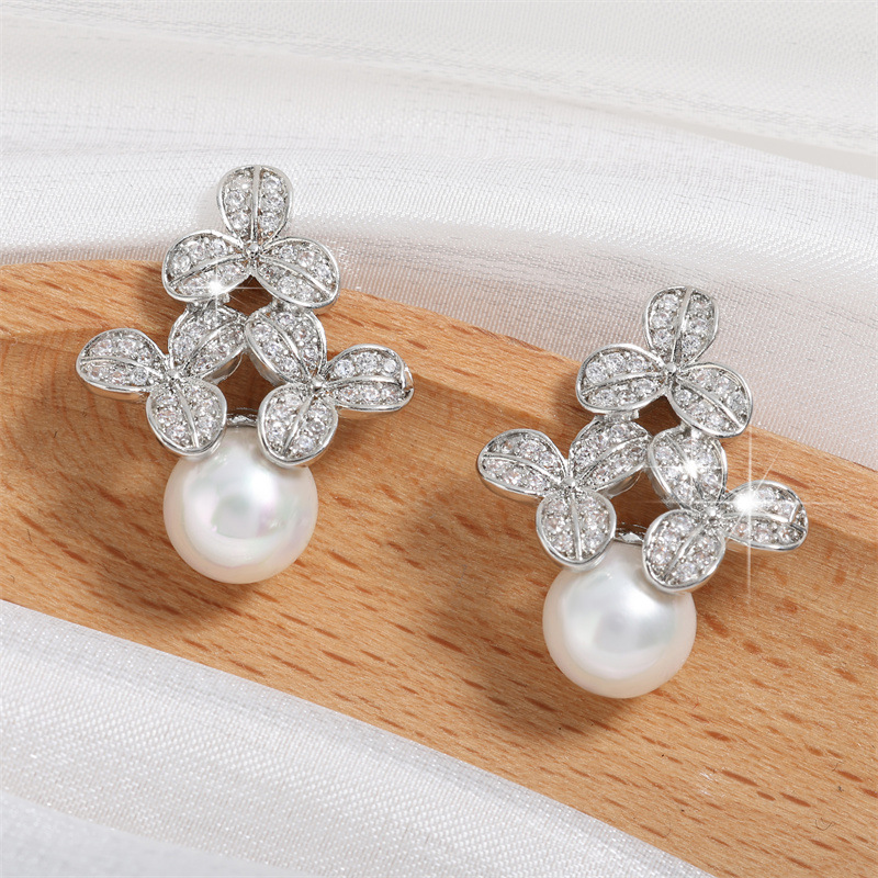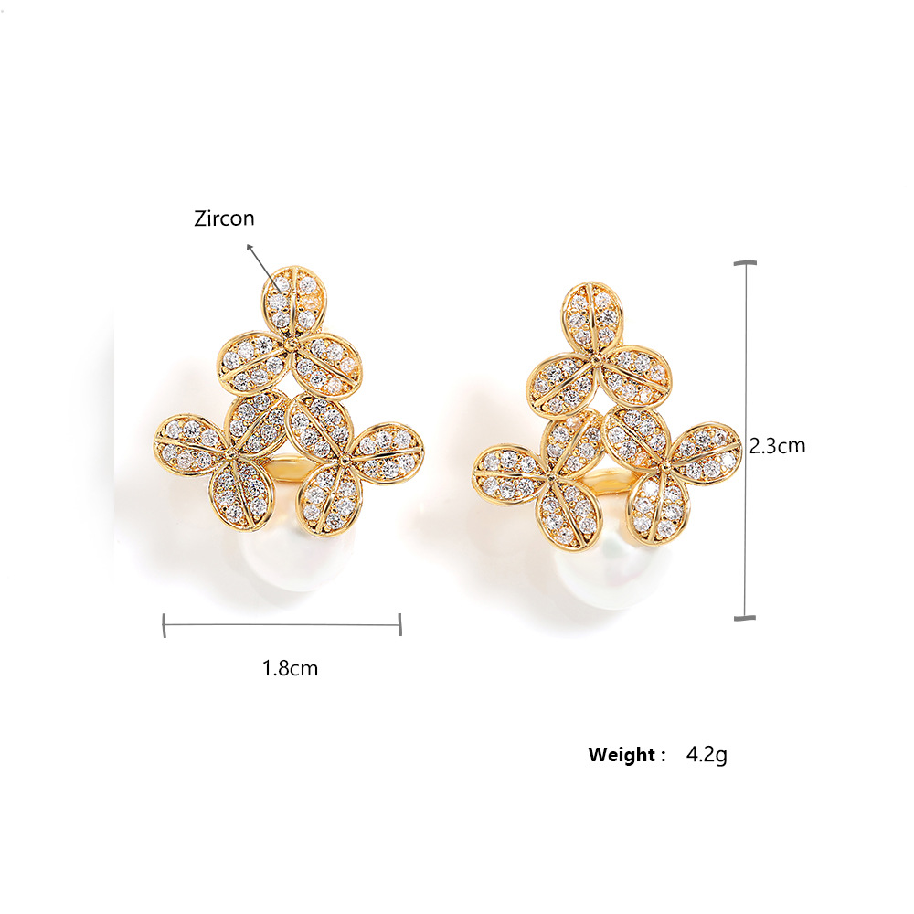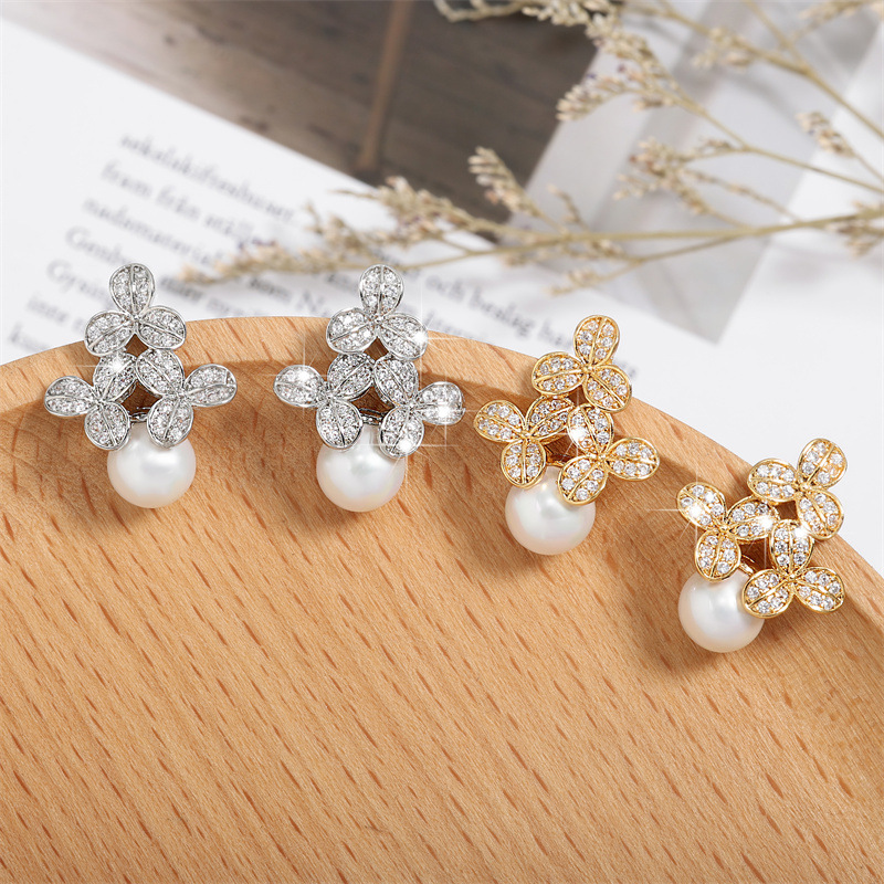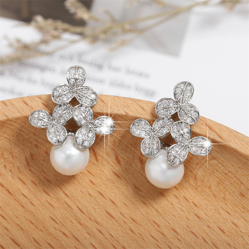 0 Review for High-grade Micro-inlaid Flower Pearl Earrings