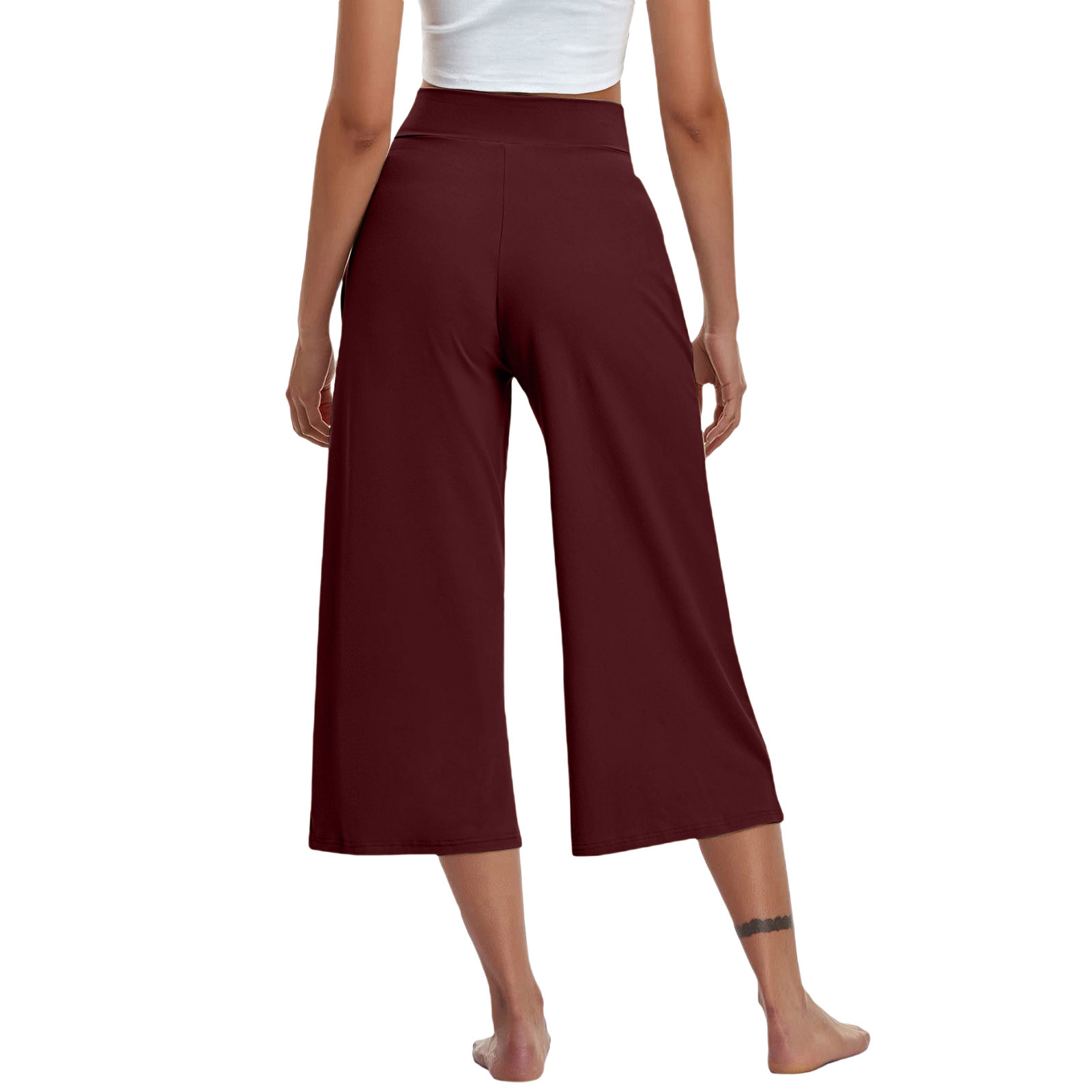 High-Waist Butt-Lifting V-Shaped Waist Wide-Leg Fitness Running Cropped Pants