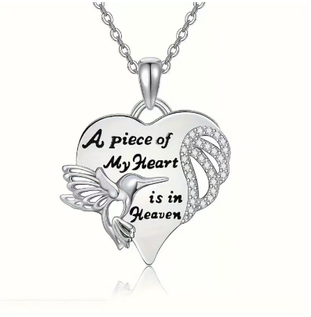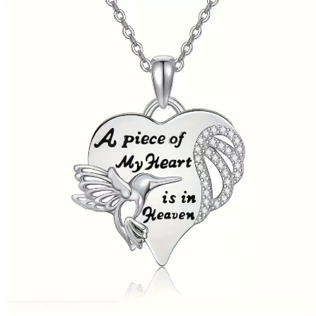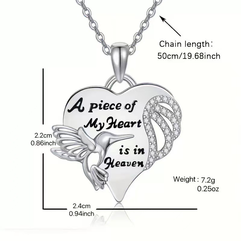 Hummingbird Diamond-Encrusted Heart Necklace A Stylish Versatile Pendant Necklace
