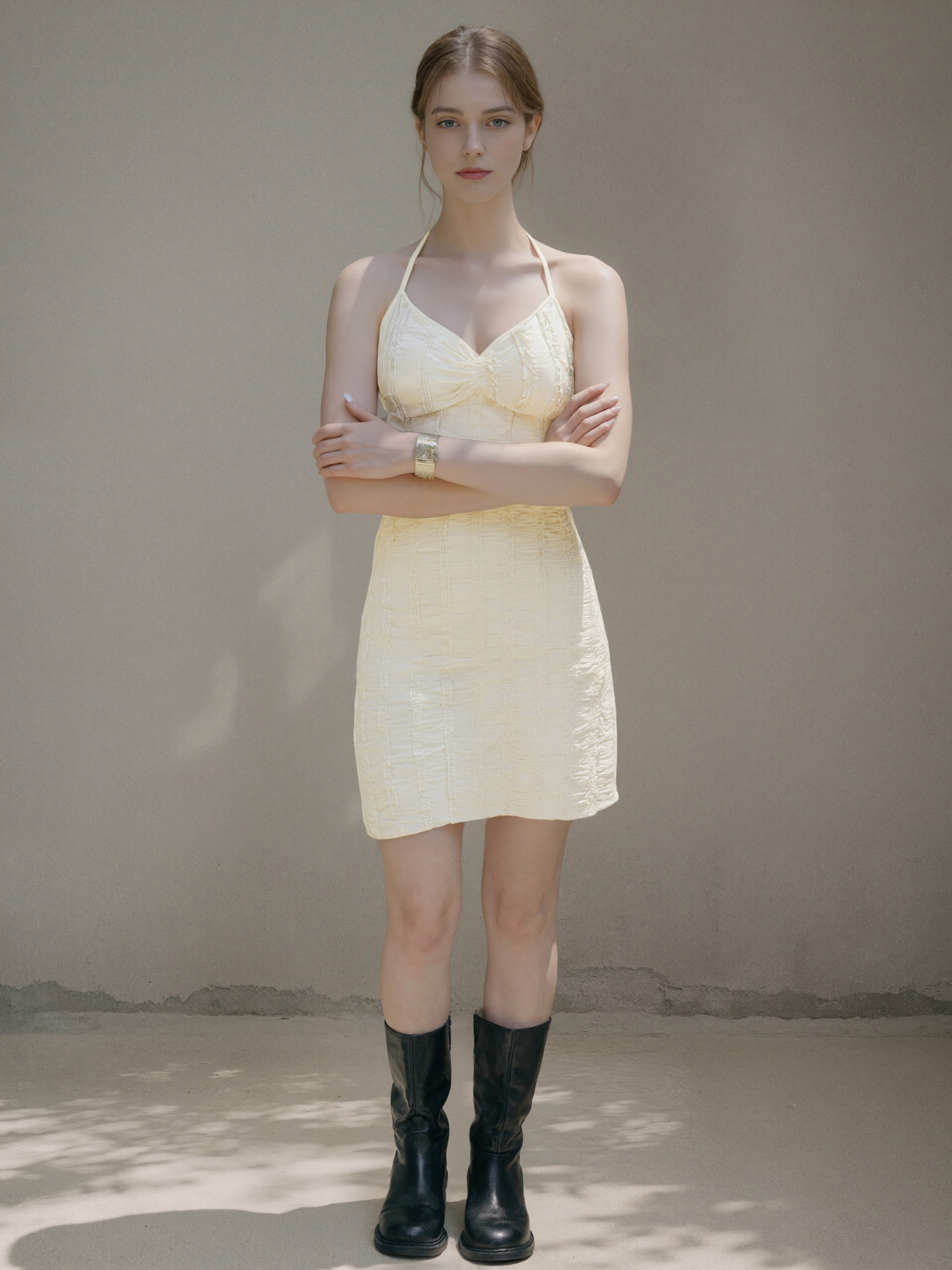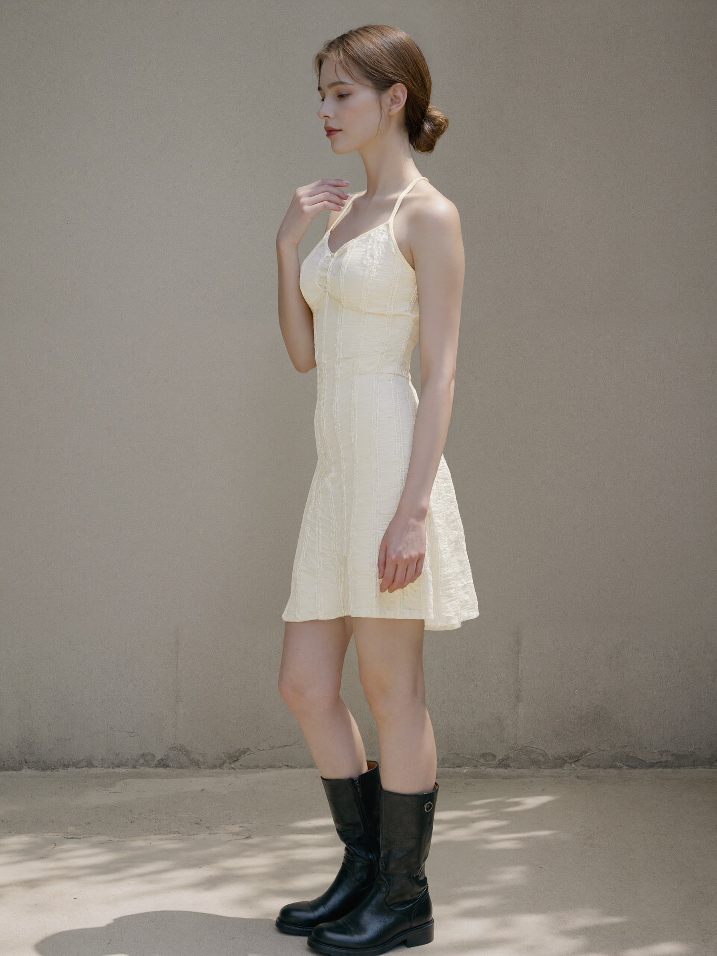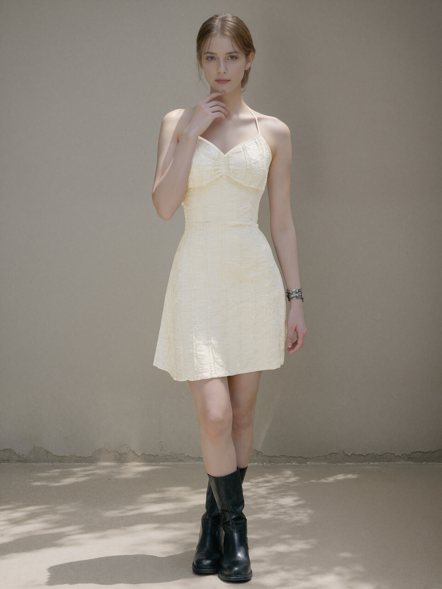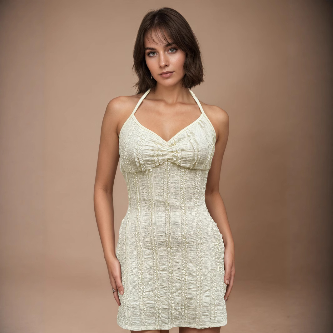 Knitted Jacquard Lace-up V-Neck Sleeveless Mini Dress