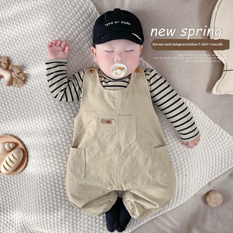 Color: Long-sleeve T-shirt + Suspender Pants Set (Spring/Autumn), Short-sleeve T-shirt + Suspender Pants Set (Summer)