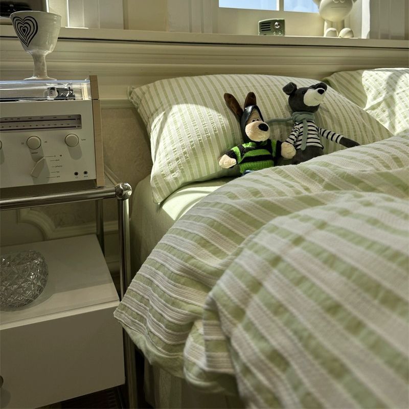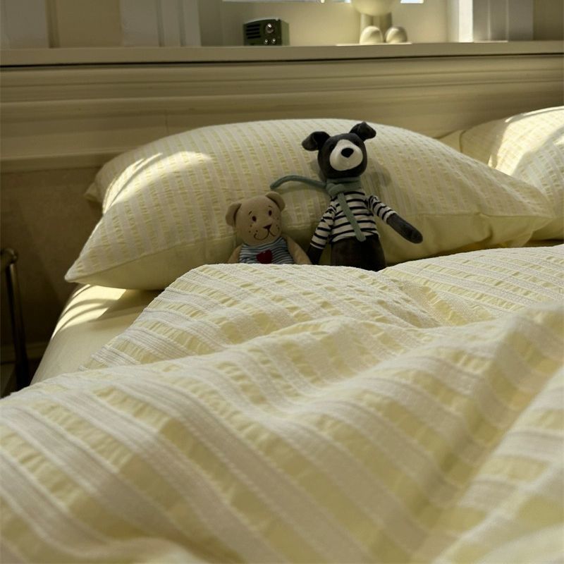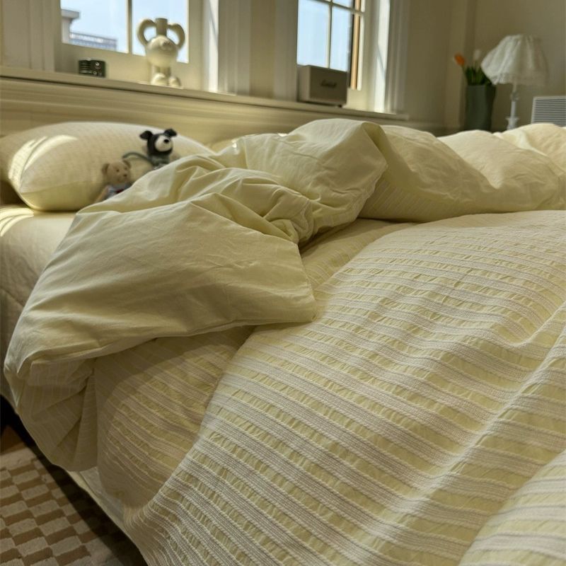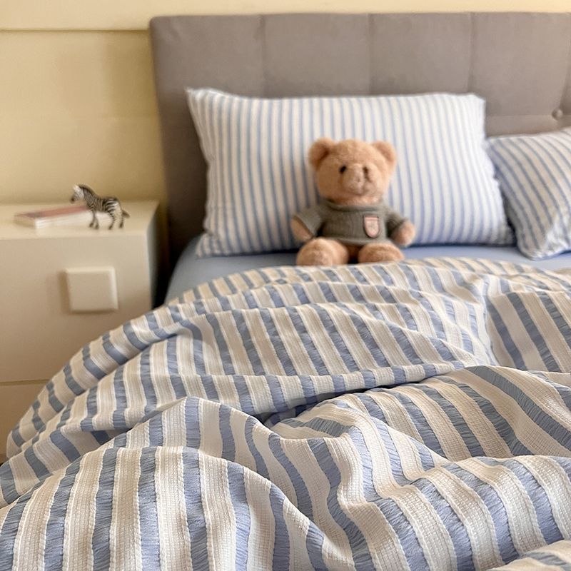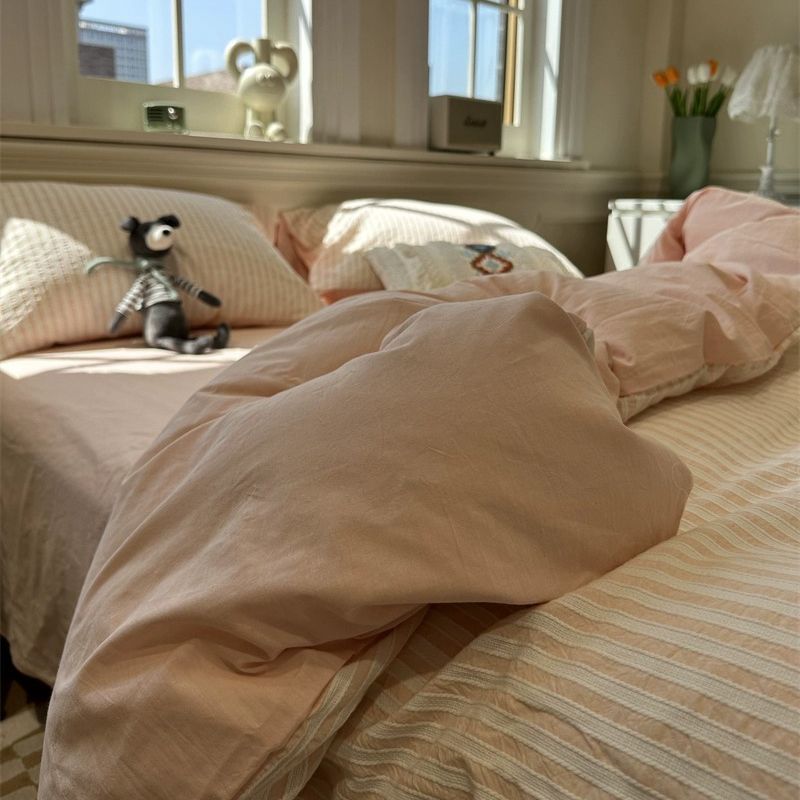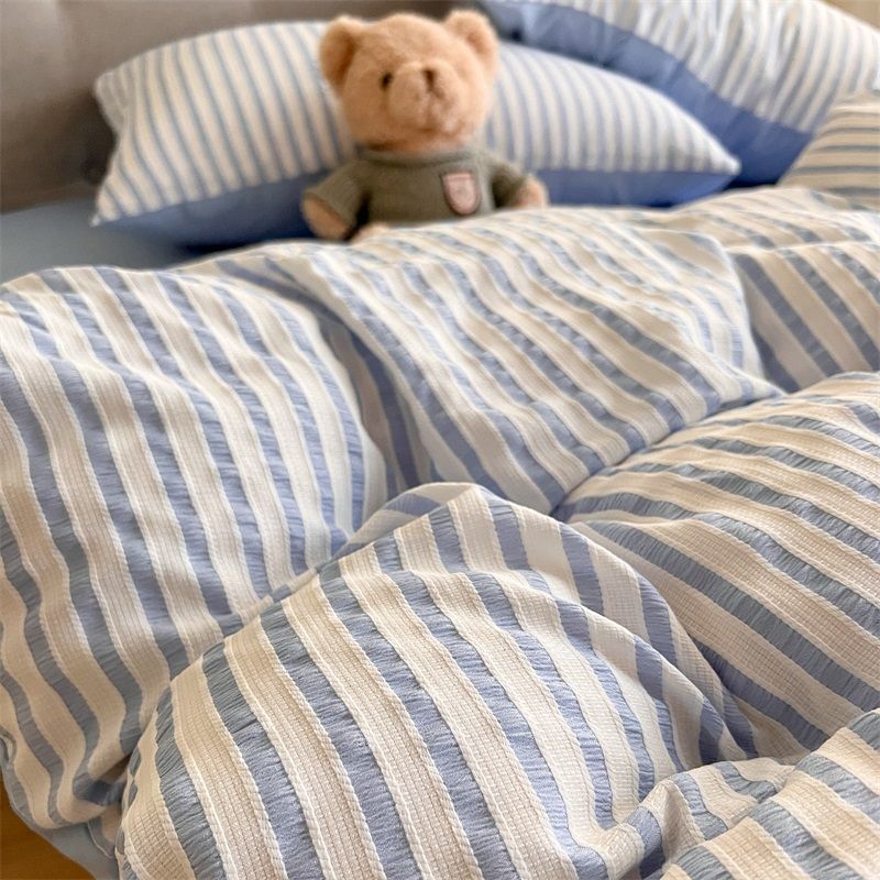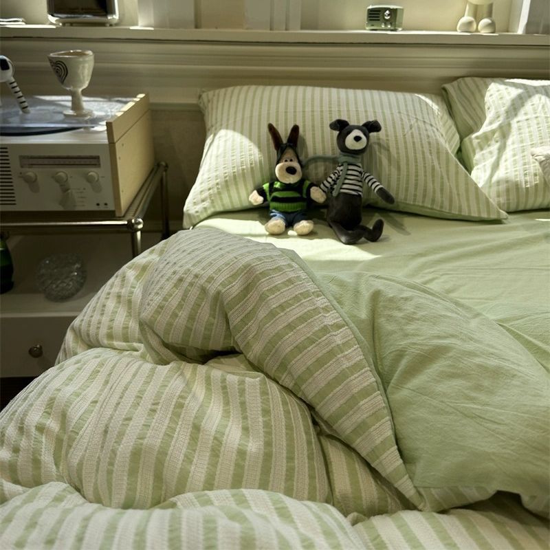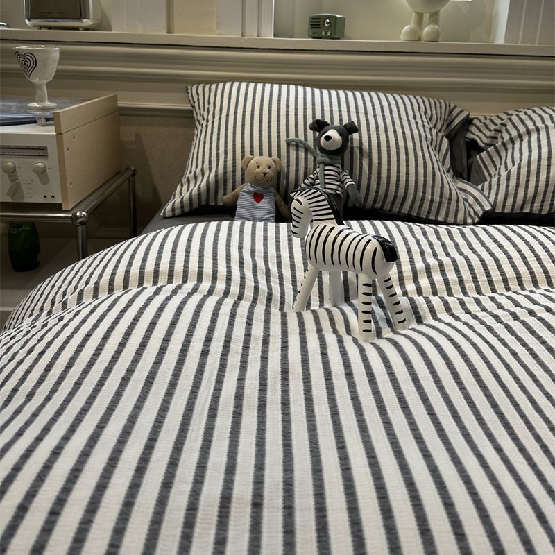 Korean-style Striped Puffy Duvet Cover 4-piece Bedding Set