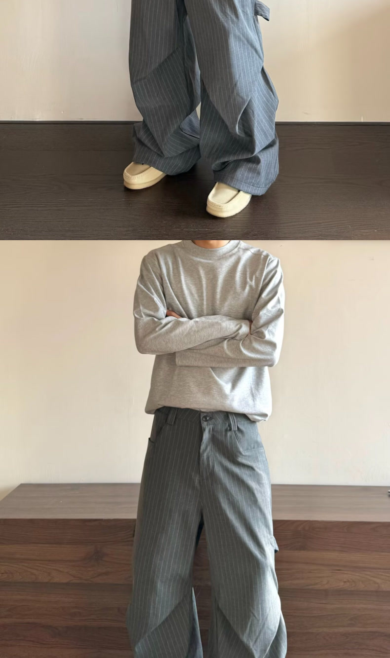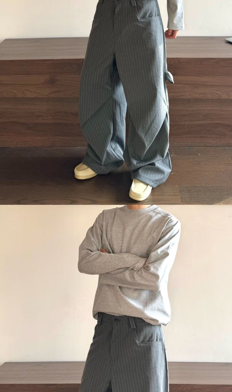 0 Review for Laid-back, Relaxed Striped Color-block Low-rise Suit Pants