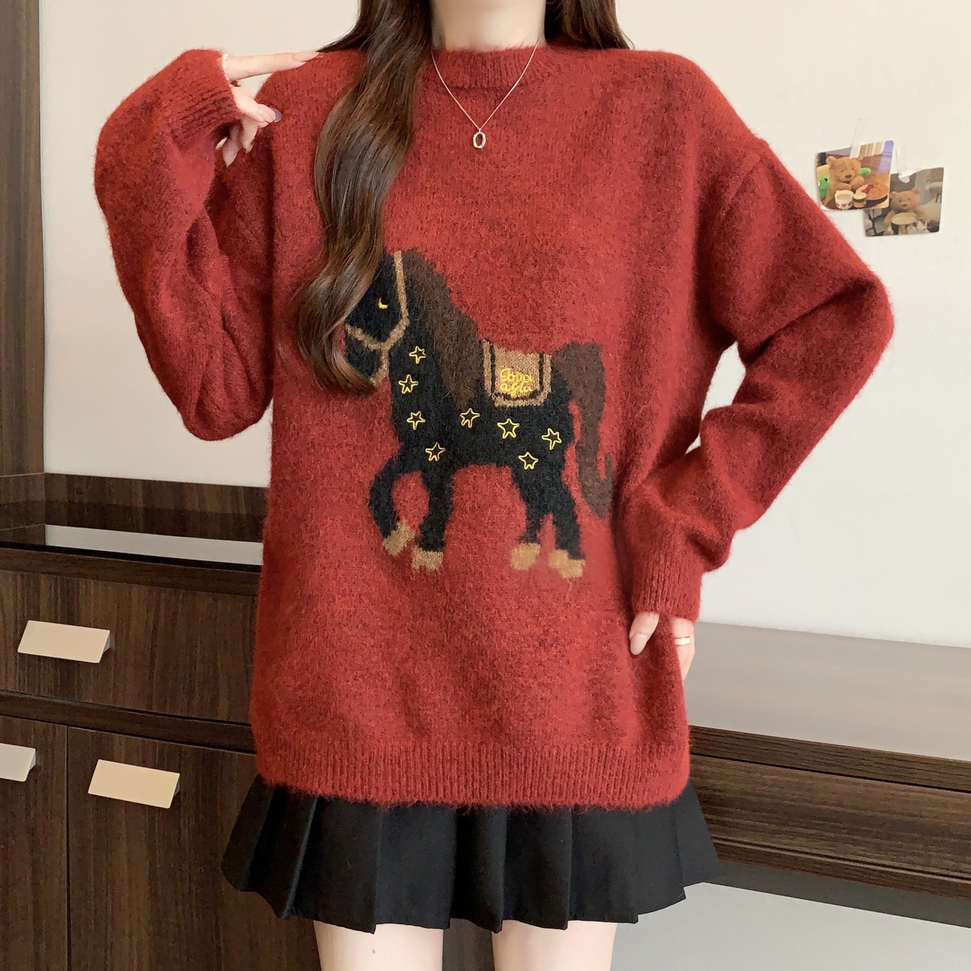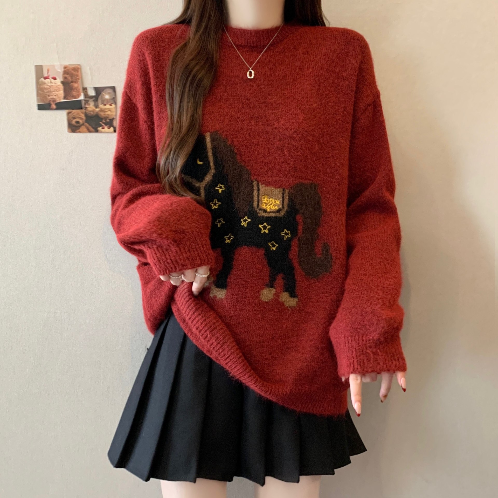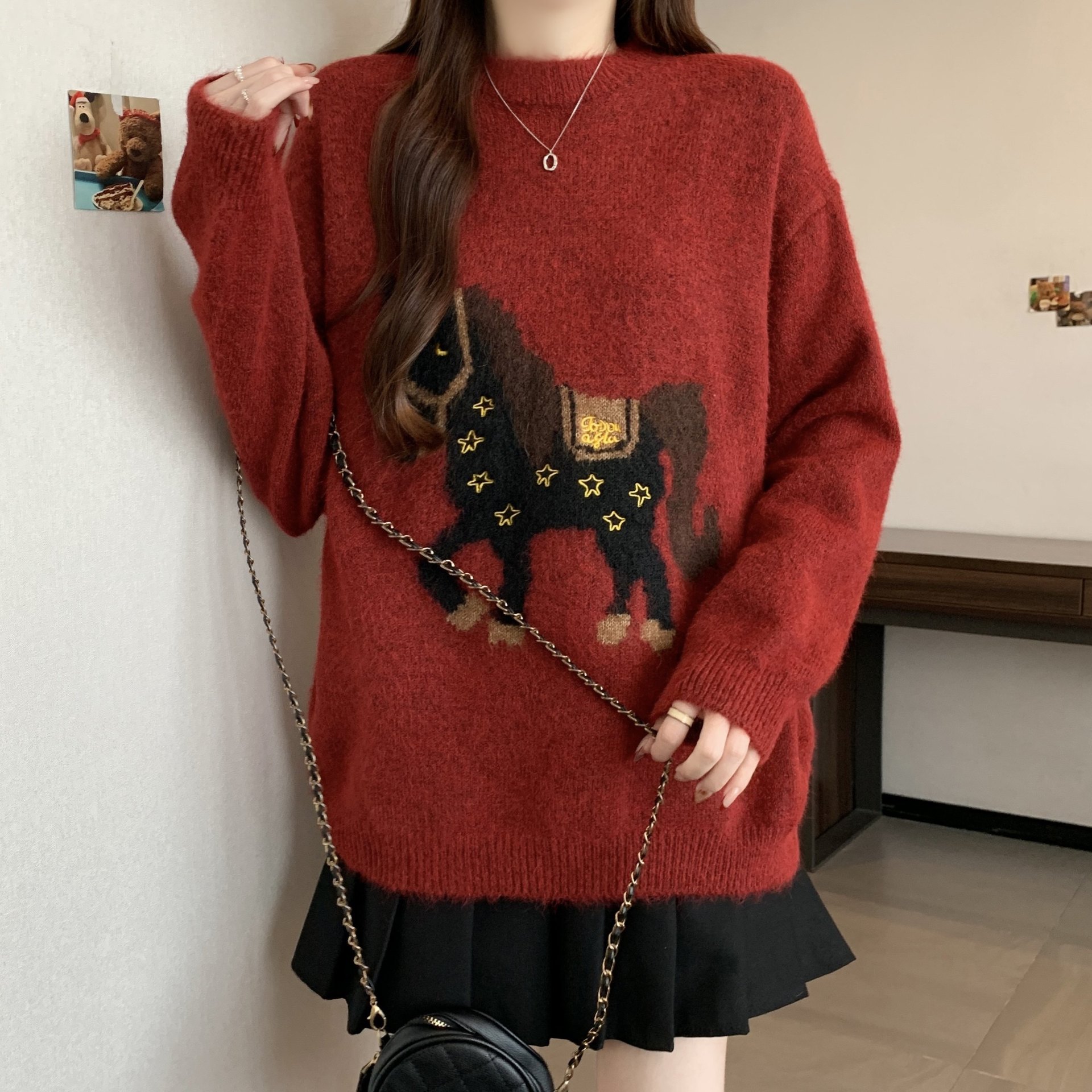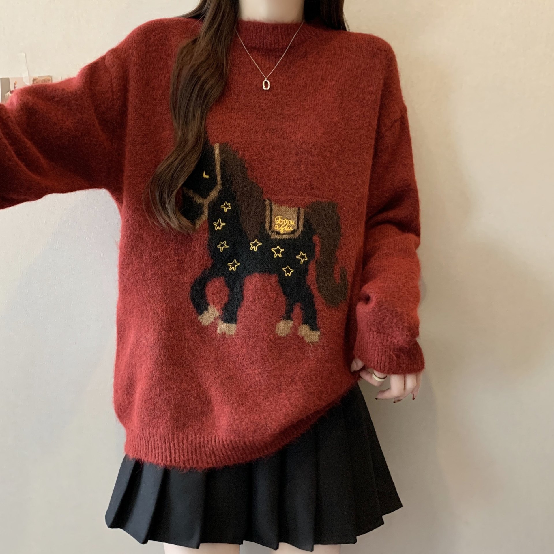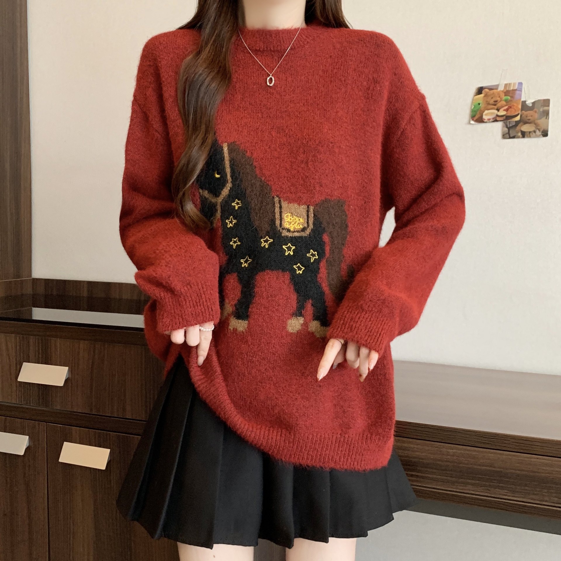 0 Review for Laid-back Youth-boosting Super-cute New Year RedJacquard Sweater