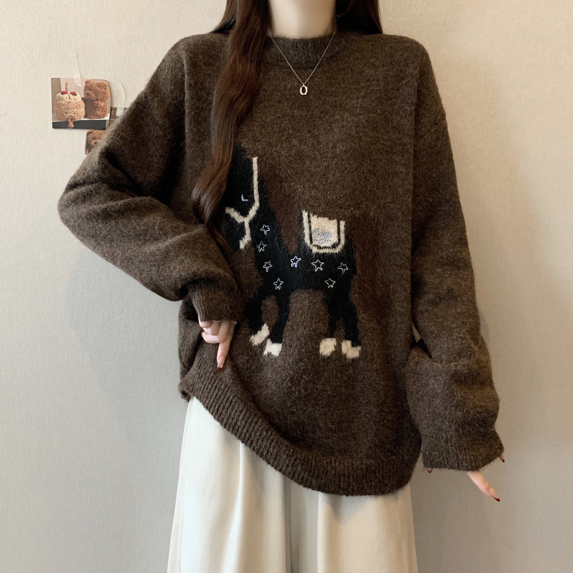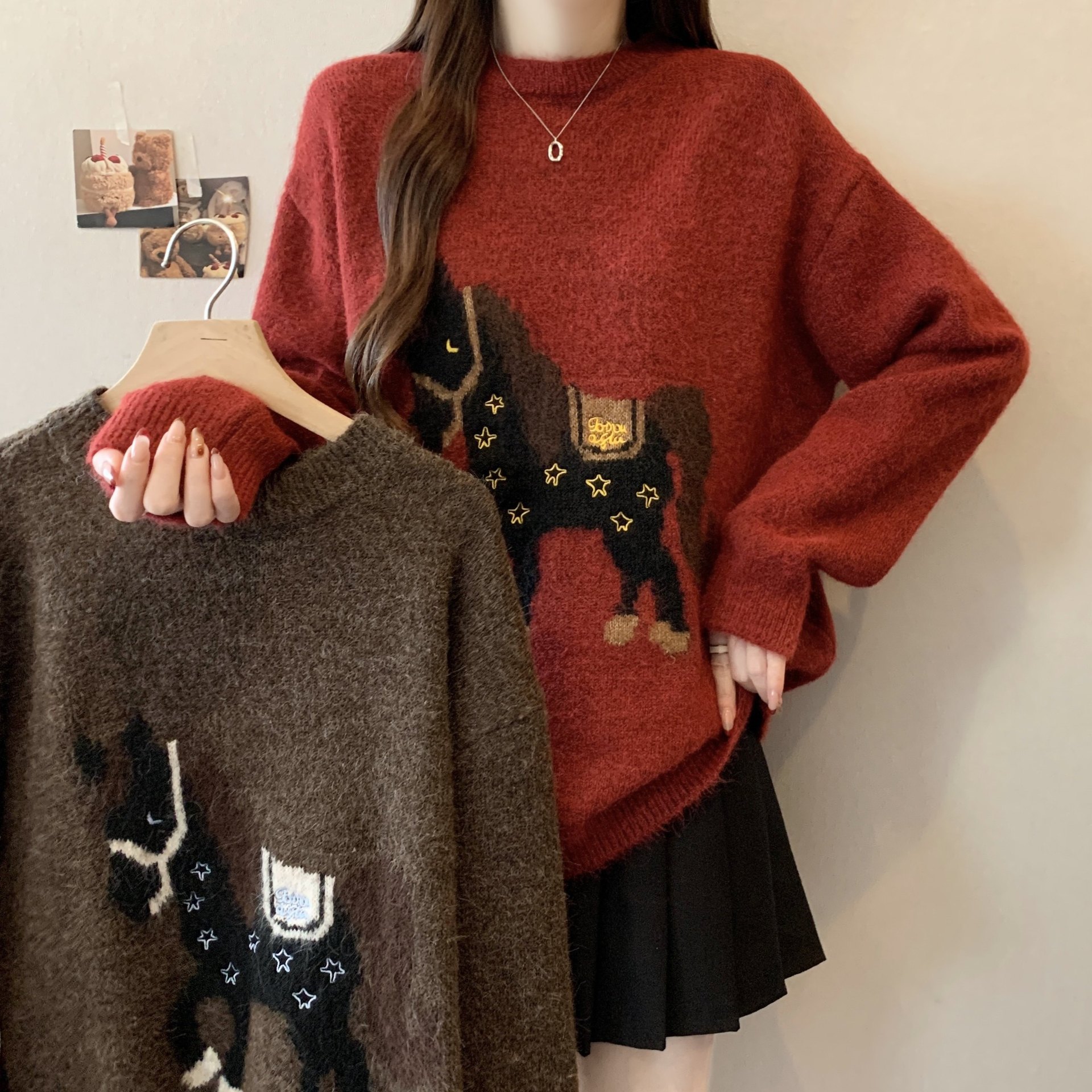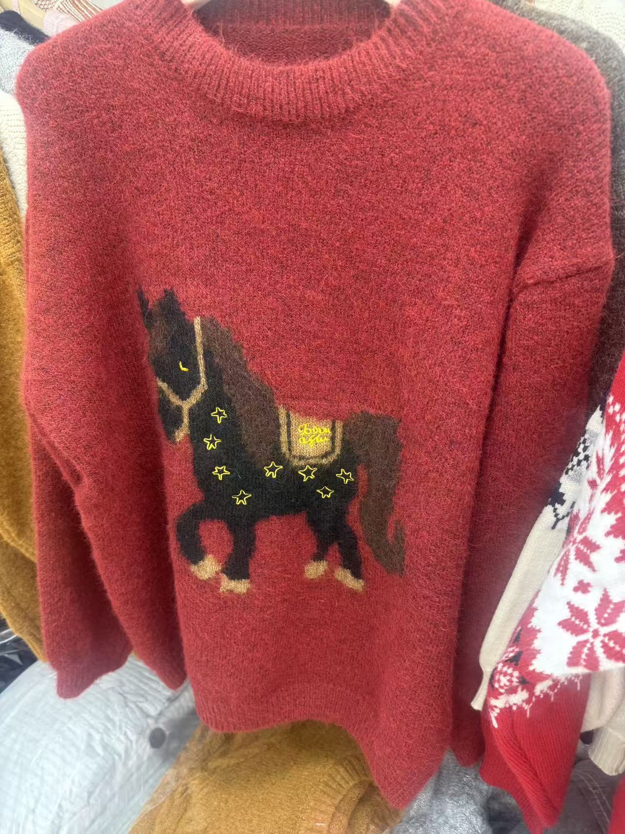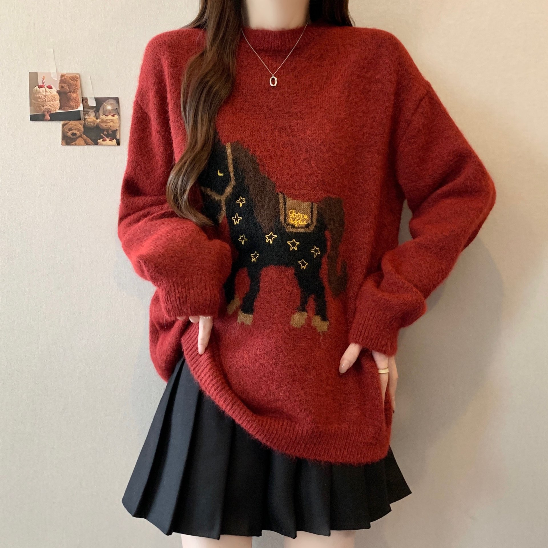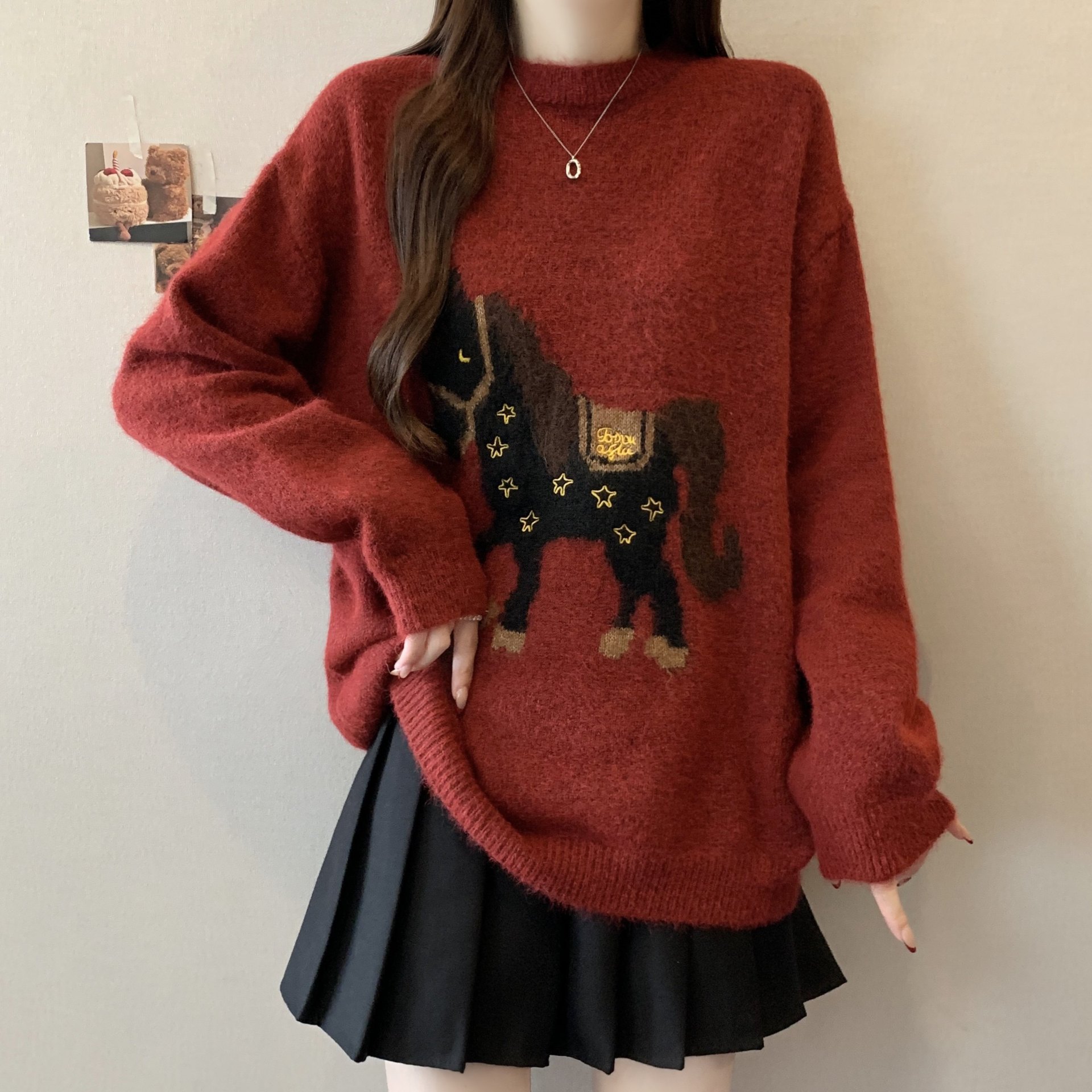 0 Review for Laid-back Youth-boosting Super-cute New Year RedJacquard Sweater