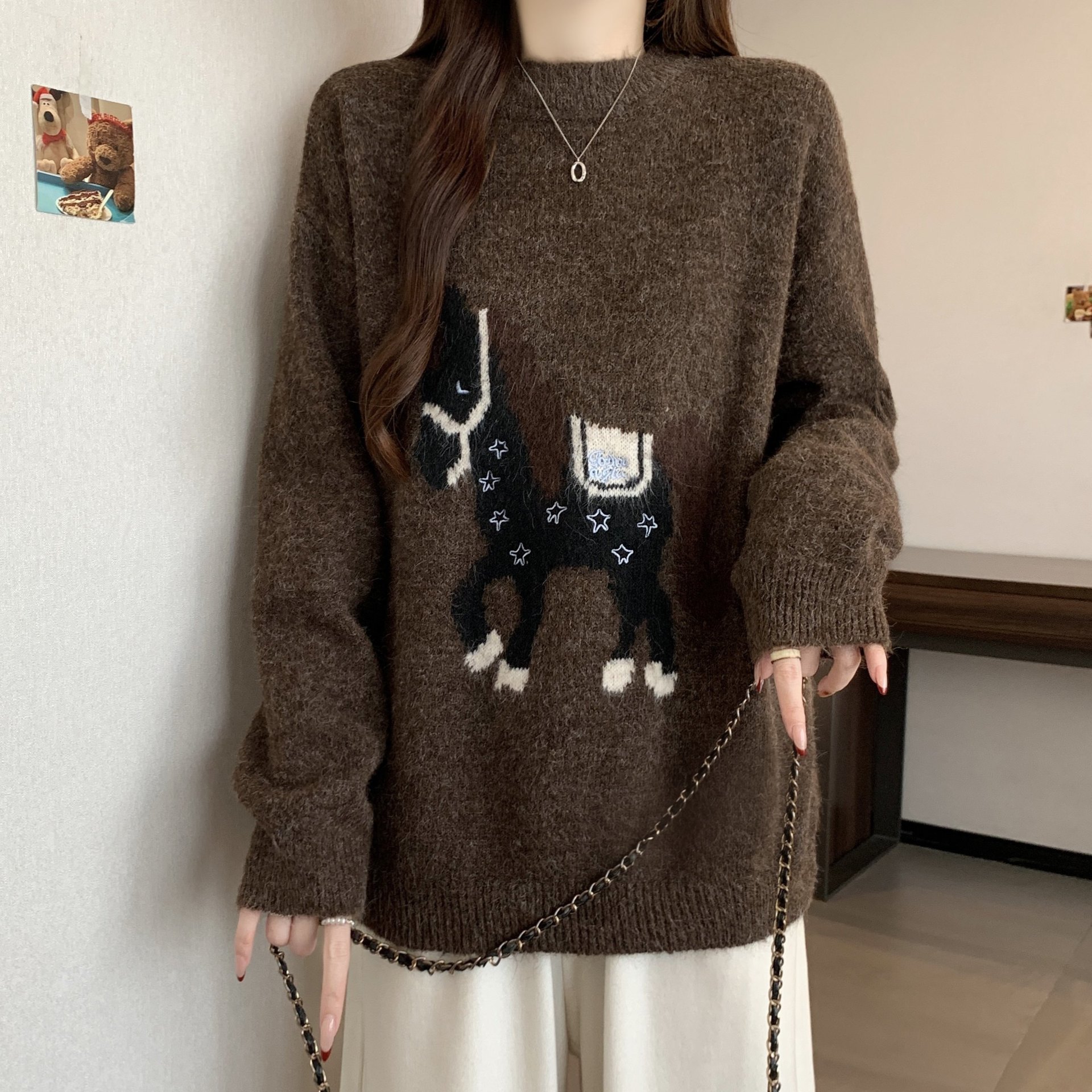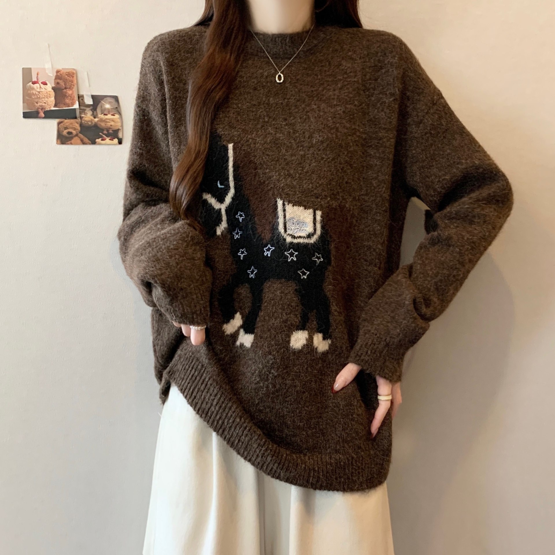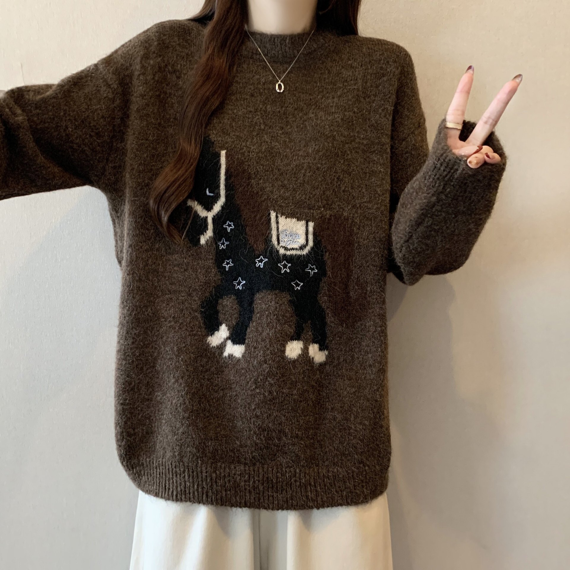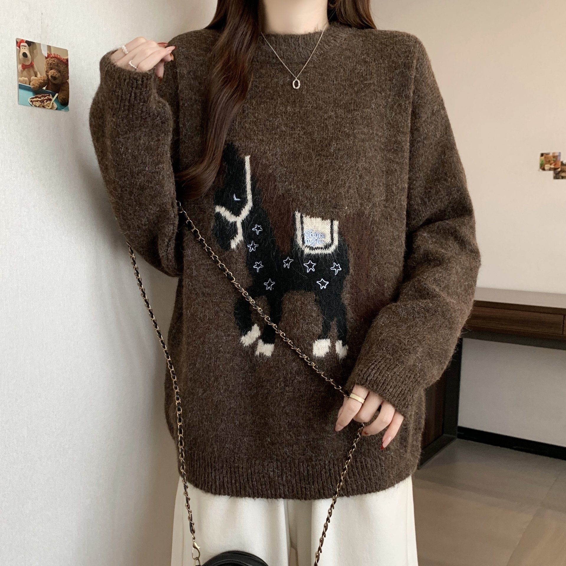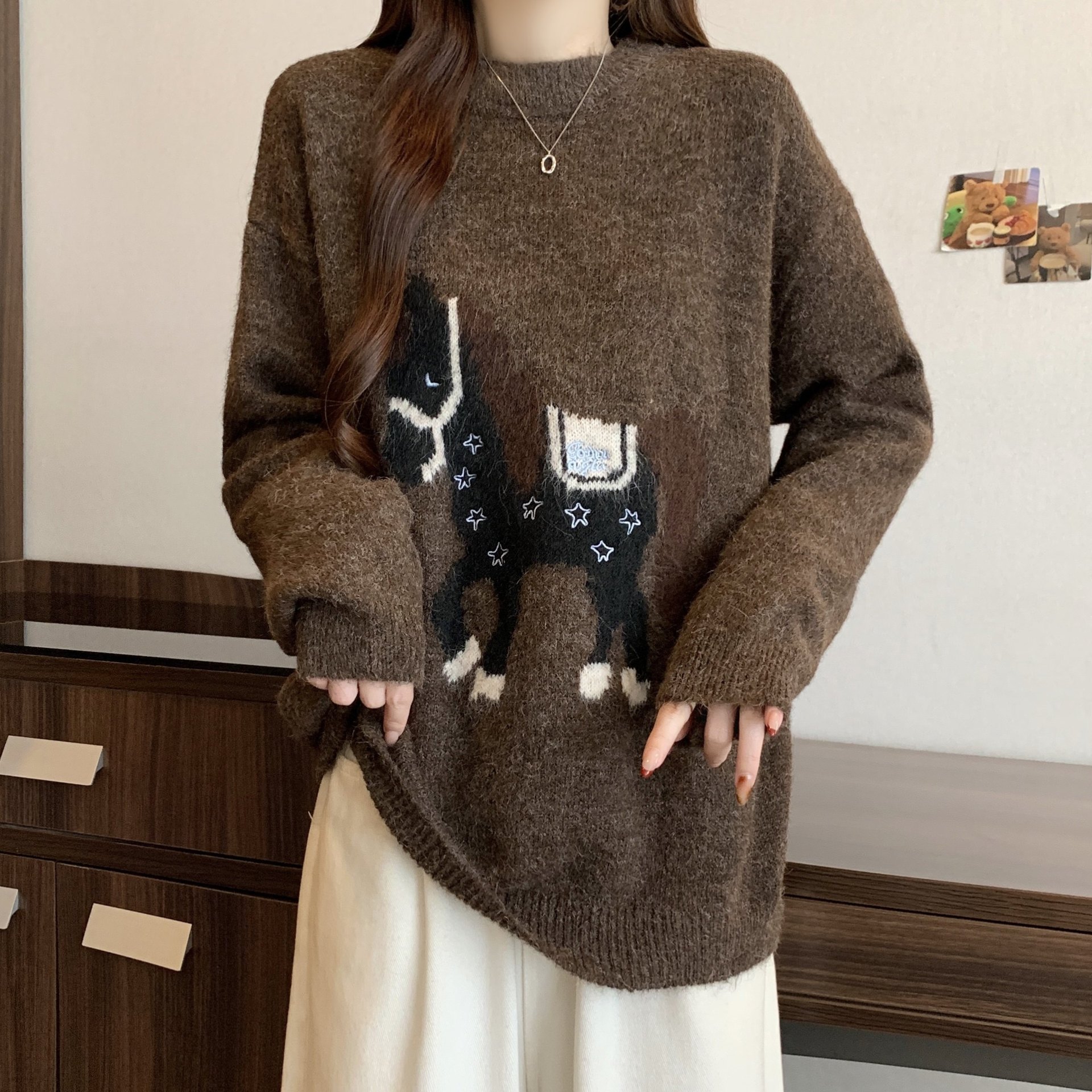 0 Review for Laid-back Youth-boosting Super-cute New Year RedJacquard Sweater