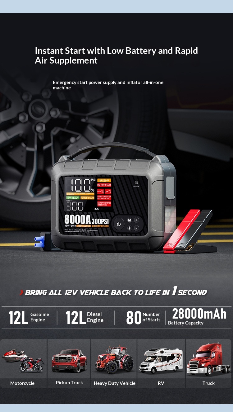 Number of Starts: Can start a 12L gasoline engine or a 12L diesel engine