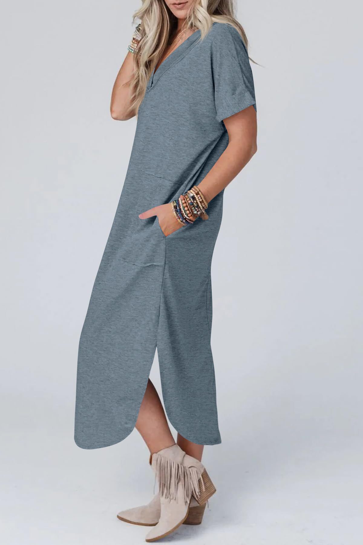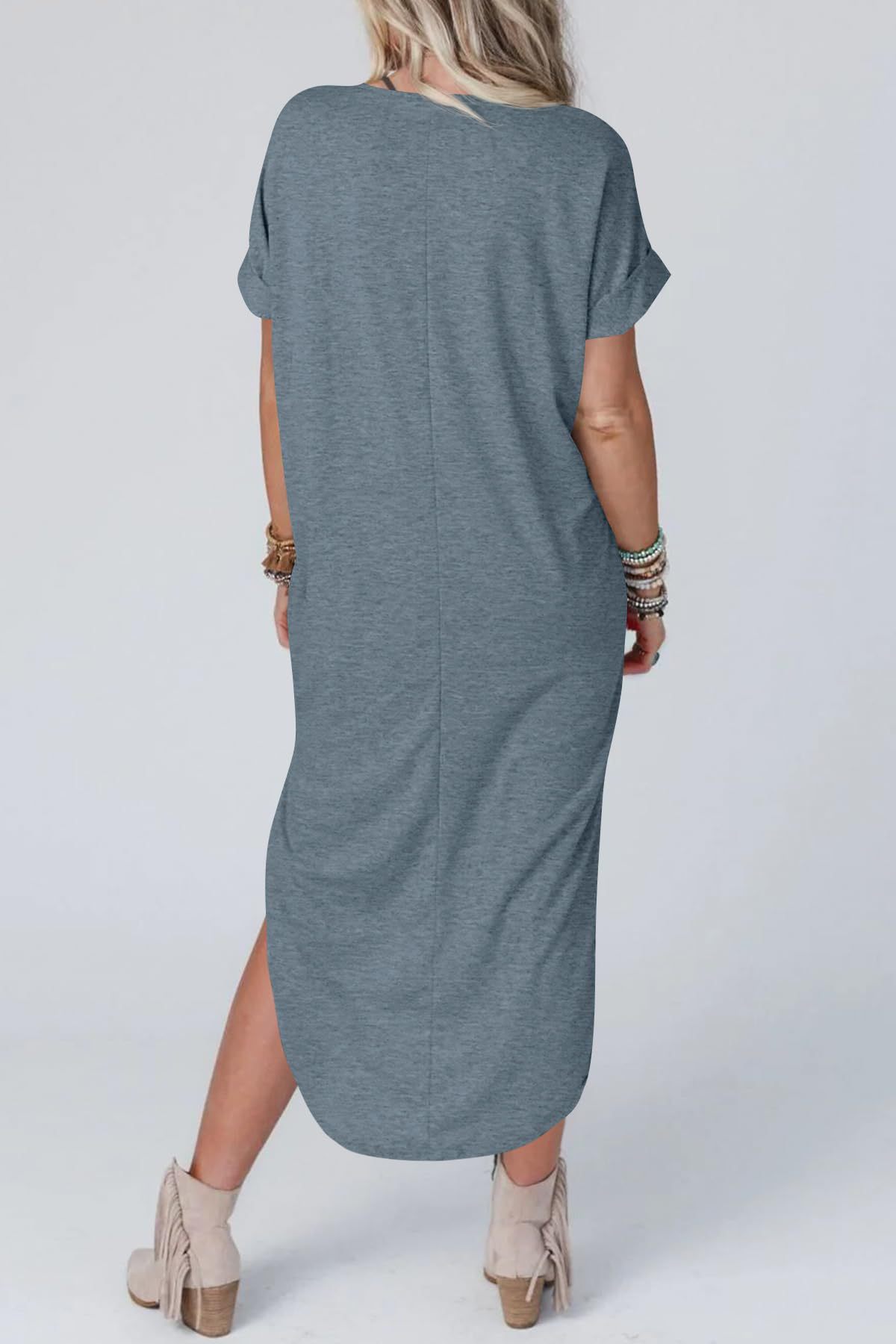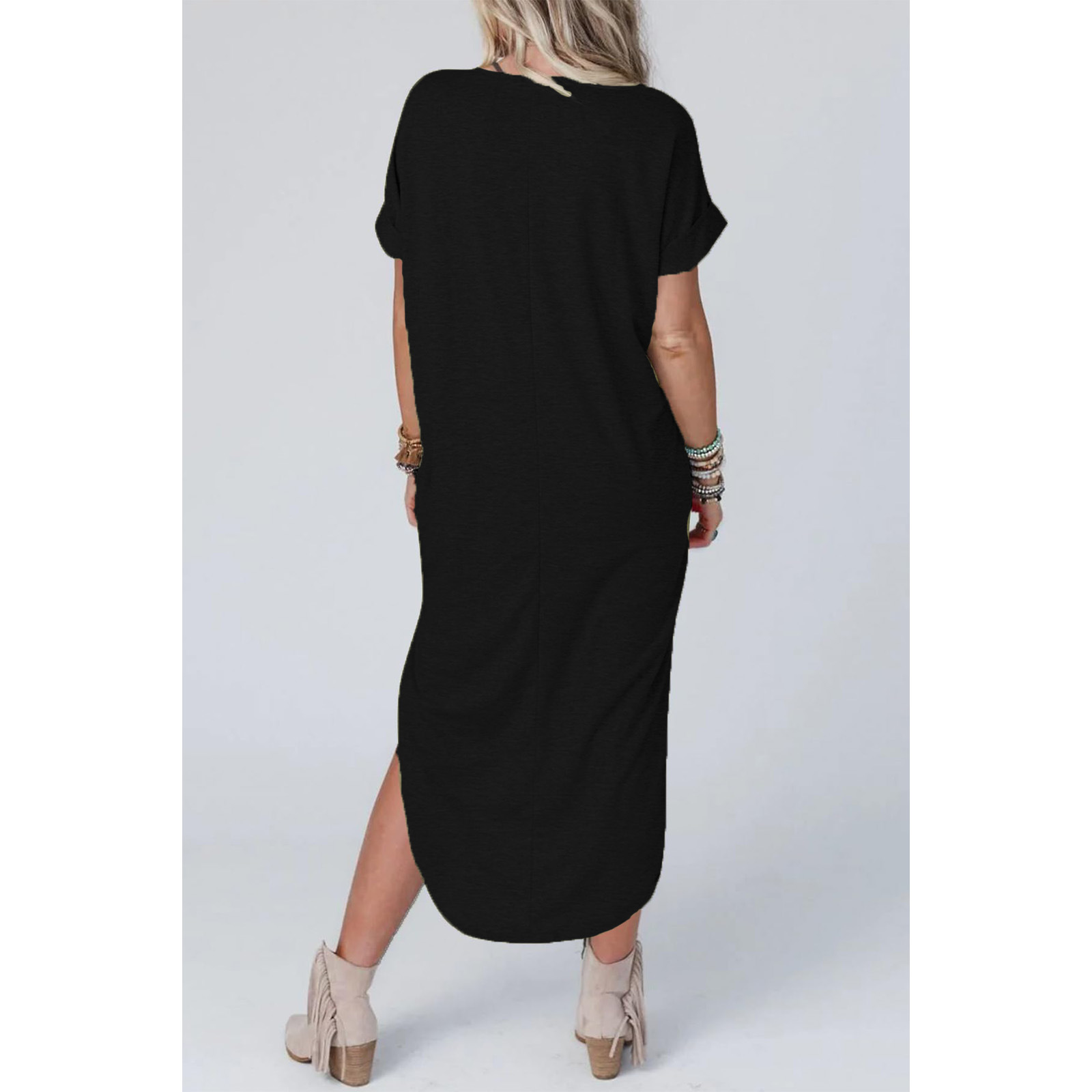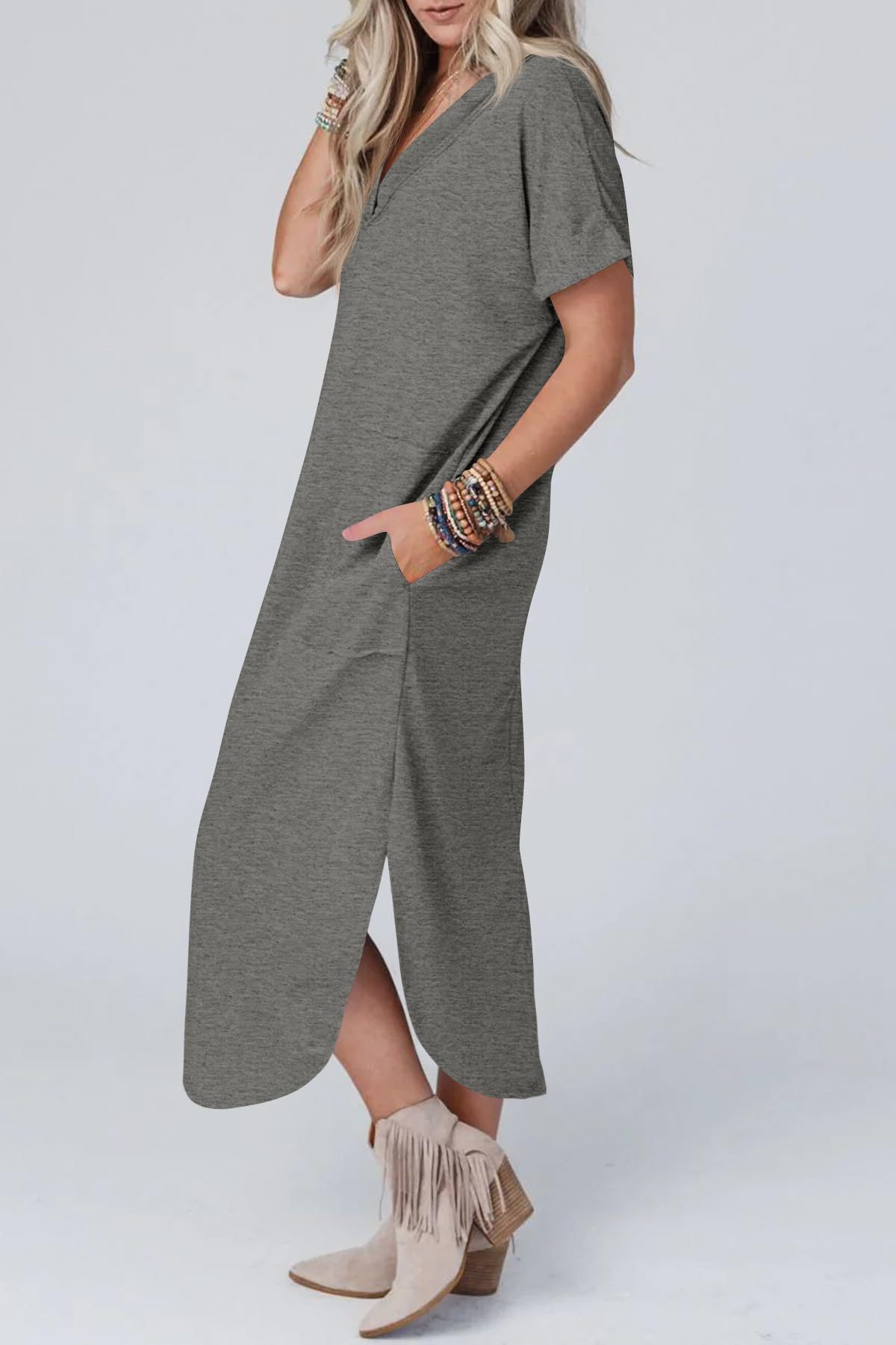 0 Review for Loose Casual Short-Sleeve V-Neck Split Dress For Women