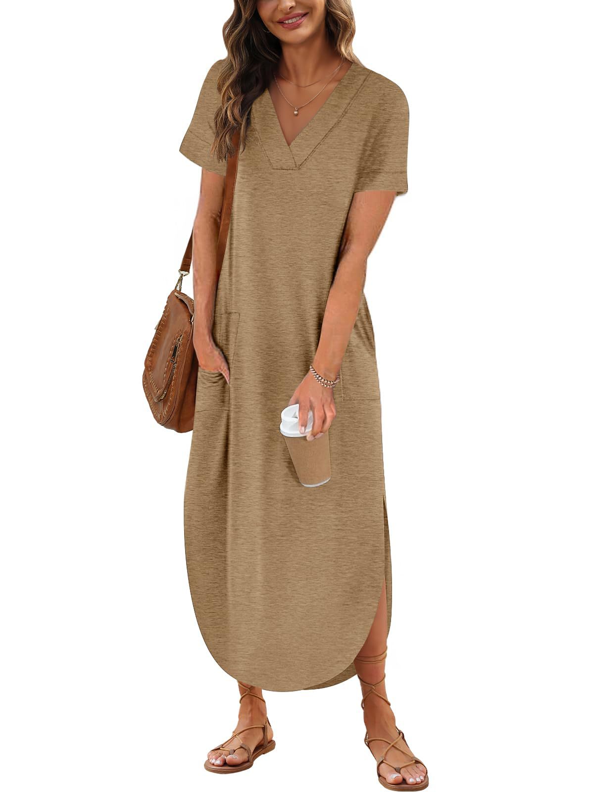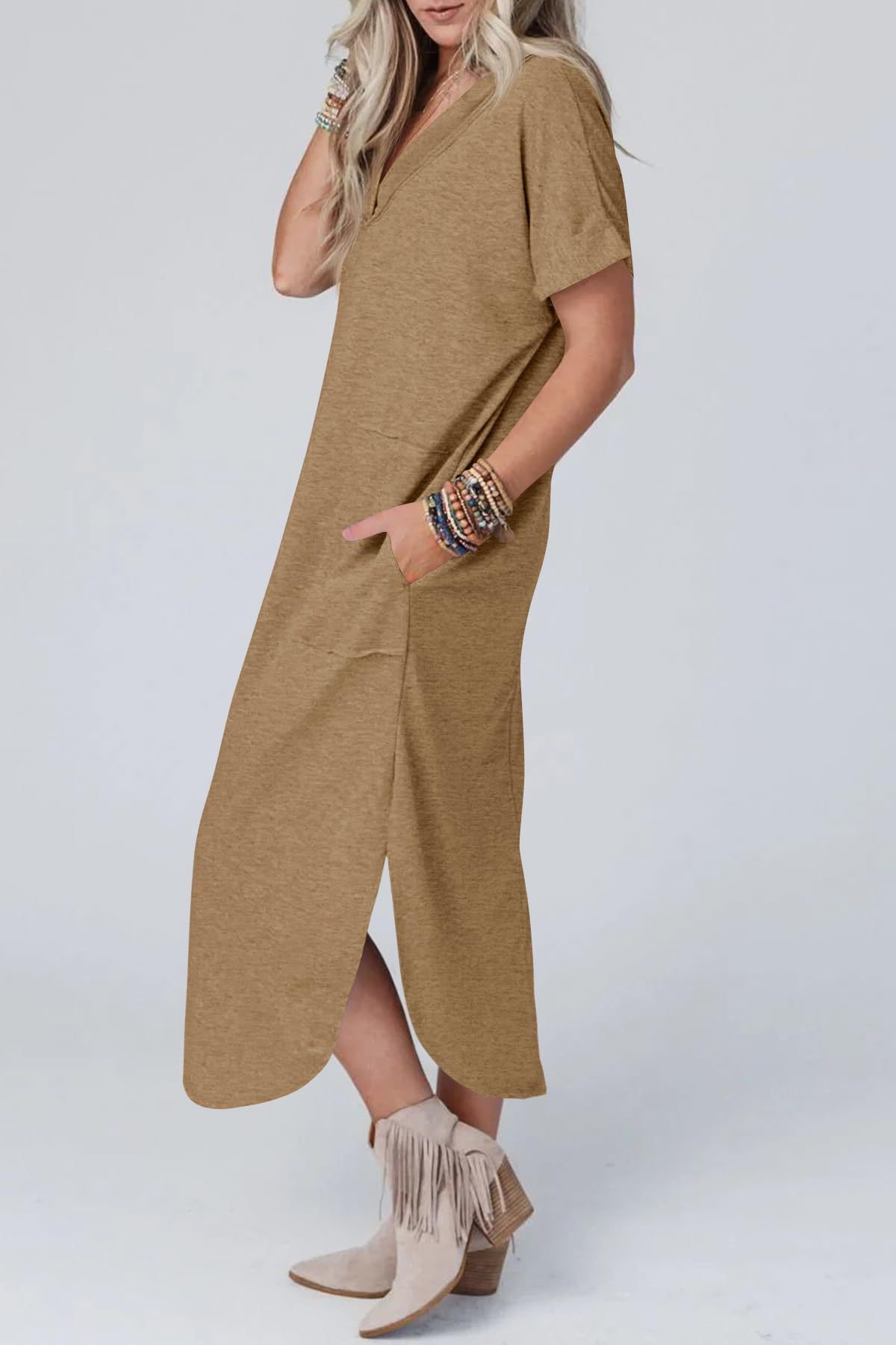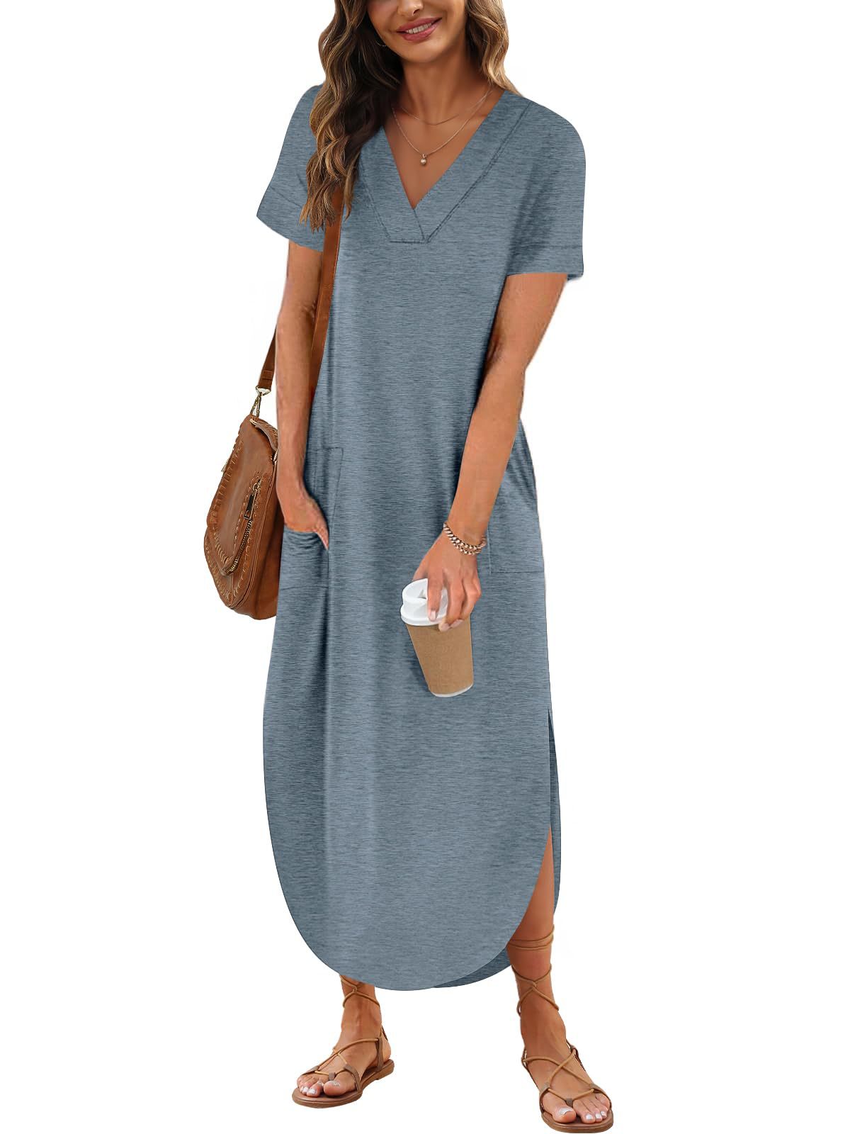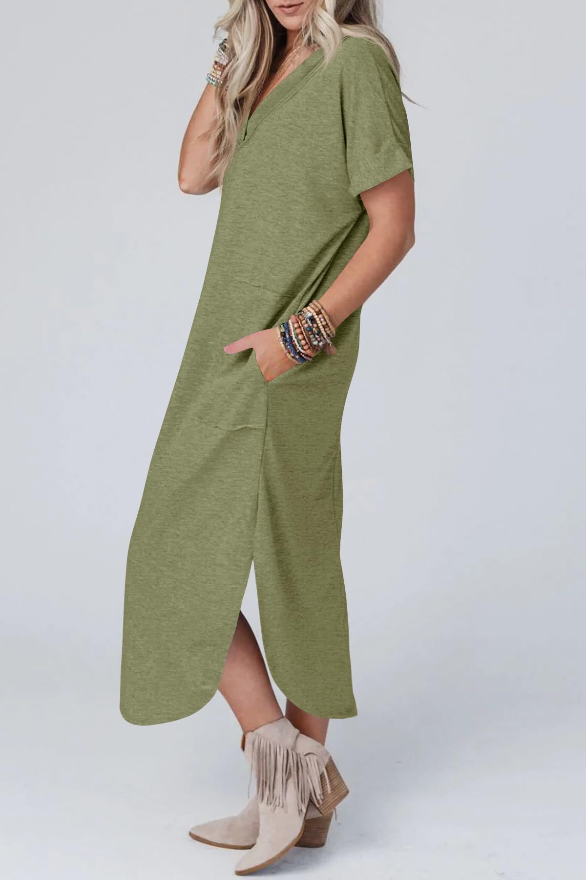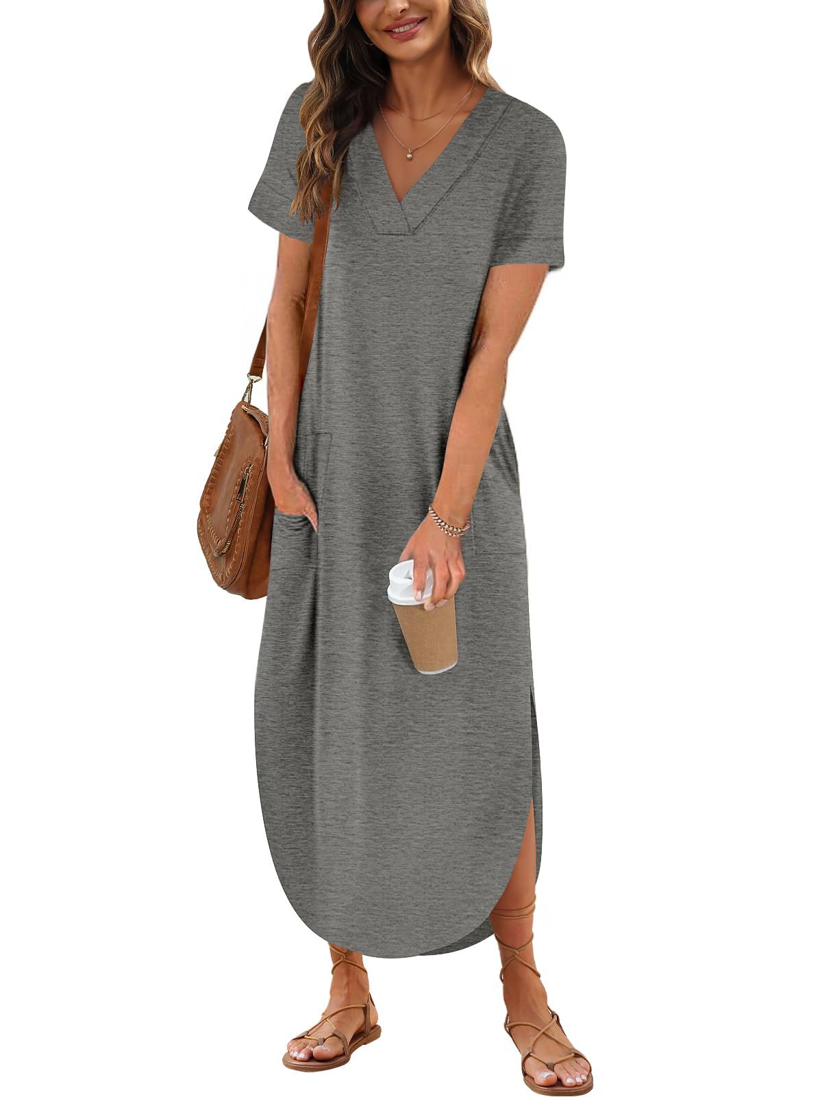 0 Review for Loose Casual Short-Sleeve V-Neck Split Dress For Women