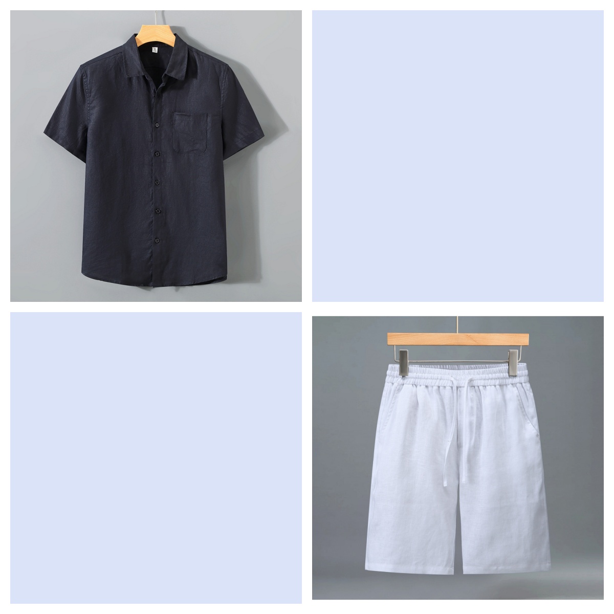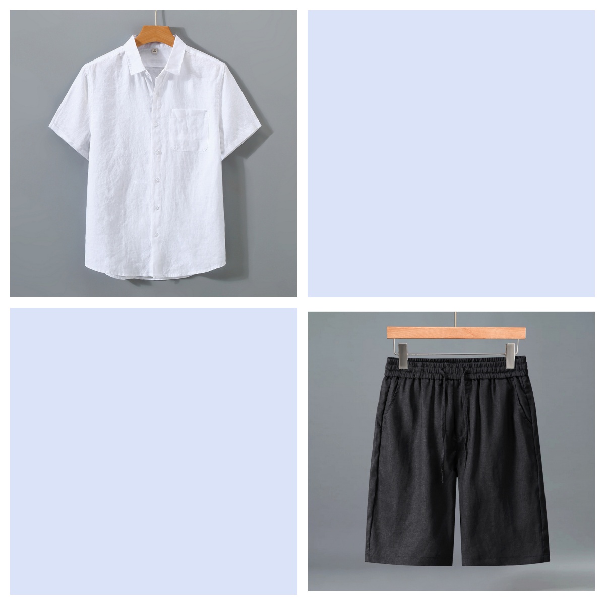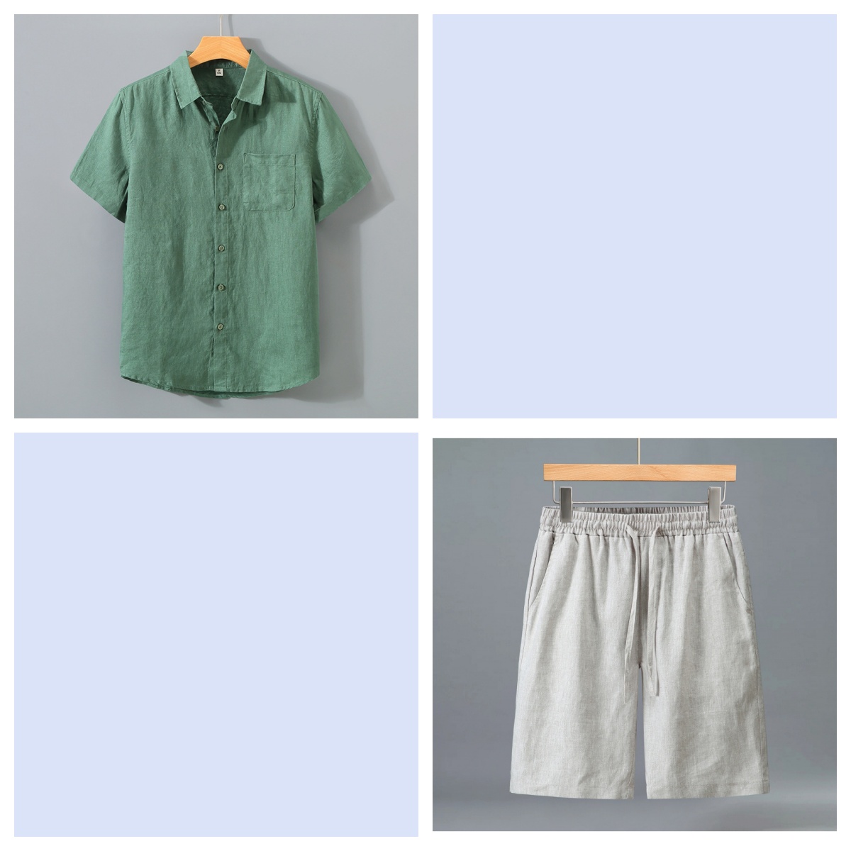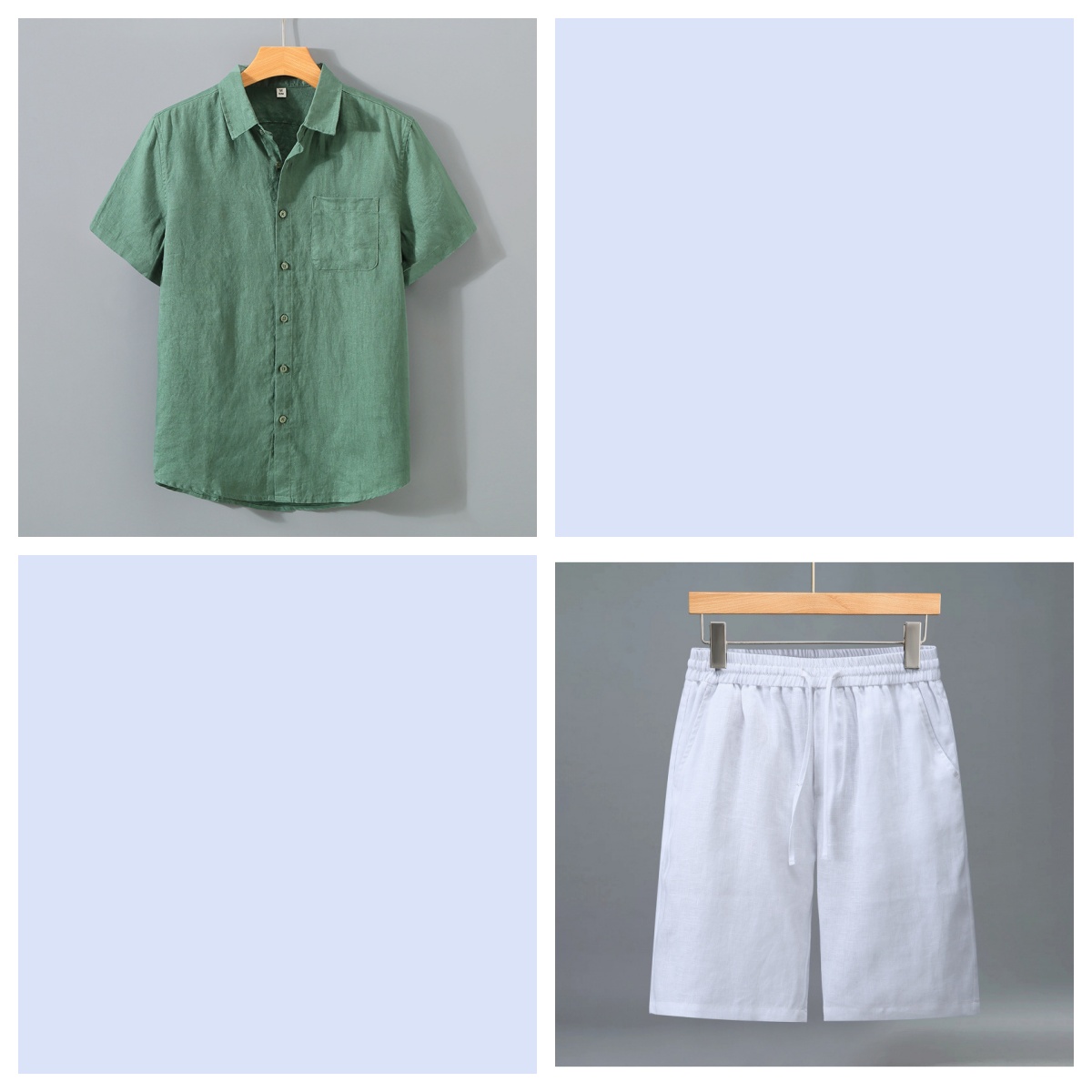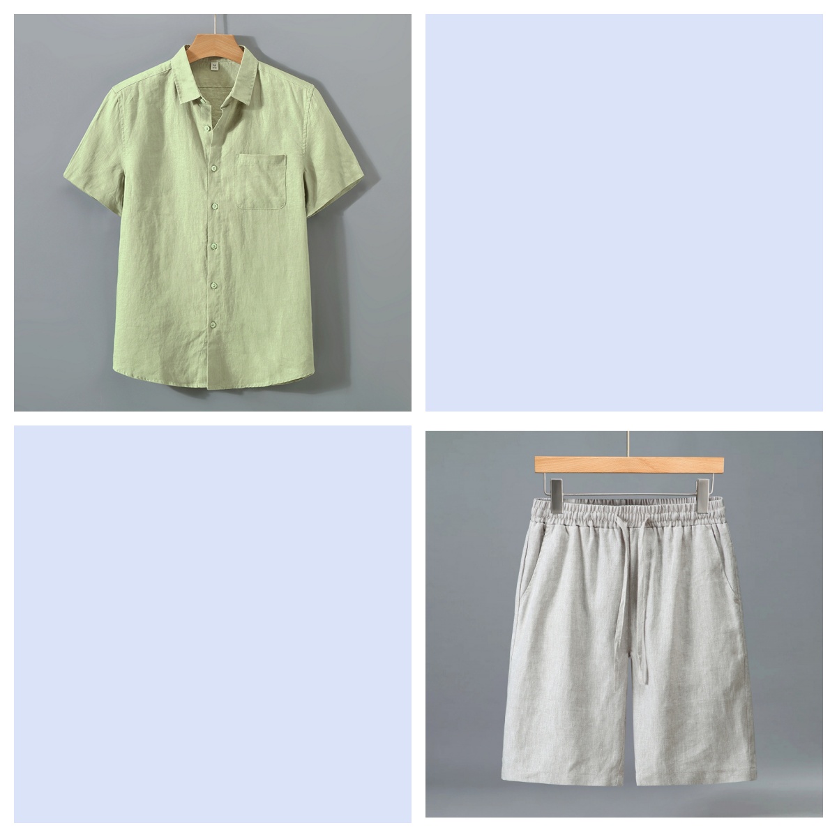 Men's Pure Linen Shorts and Short Sleeve Shirt Set - Summer Loose Casual Lightweight Outfit
