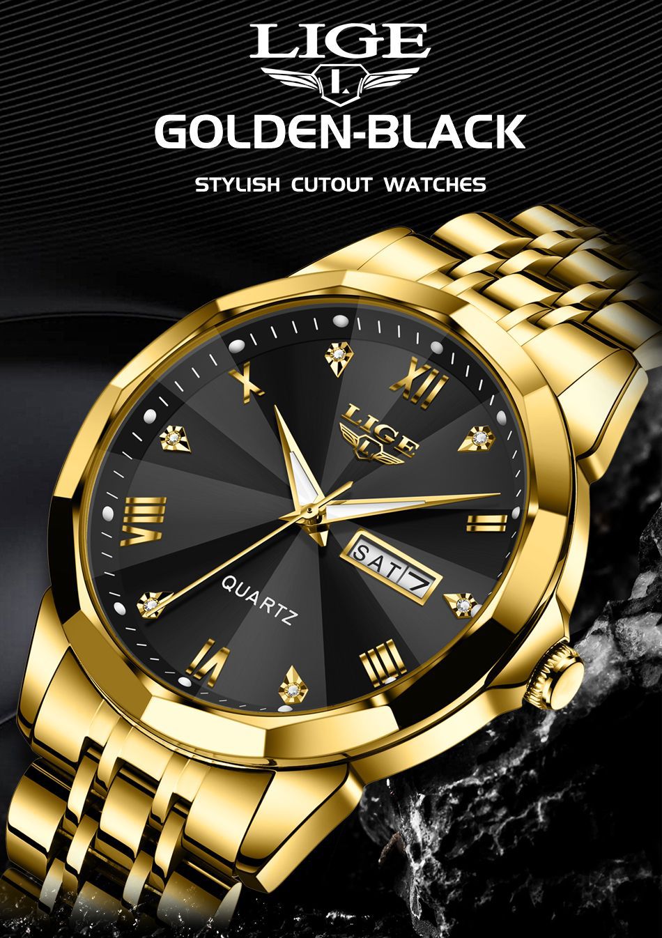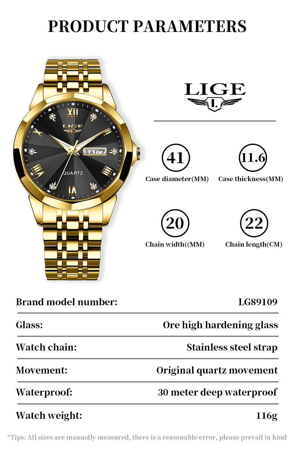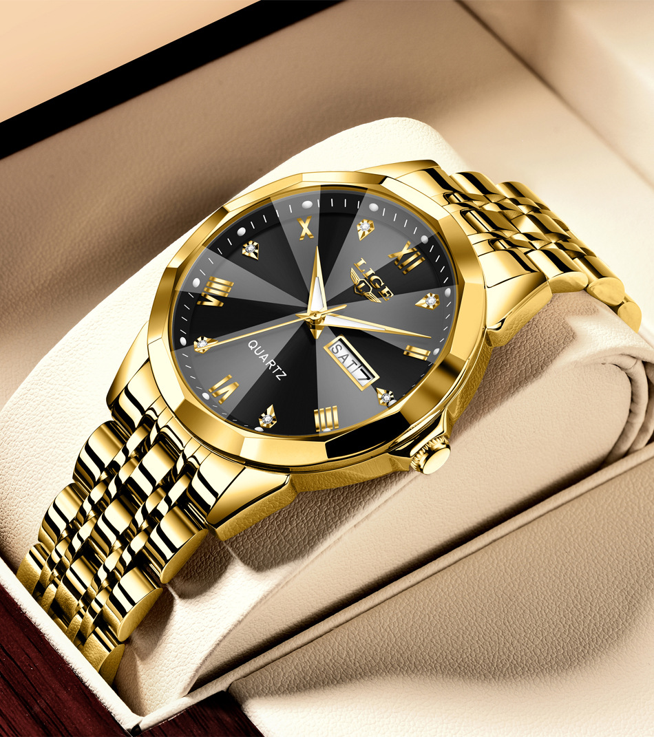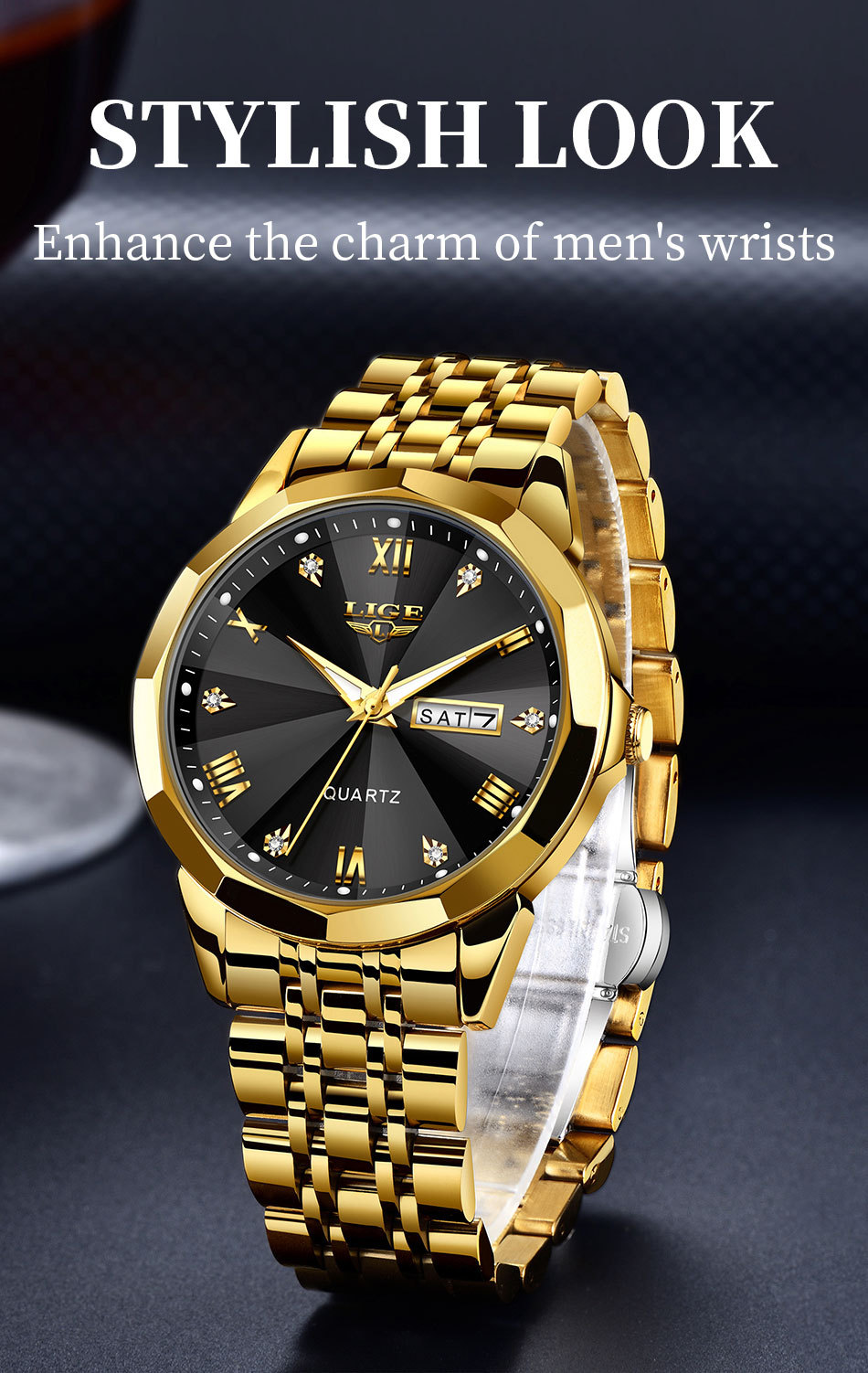 Colors: Silver-black steel band, alternating gold-silver-blue steel band, silver-blue steel band, alternating gold-silver-white steel band, silver-white steel band, all-gold steel band, gold-black steel band
