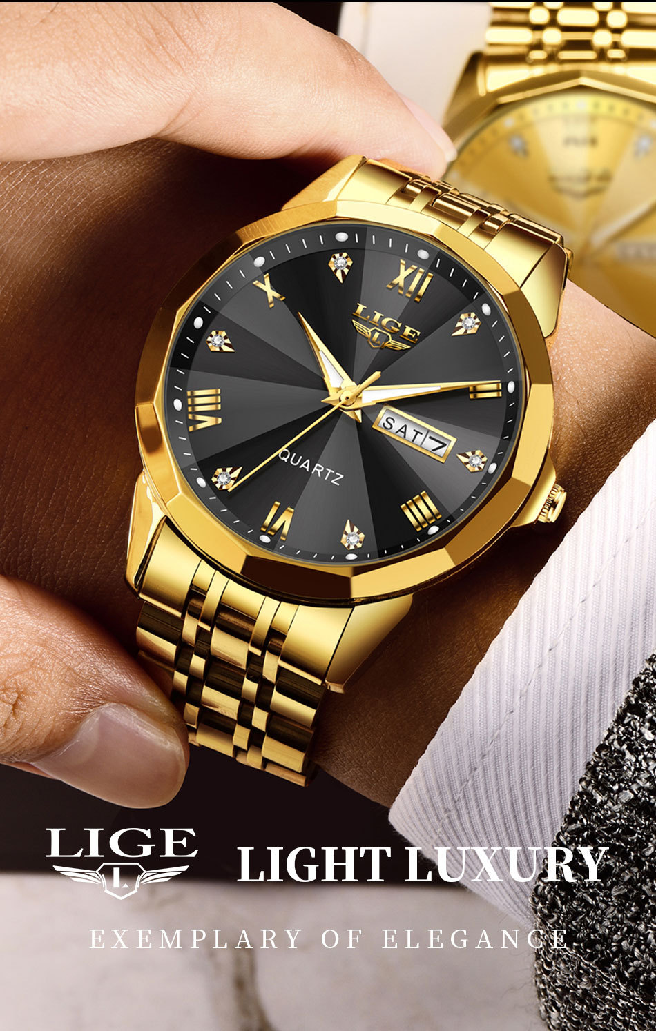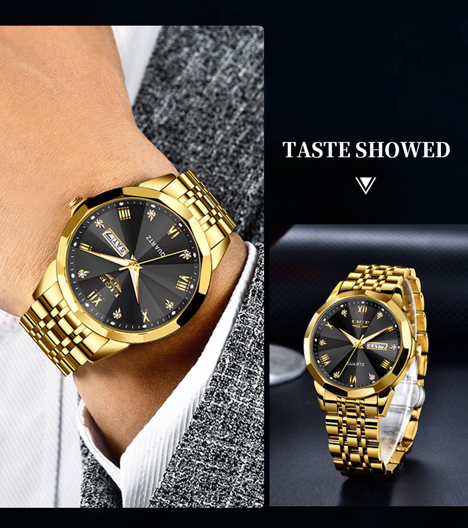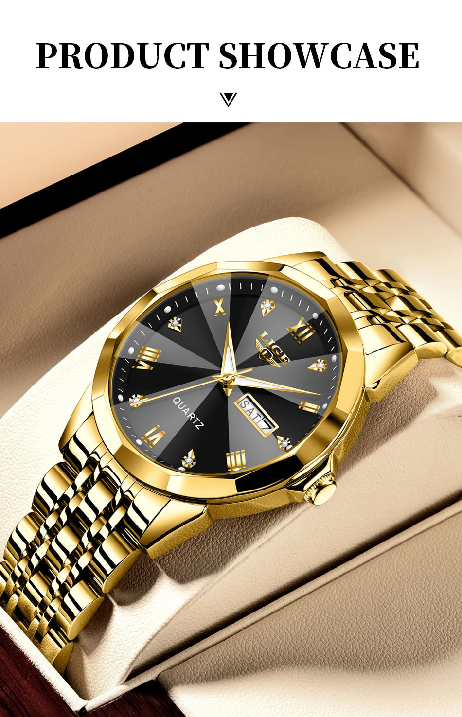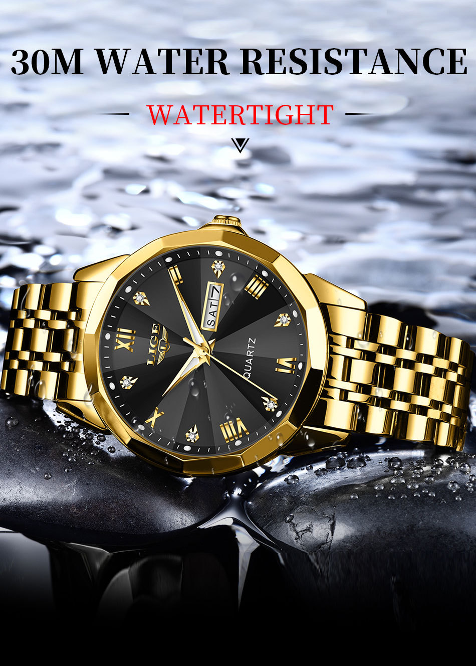Colors: Silver-black steel band, alternating gold-silver-blue steel band, silver-blue steel band, alternating gold-silver-white steel band, silver-white steel band, all-gold steel band, gold-black steel band