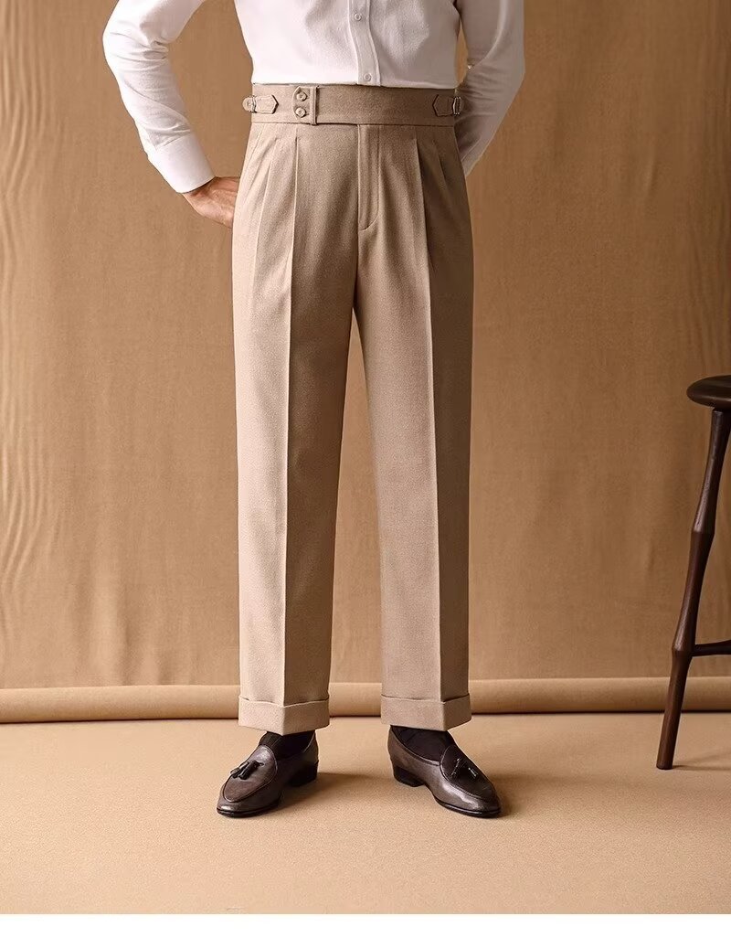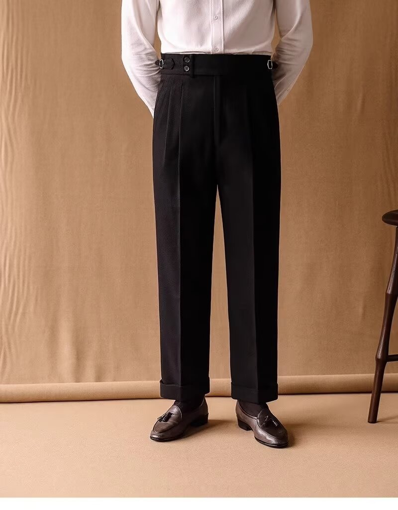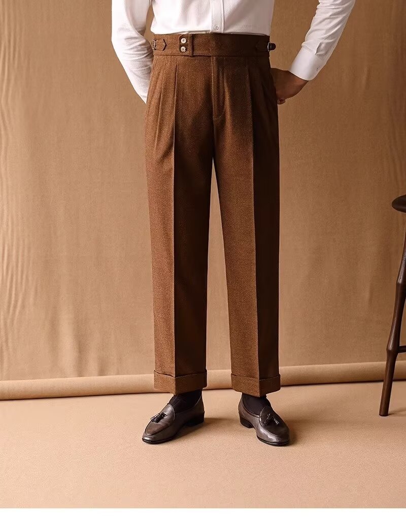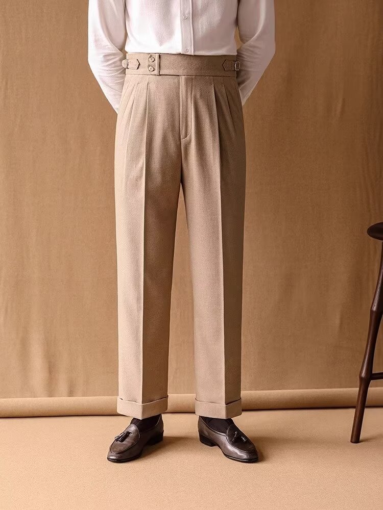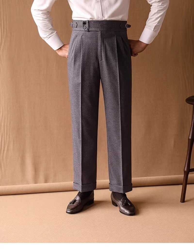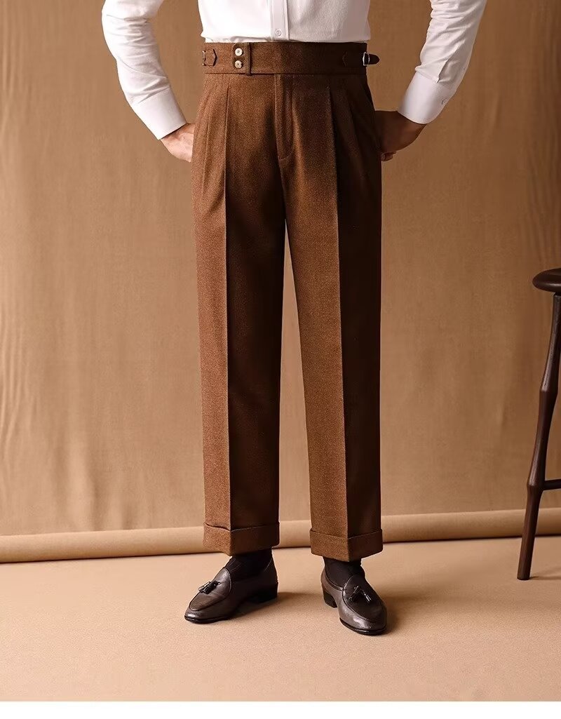 Mens Winter Straight-Leg High-Waist Trousers With Parisian Buckles For A Casual Look