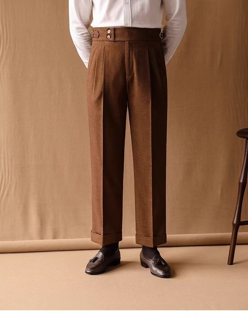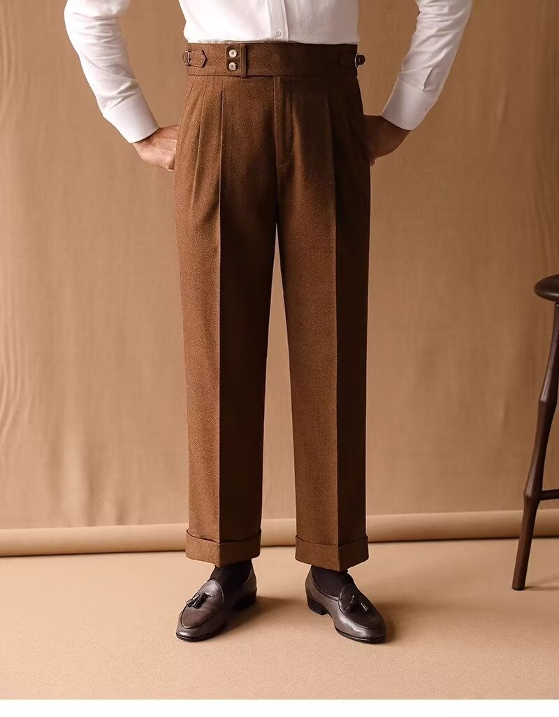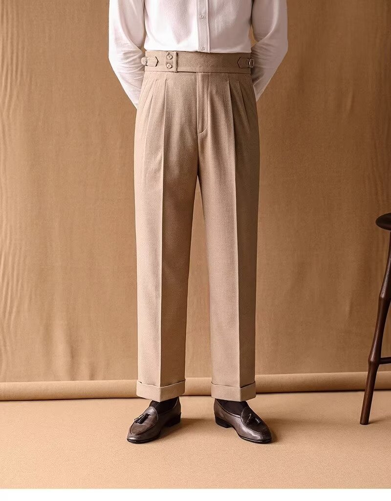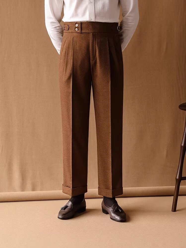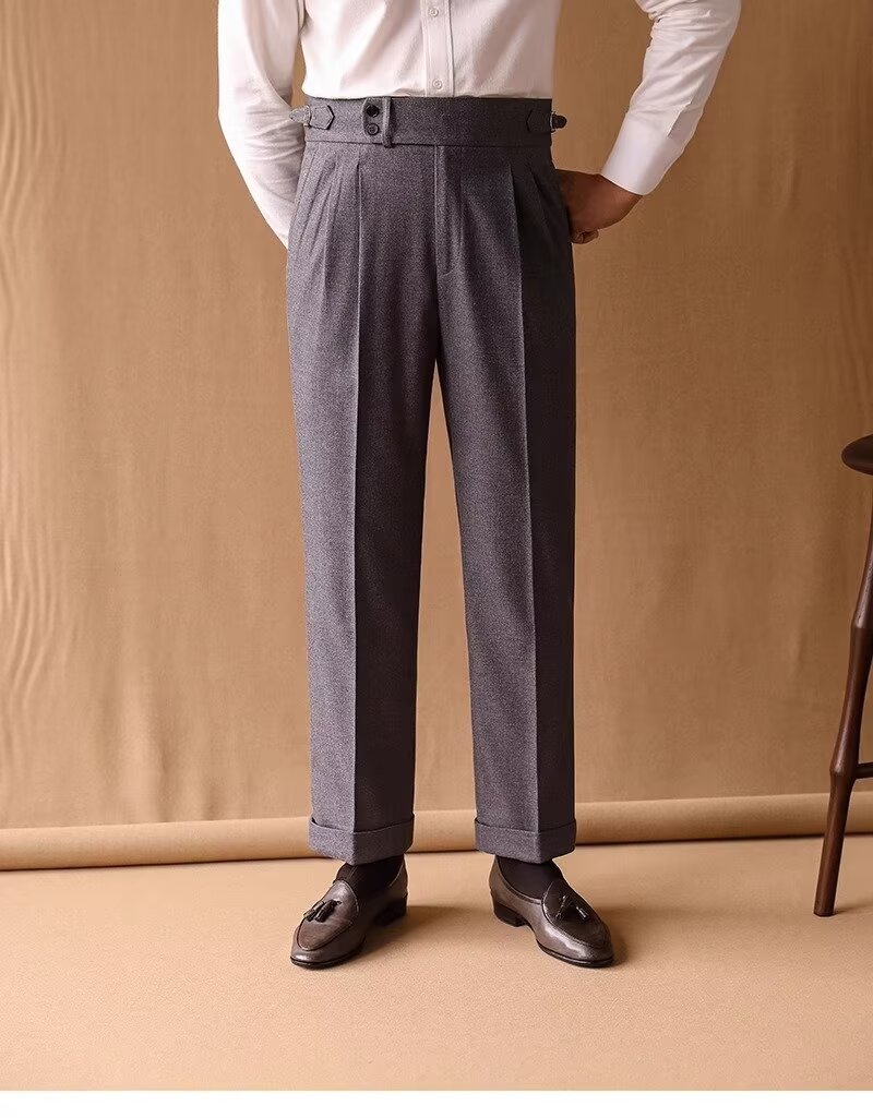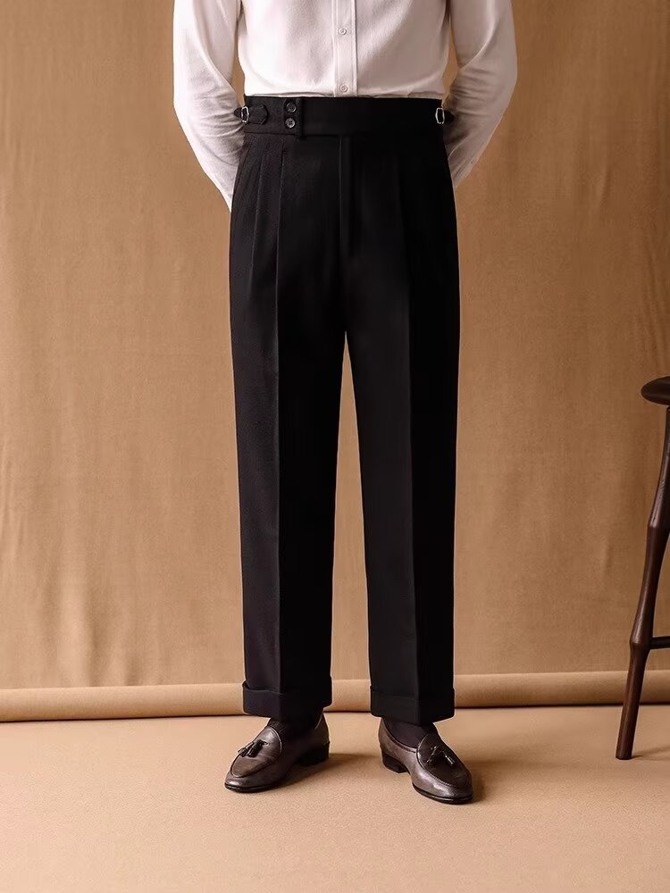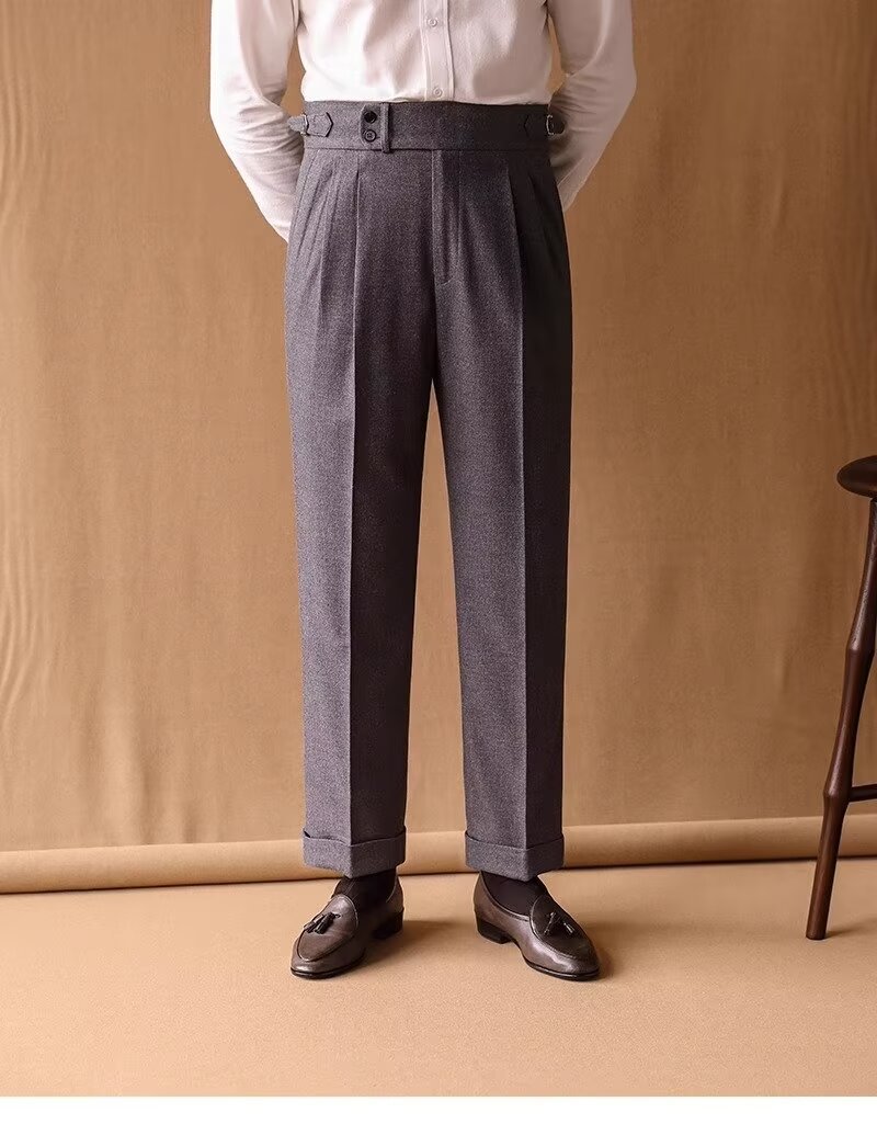 Mens Winter Straight-Leg High-Waist Trousers With Parisian Buckles For A Casual Look