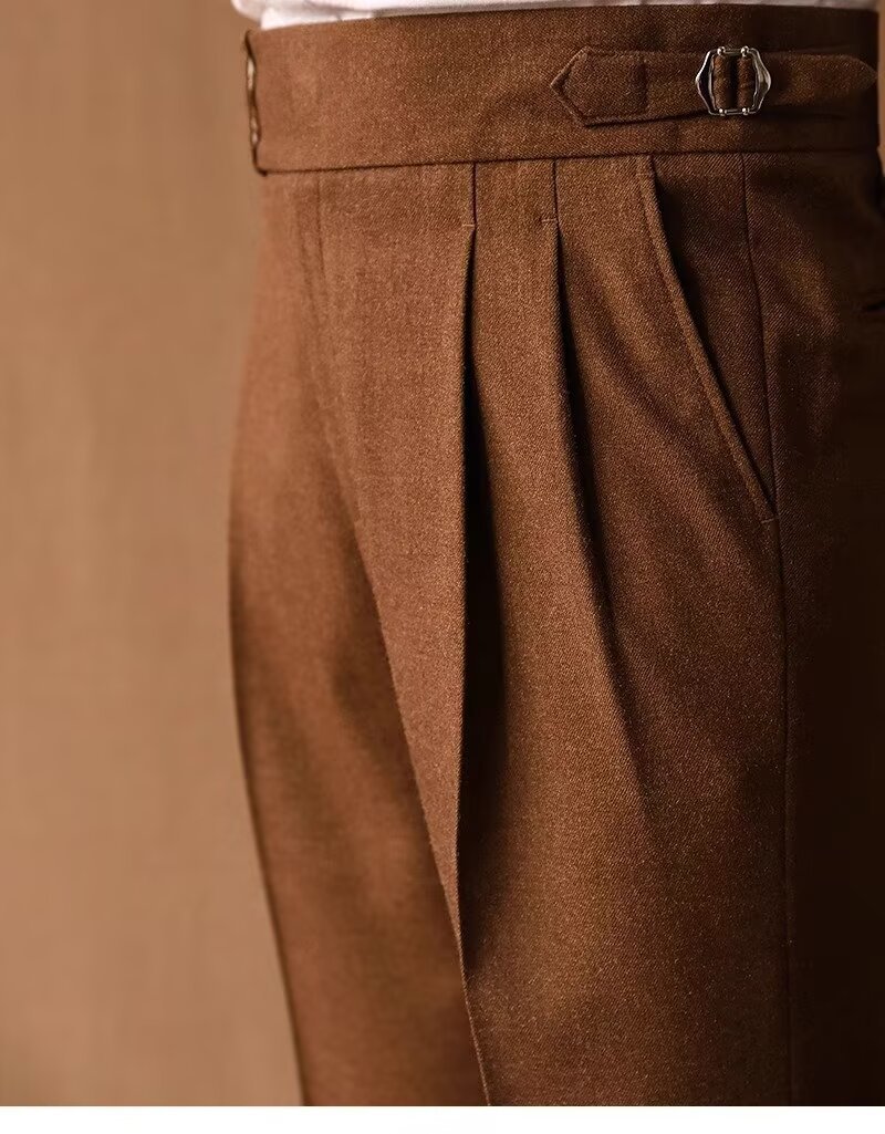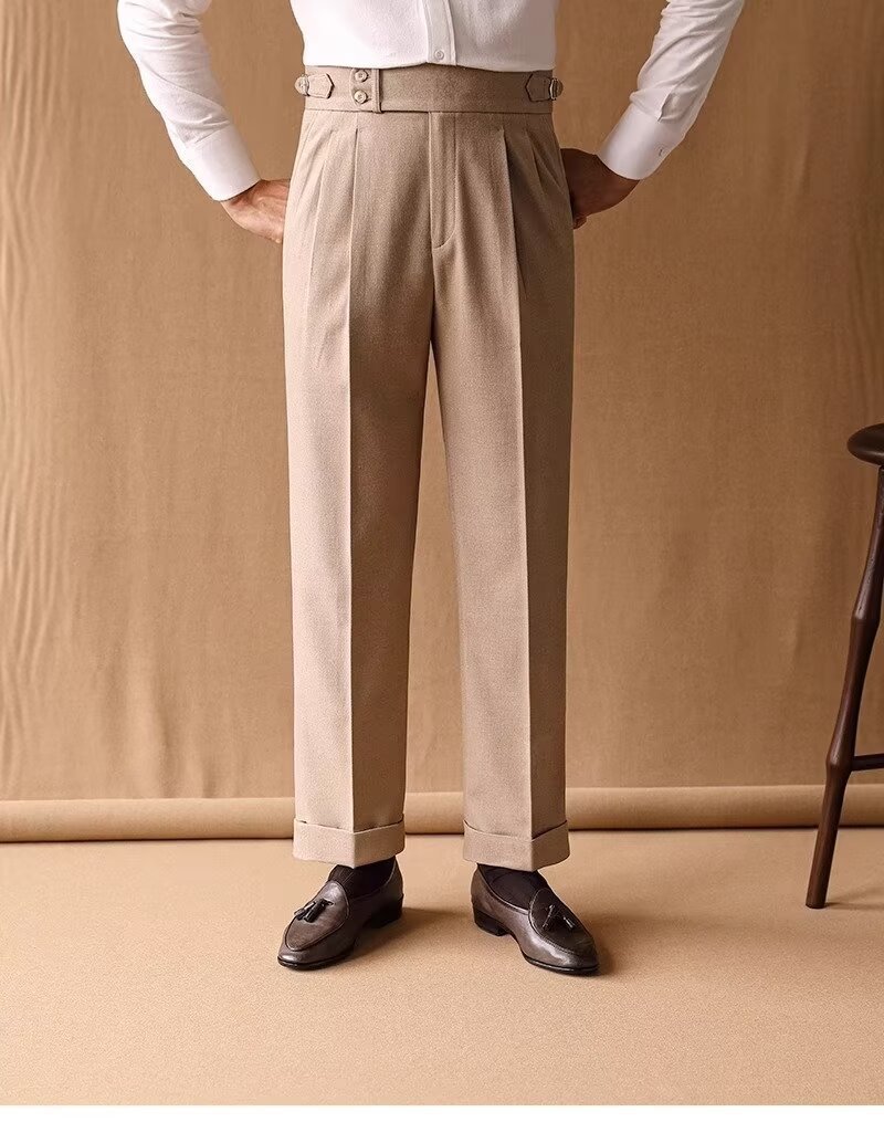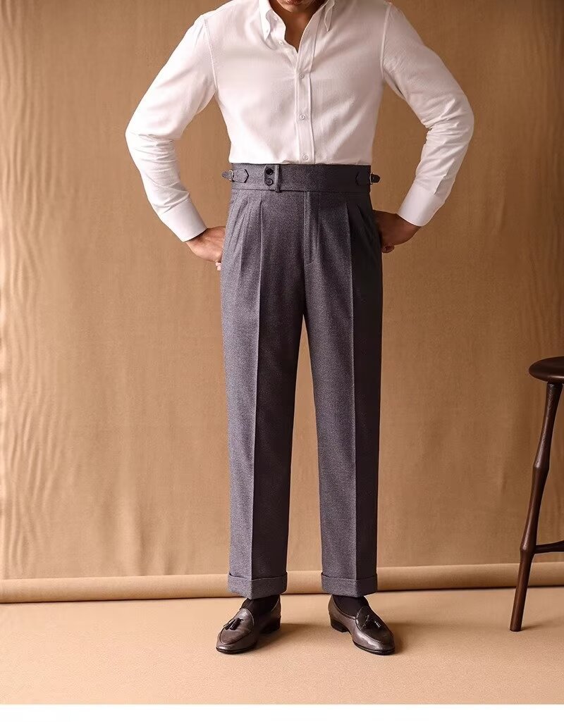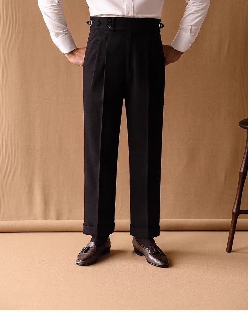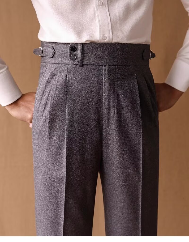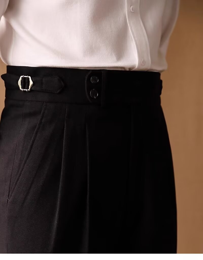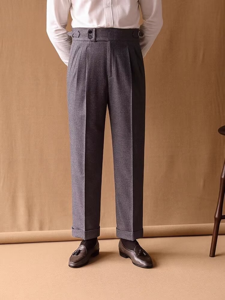 Mens Winter Straight-Leg High-Waist Trousers With Parisian Buckles For A Casual Look