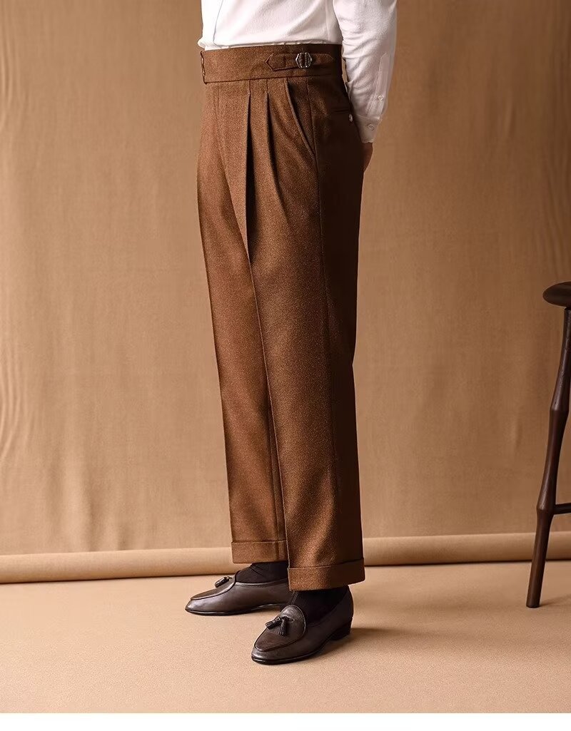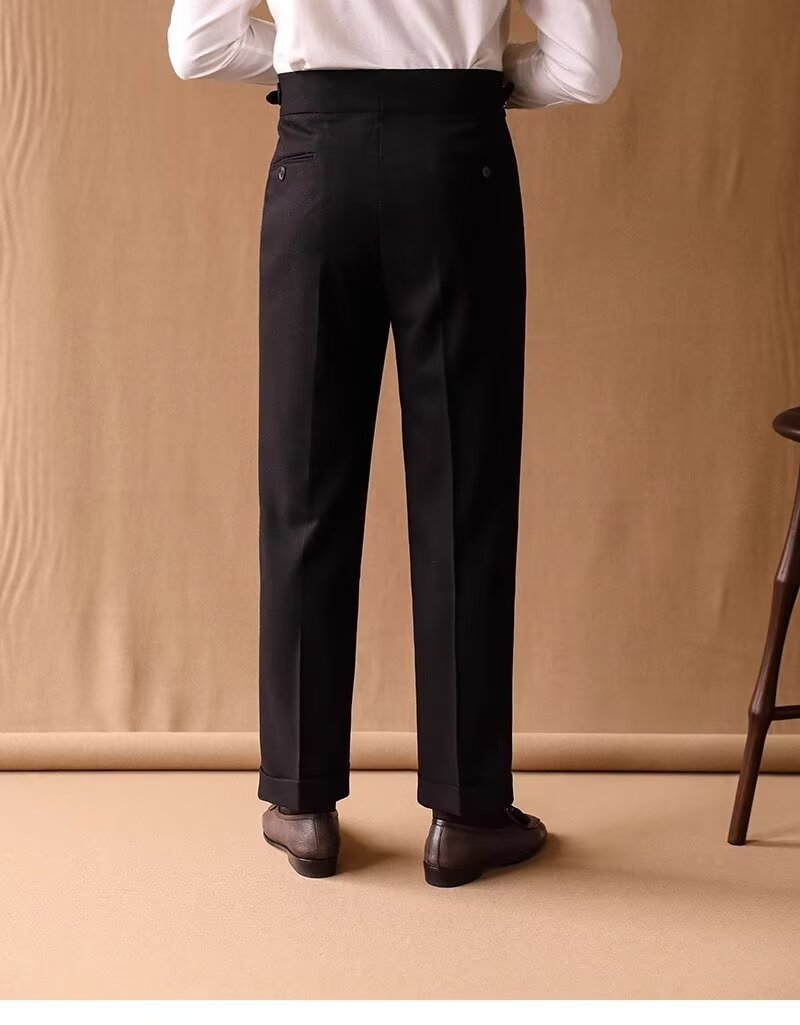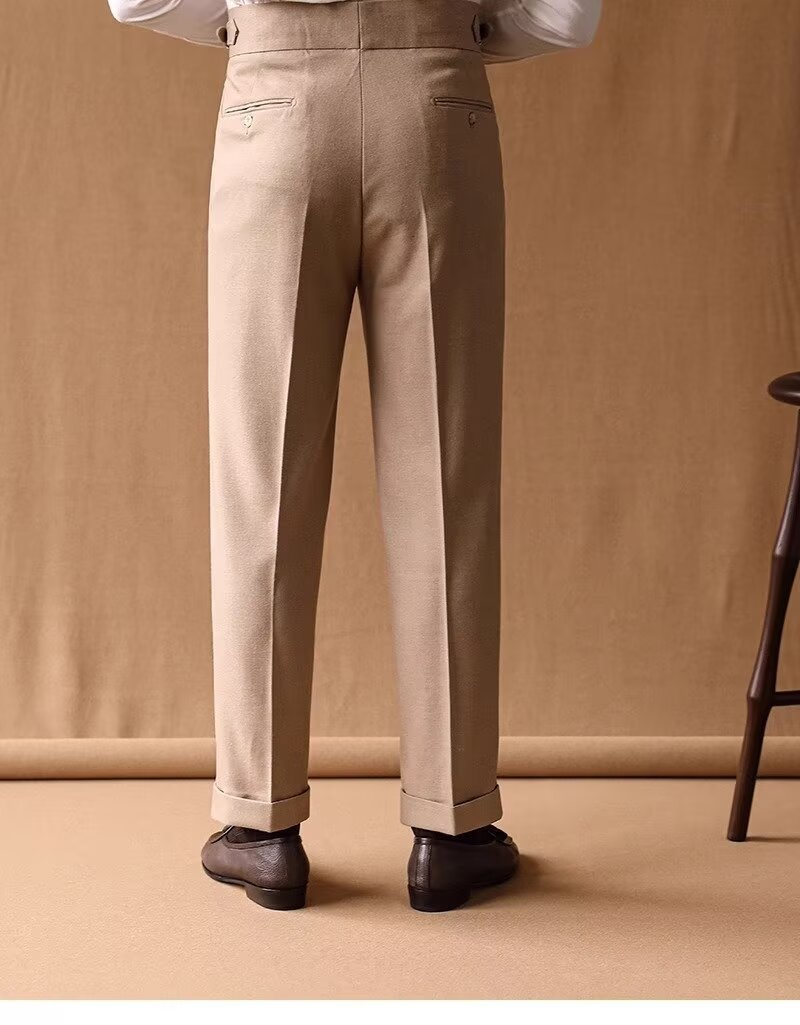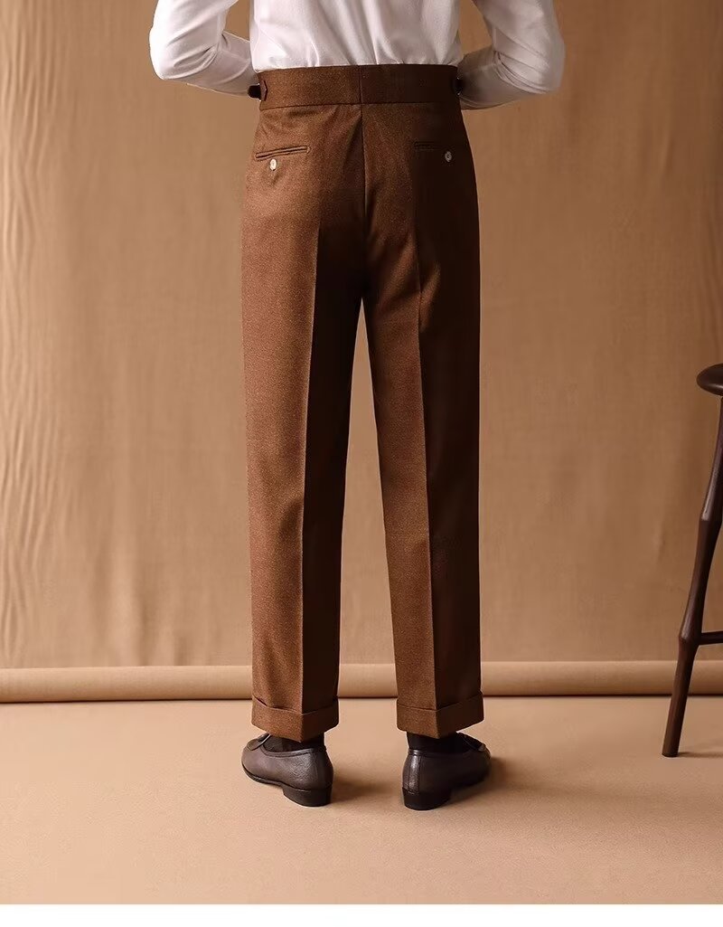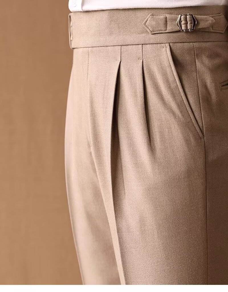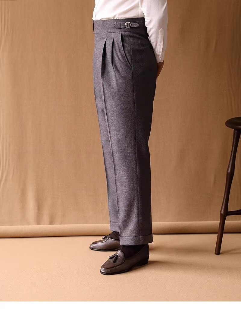Mens Winter Straight-Leg High-Waist Trousers With Parisian Buckles For A Casual Look