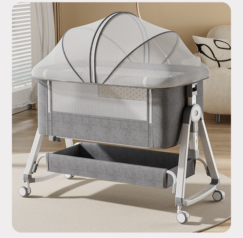Style 7: Upgraded aluminum alloy model—Gray—Standard mattress combo I [Converts into a rocking bed—6-position adjustment—Foldable]