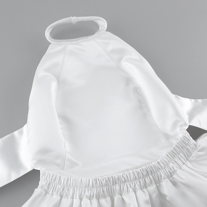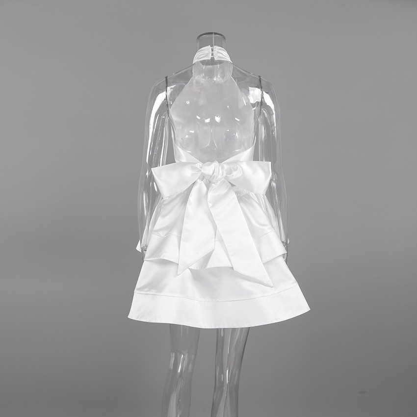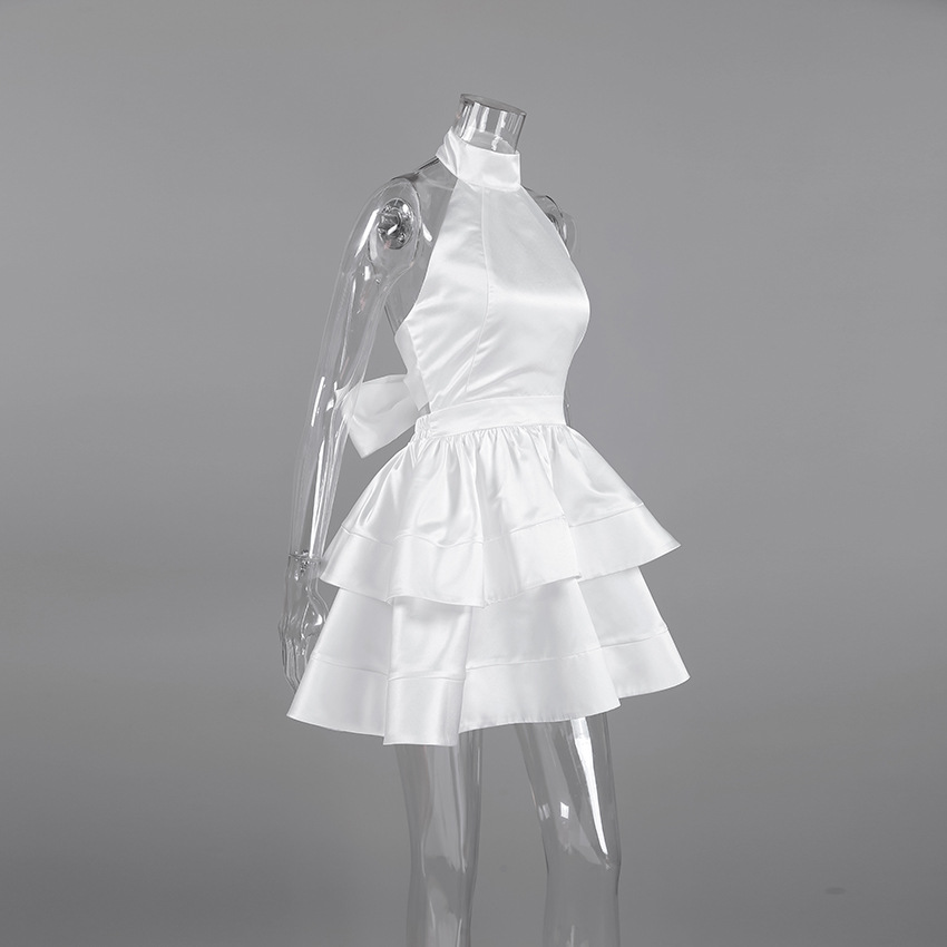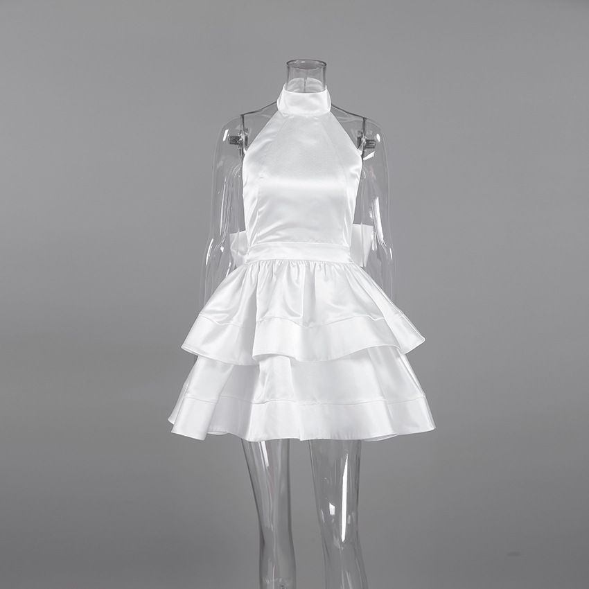 Neck-hanging Satin Puff Skirt Evening Gown Waist-cinching A-line Formal Dress For Women