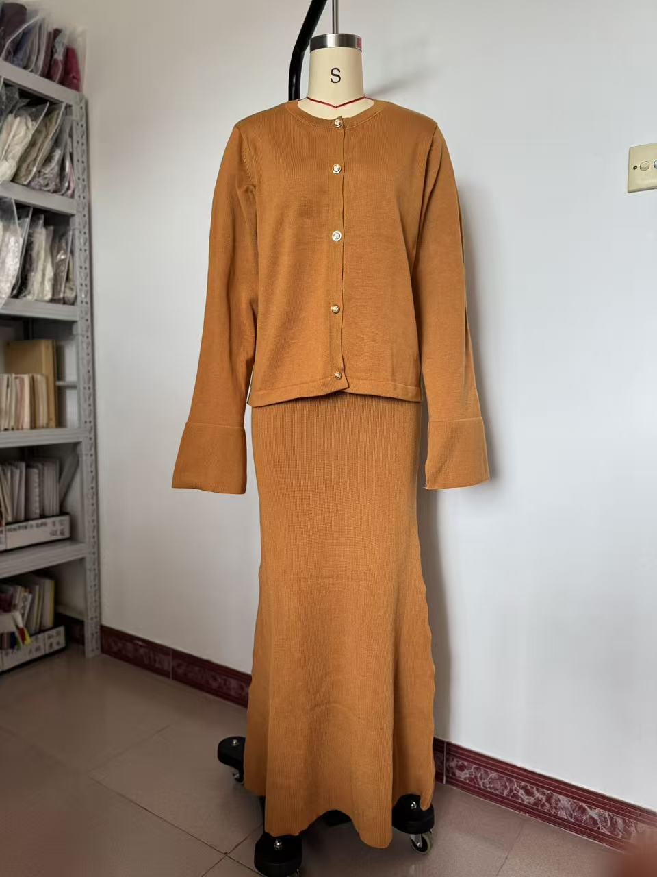 0 Review for New Autumn Crew-Neck Button-Up Cardigan Knitted Sweater Dress
