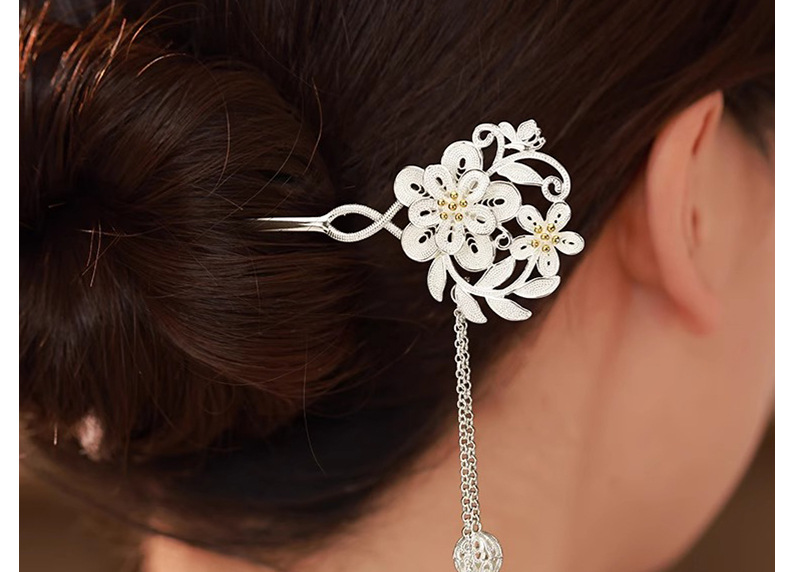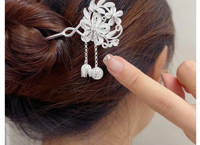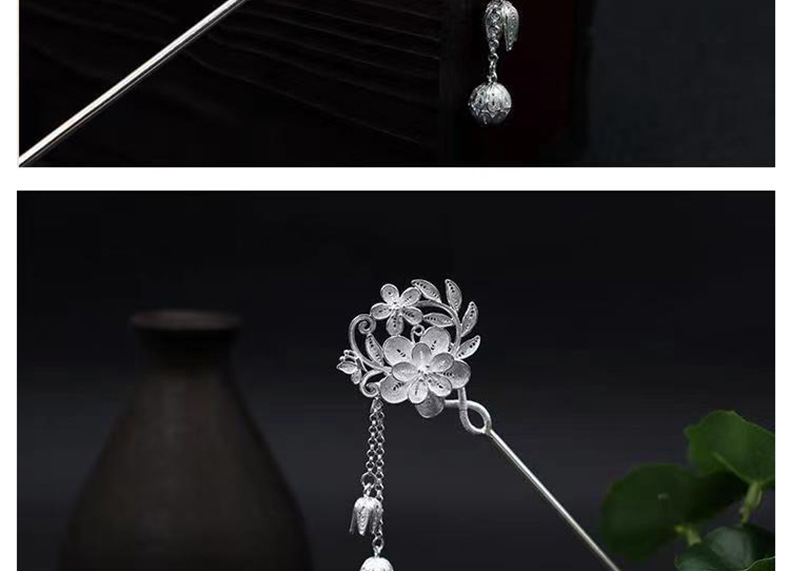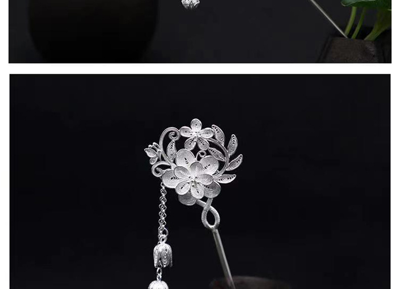 New Chinese-style 925 Silver Flower-and-Butterfly Tassel Hairpin For Women