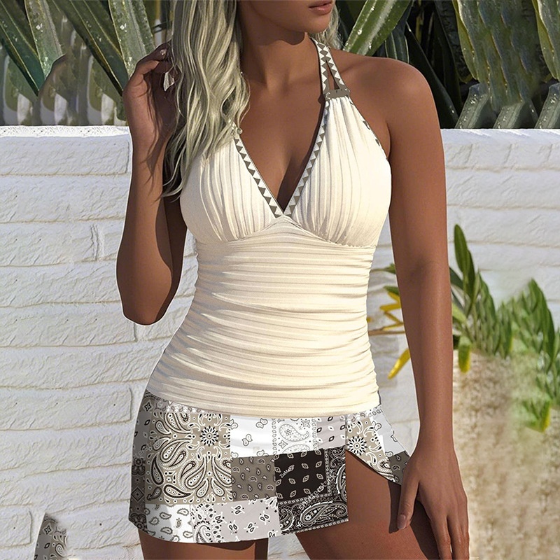 New European And American-style Solid-color Modest Two-piece Swimsuit