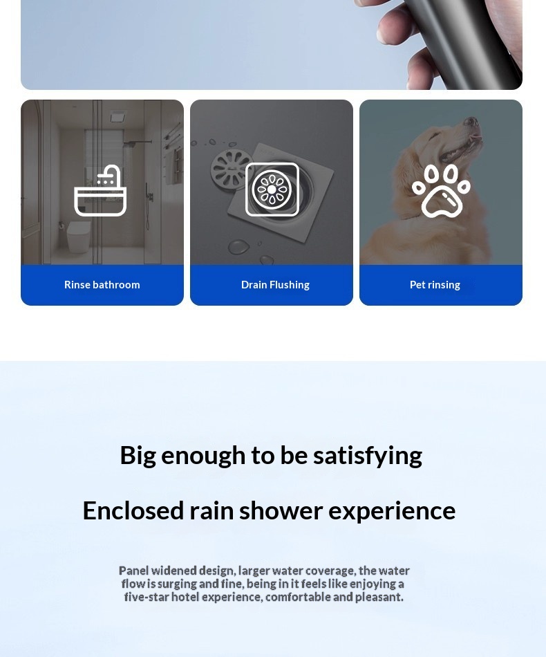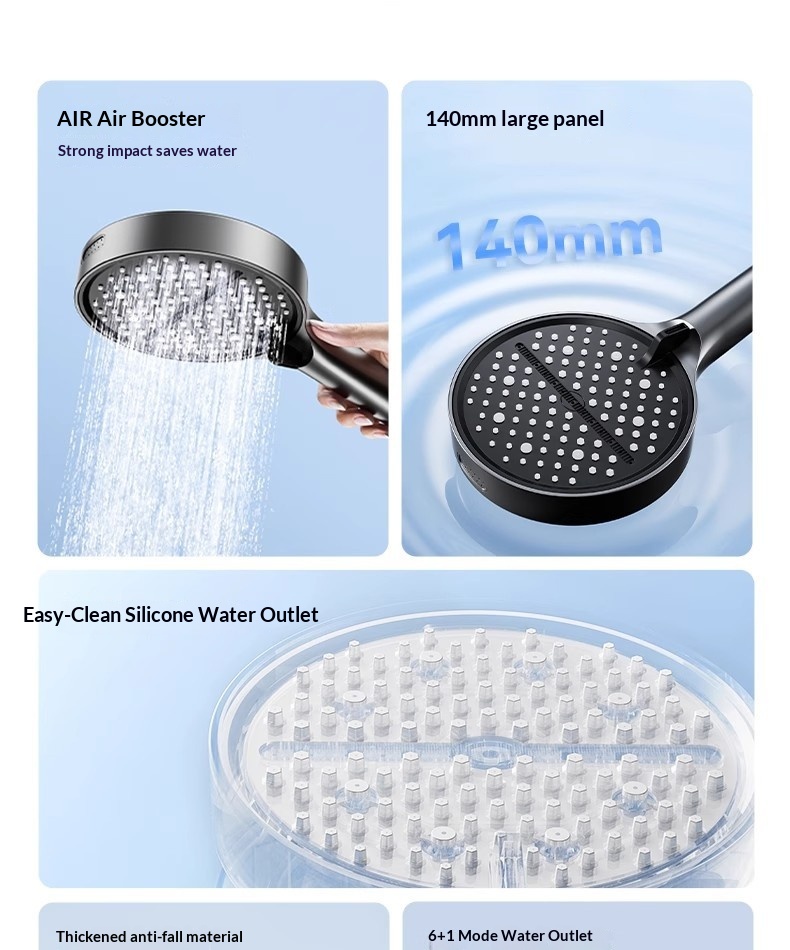 Functions: Spray, Massage, Bubble, Adjustable Settings, Rainfall, Boost Pressure