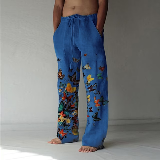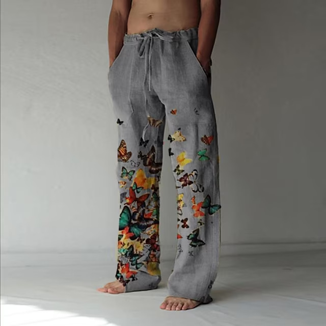 0 Review for New SpringAutumn Mens Casual Pants With Butterfly Print
