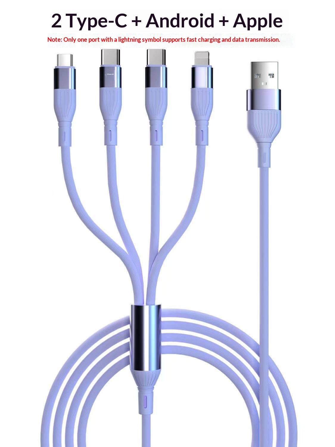 Model: One-to-four (4 iPhones) simultaneous charging; one-to-four (4 Type-C devices) simultaneous charging; one-to-four (3 Type-C + iPhone) simultaneous charging; one-to-four (3 Type-C + Android) simultaneous charging; one-to-four (2 Type-C + iPhone + Android) simultaneous charging.