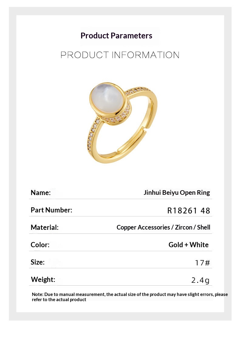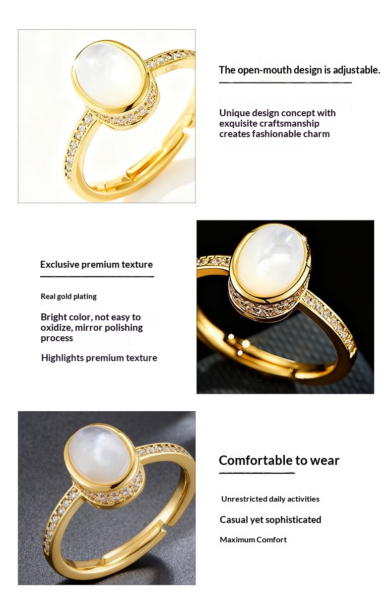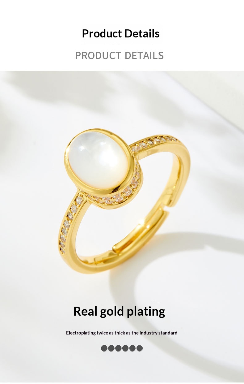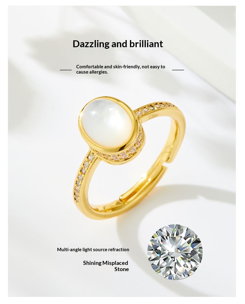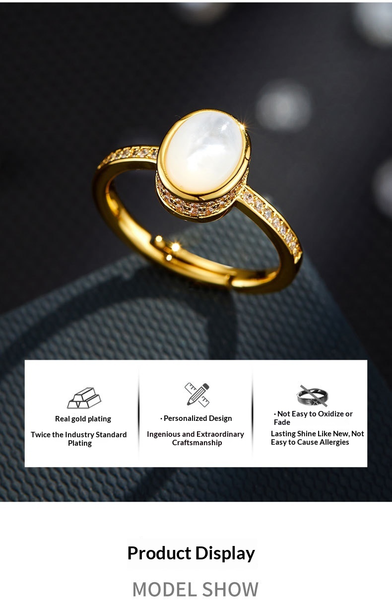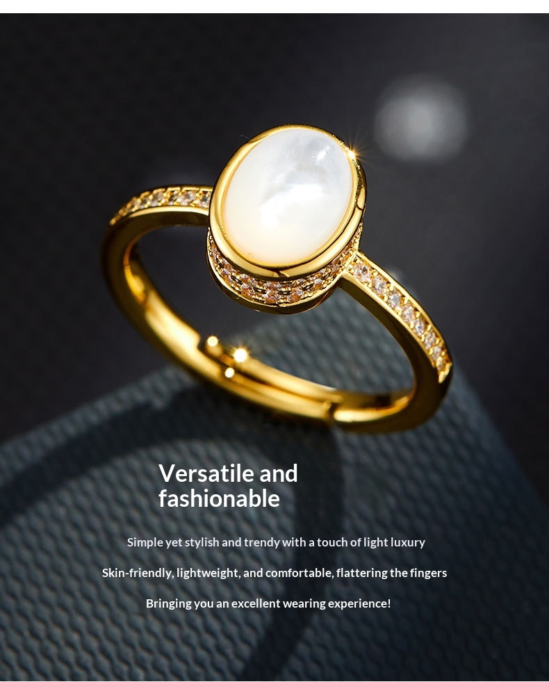 0 Review for Original Design Elegant And Minimalist Open Ring With Natural Mother-of-Pearl Oval Setting