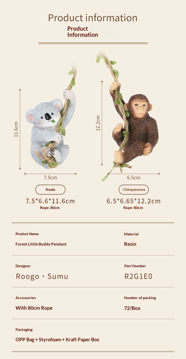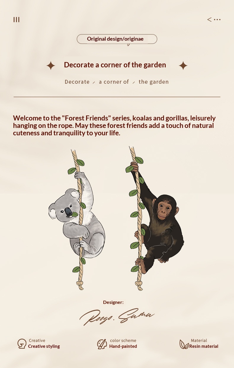 Outdoor Garden Monkey Koala Resin Gardening Miniature Scene Hanging Ornament