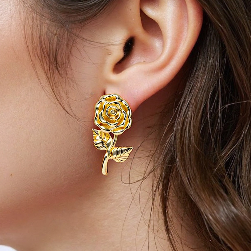 0 Review for Pastoral-style Rose Camellia And Daisy Earrings