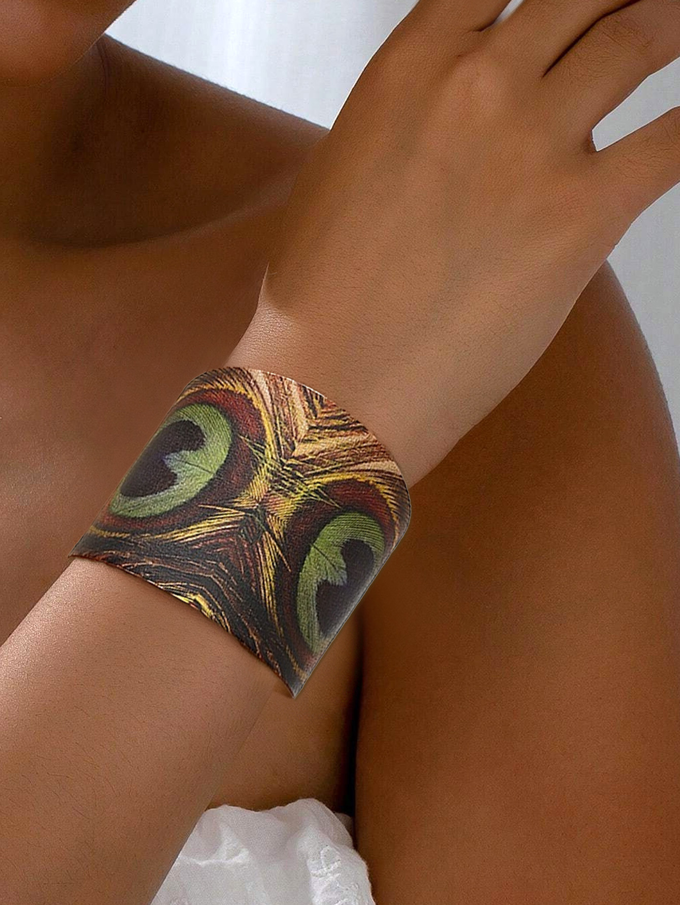 0 Review for Peacock Feather Printed Adjustable Open Bracelet