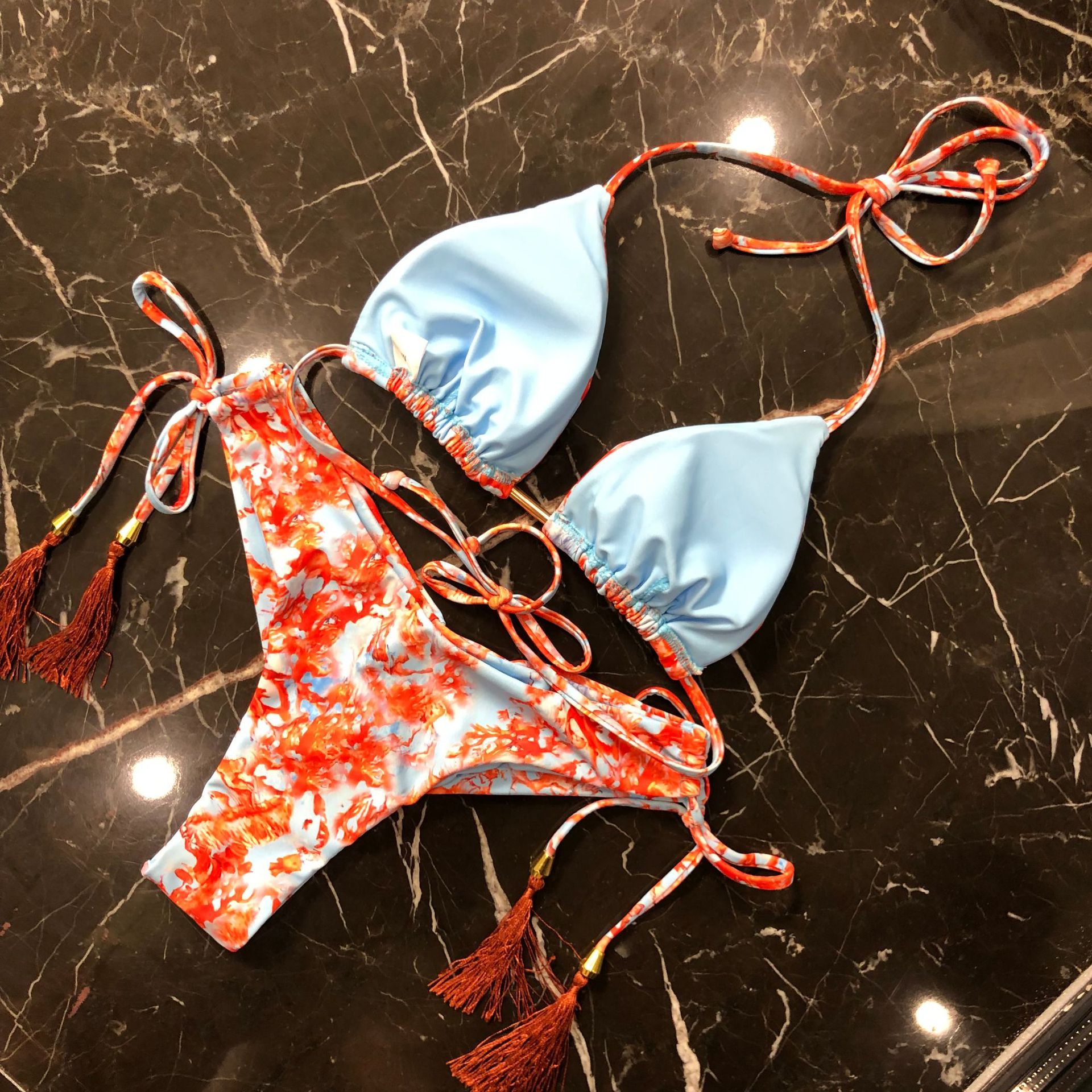 0 Review for Printed Lace Up Two Piece Swimsuit