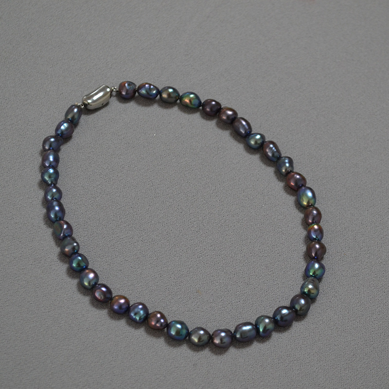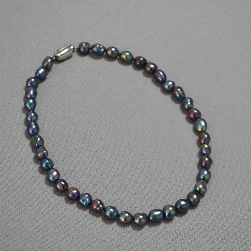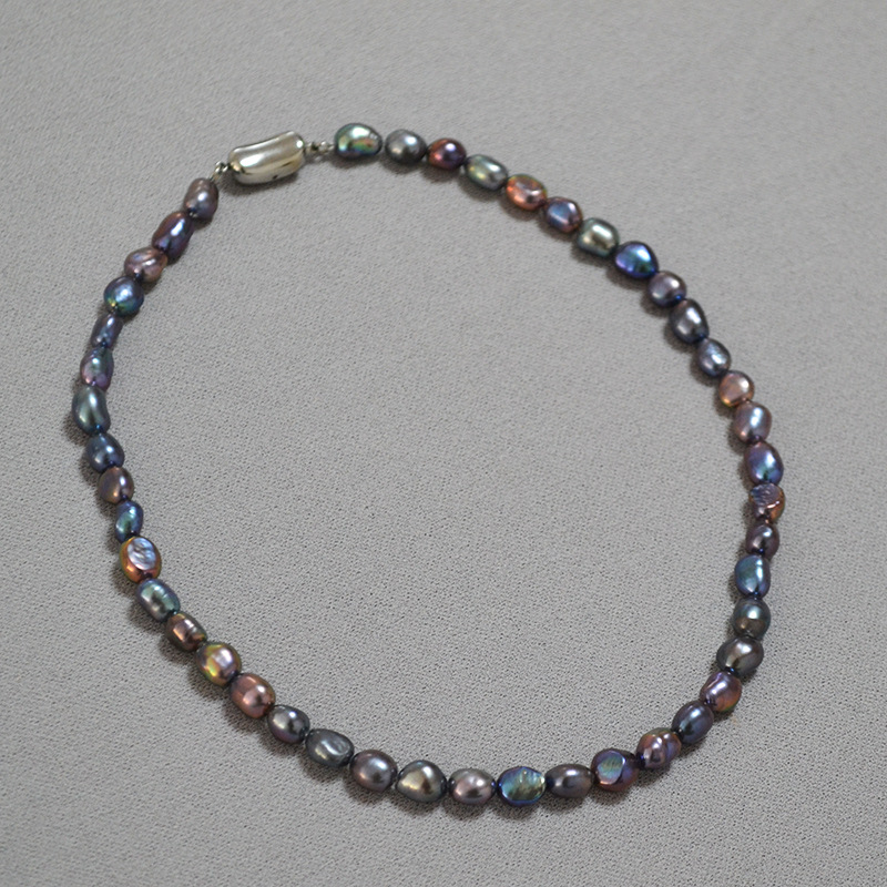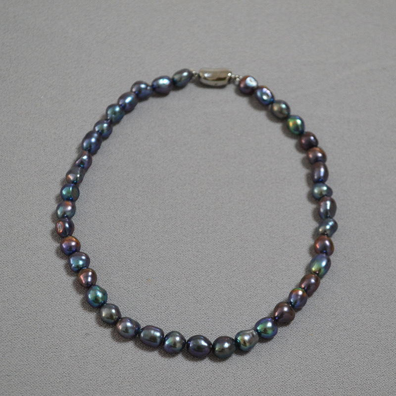 Rare Iridescent Peacock Green Tahitian Baroque Pearl Necklace For The Collarbone