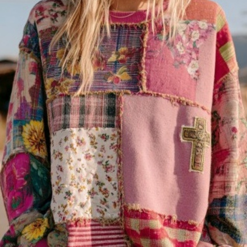 0 Review for Retro Color Blocked Round Neck Loose Long Sleeved Women's Pullover Sweater