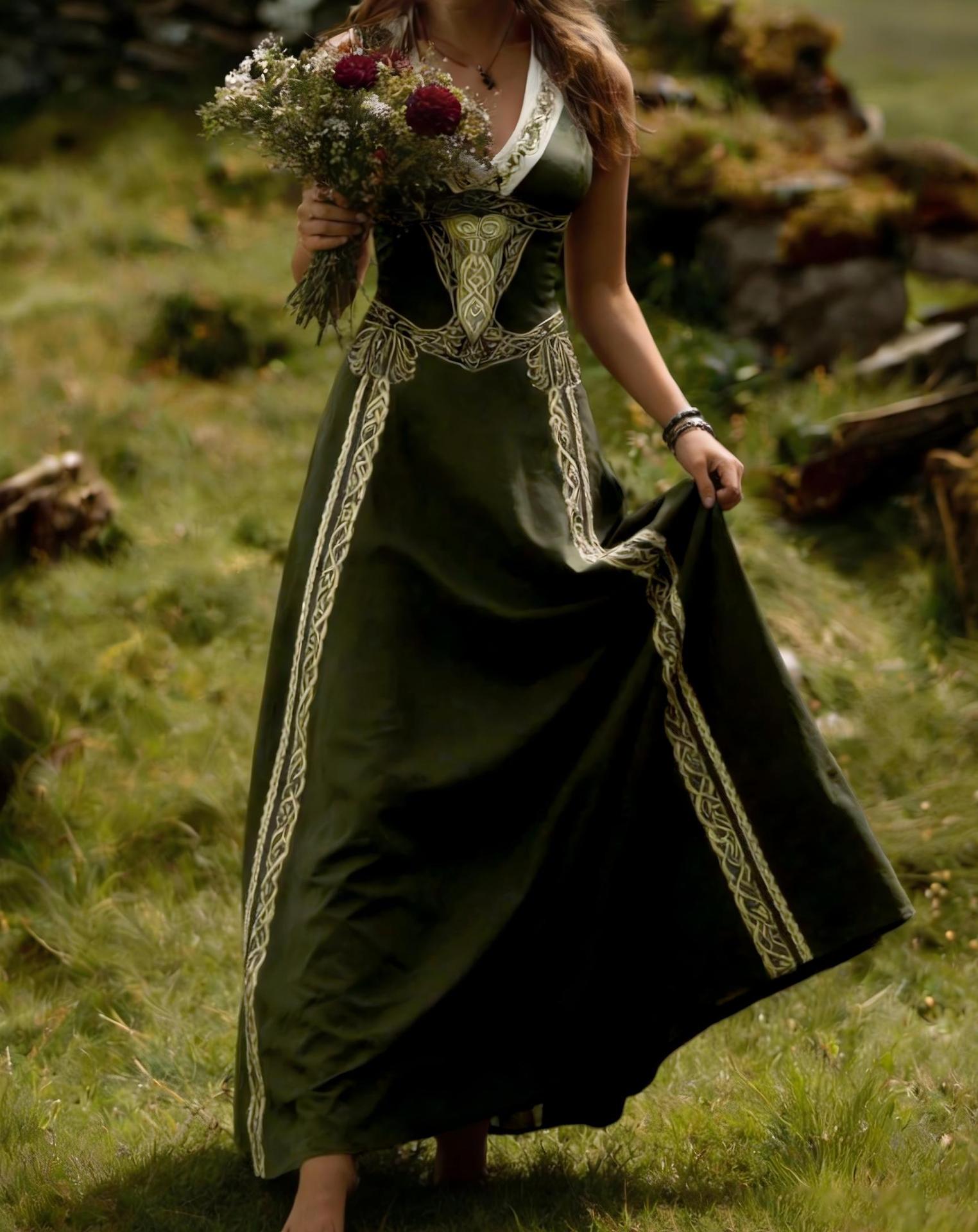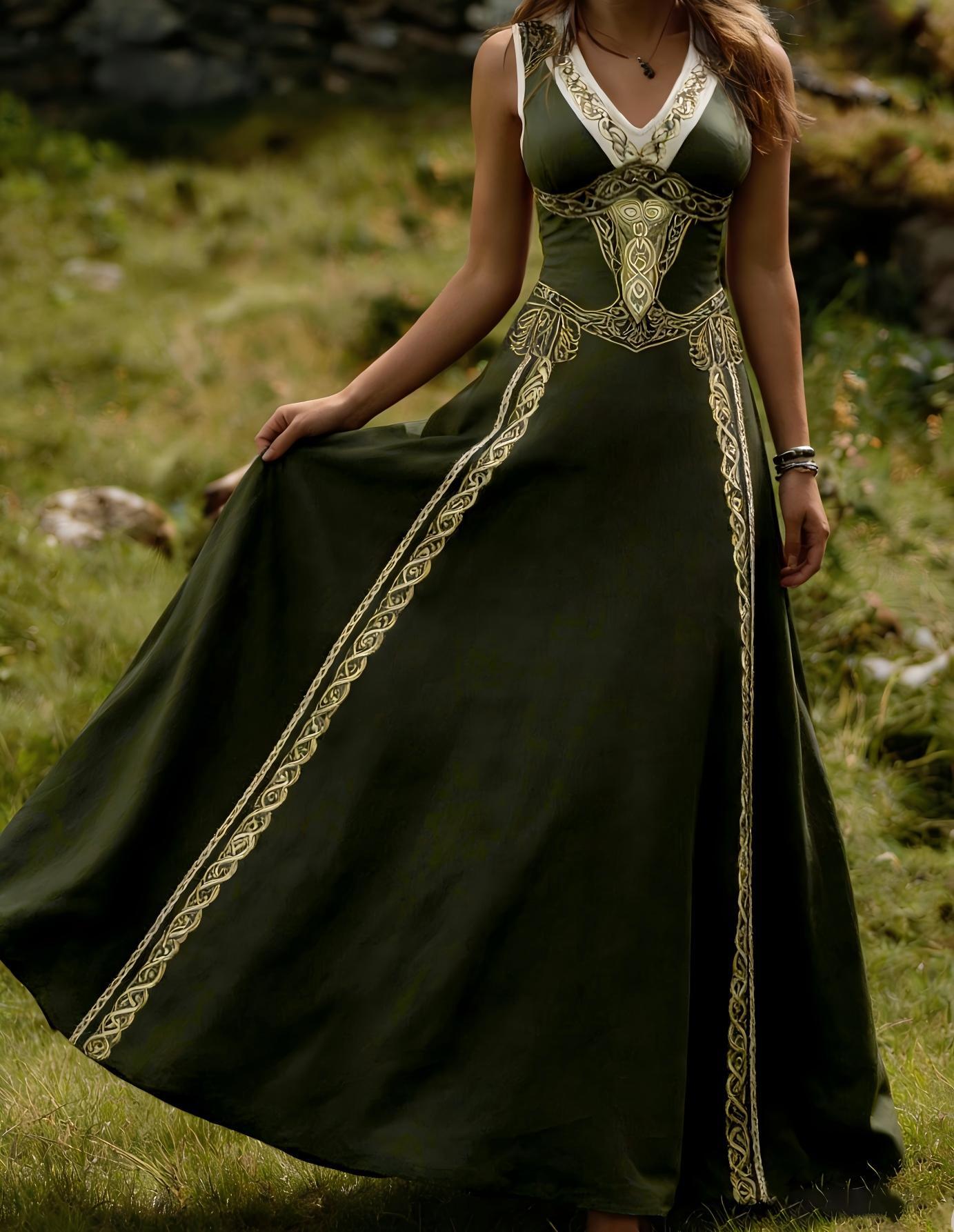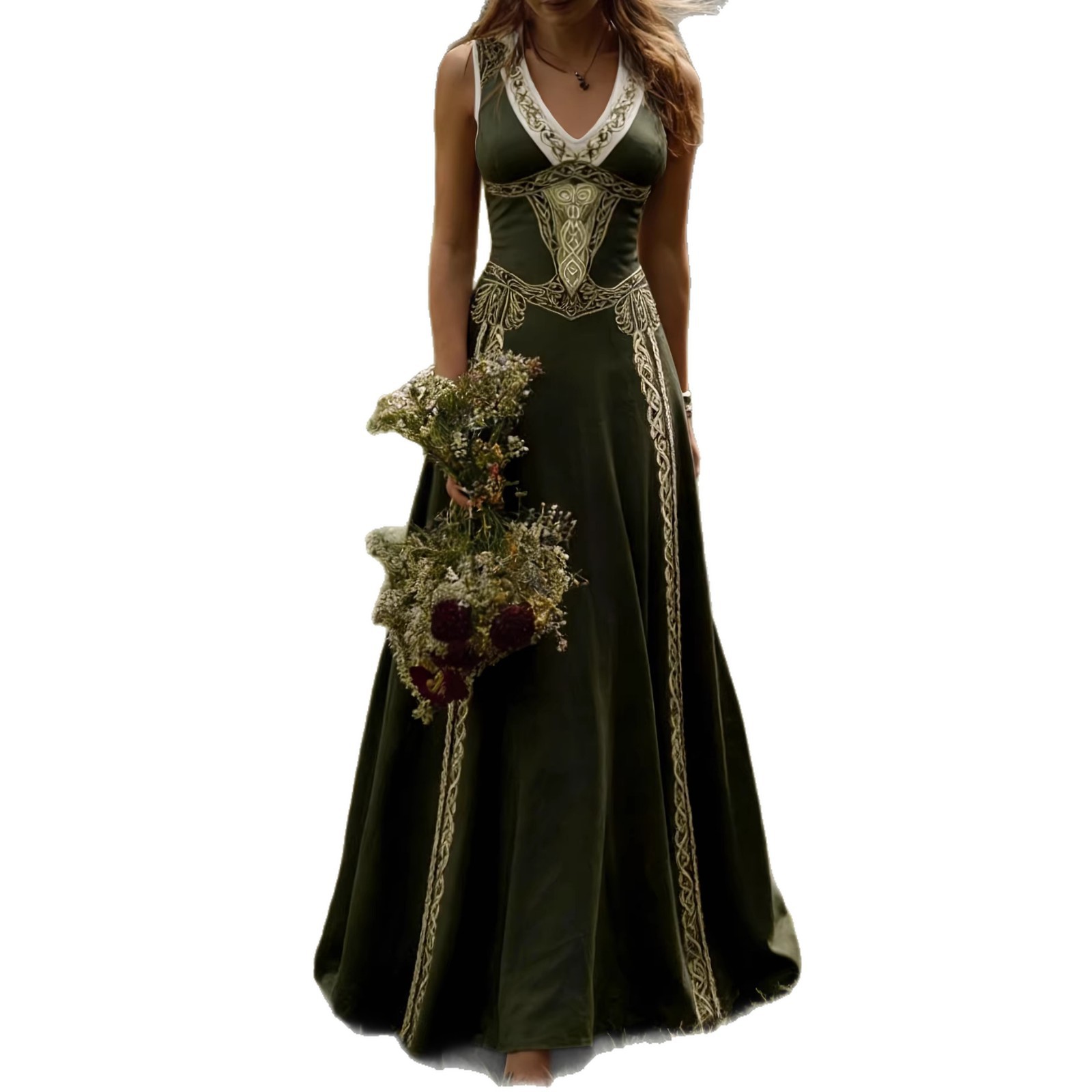 0 Review for Retro Fashion Art Gown V-Neck Sleeveless Maxi Dress