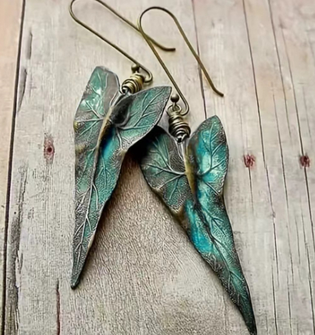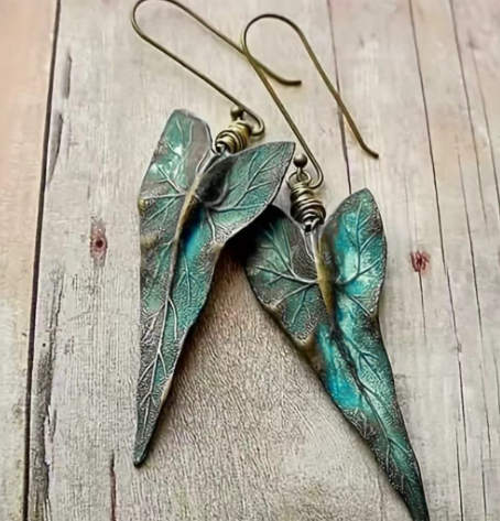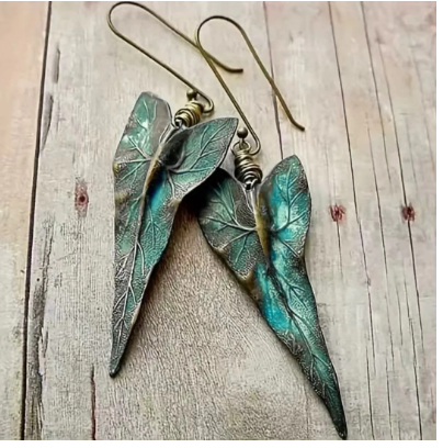 Retro Leaf Shaped Earrings With A Green Leaf Vein Texture