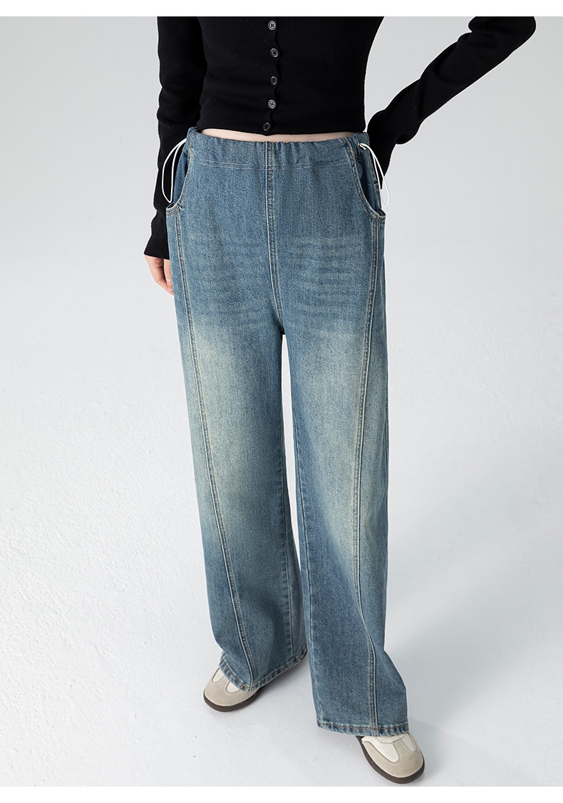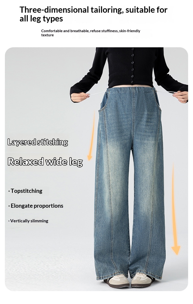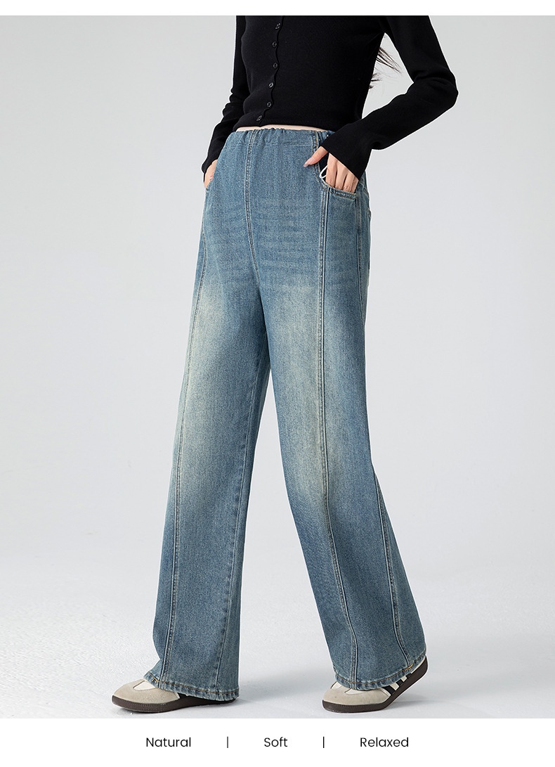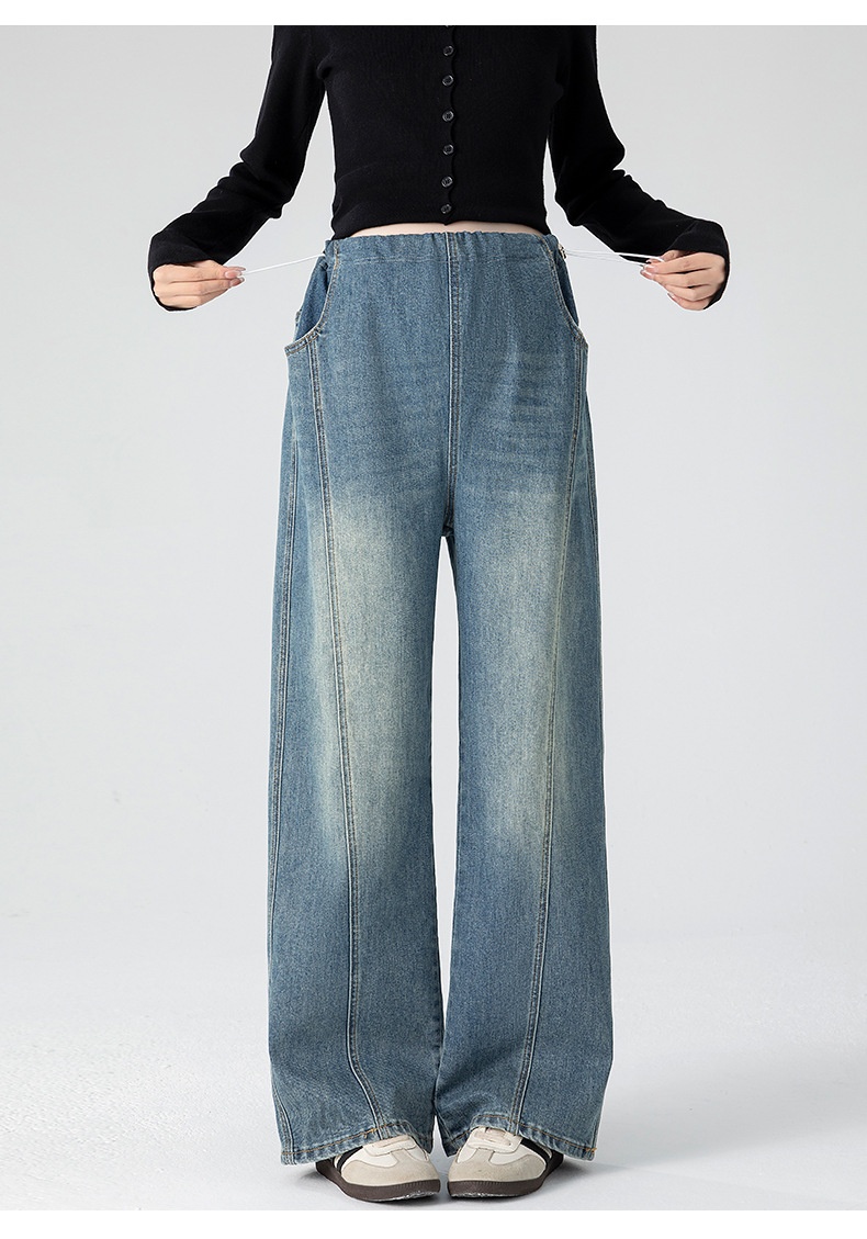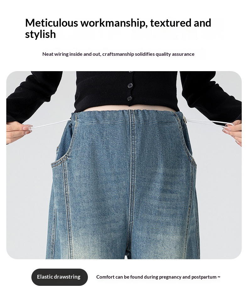 Retro Loose Straight-Leg High-Waist Floor-Length Wide-Leg Maternity Jeans