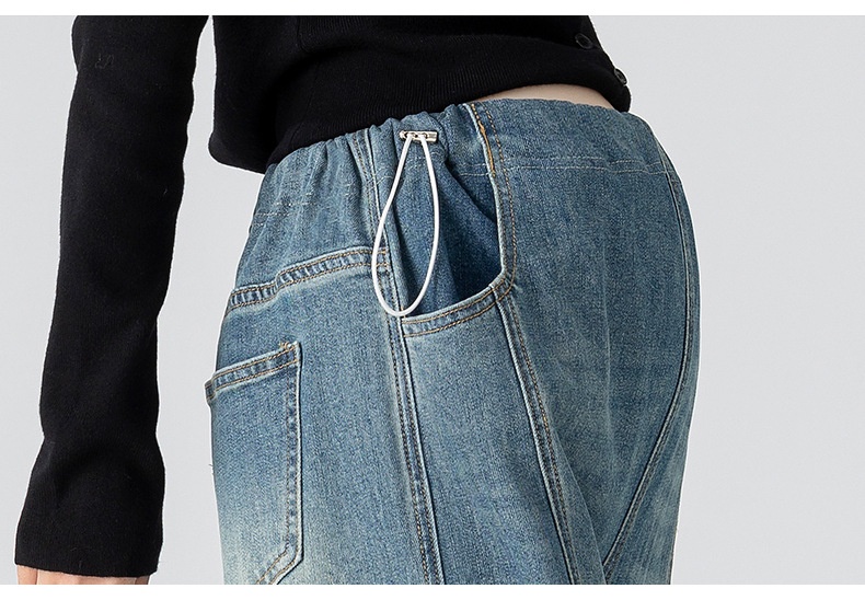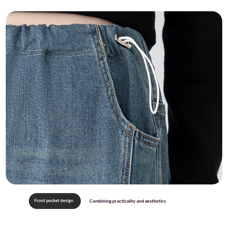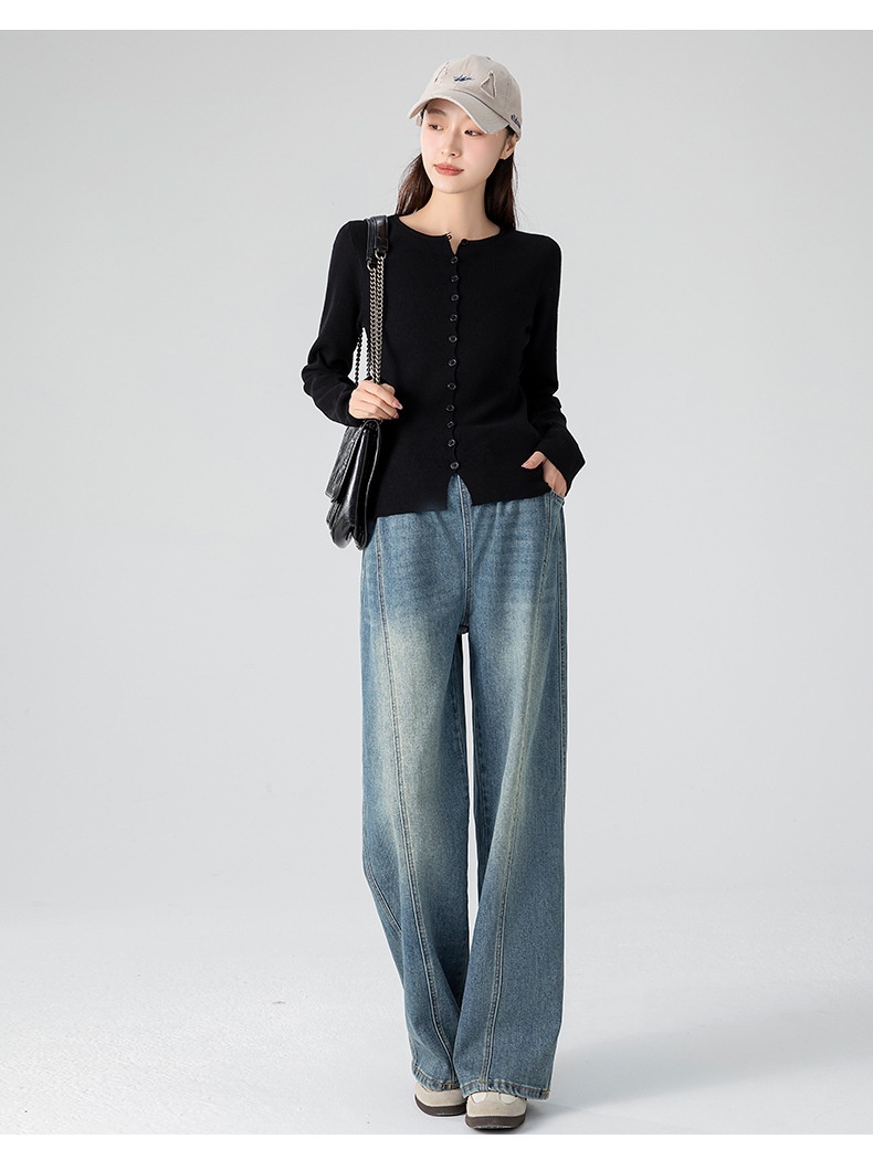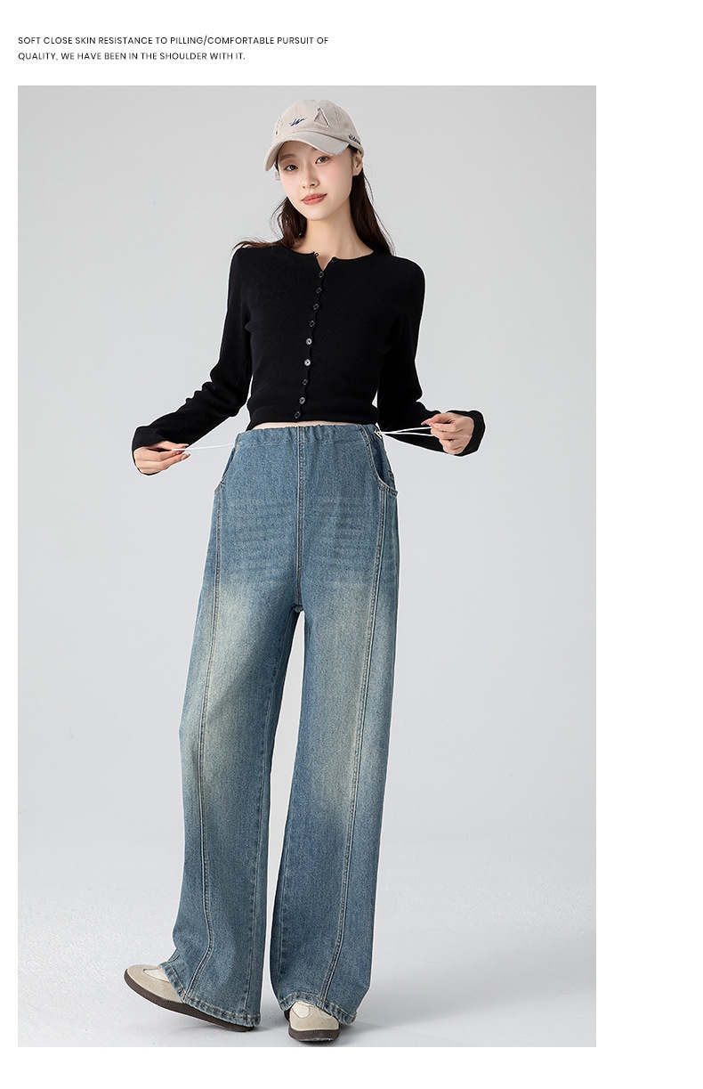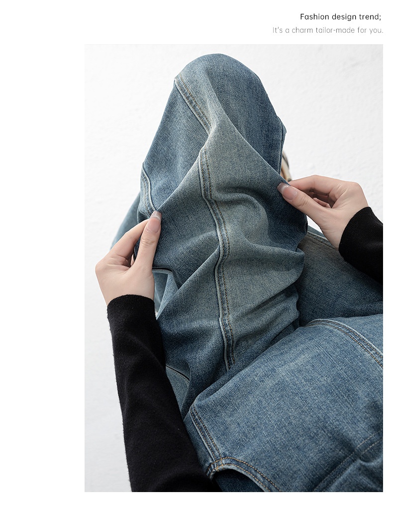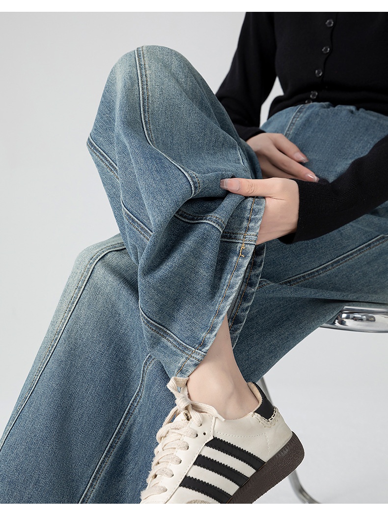 Retro Loose Straight-Leg High-Waist Floor-Length Wide-Leg Maternity Jeans
