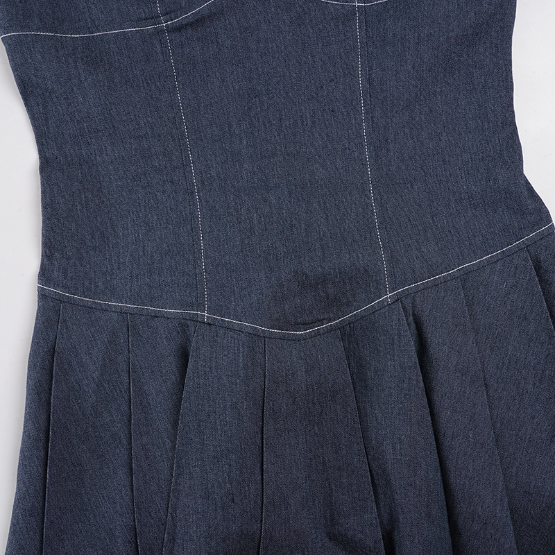 0 Review for Retro Style Hollow-out Pleated Dress