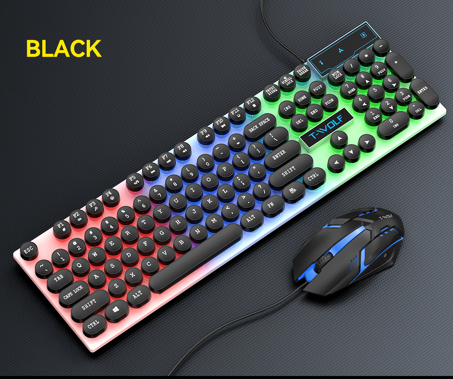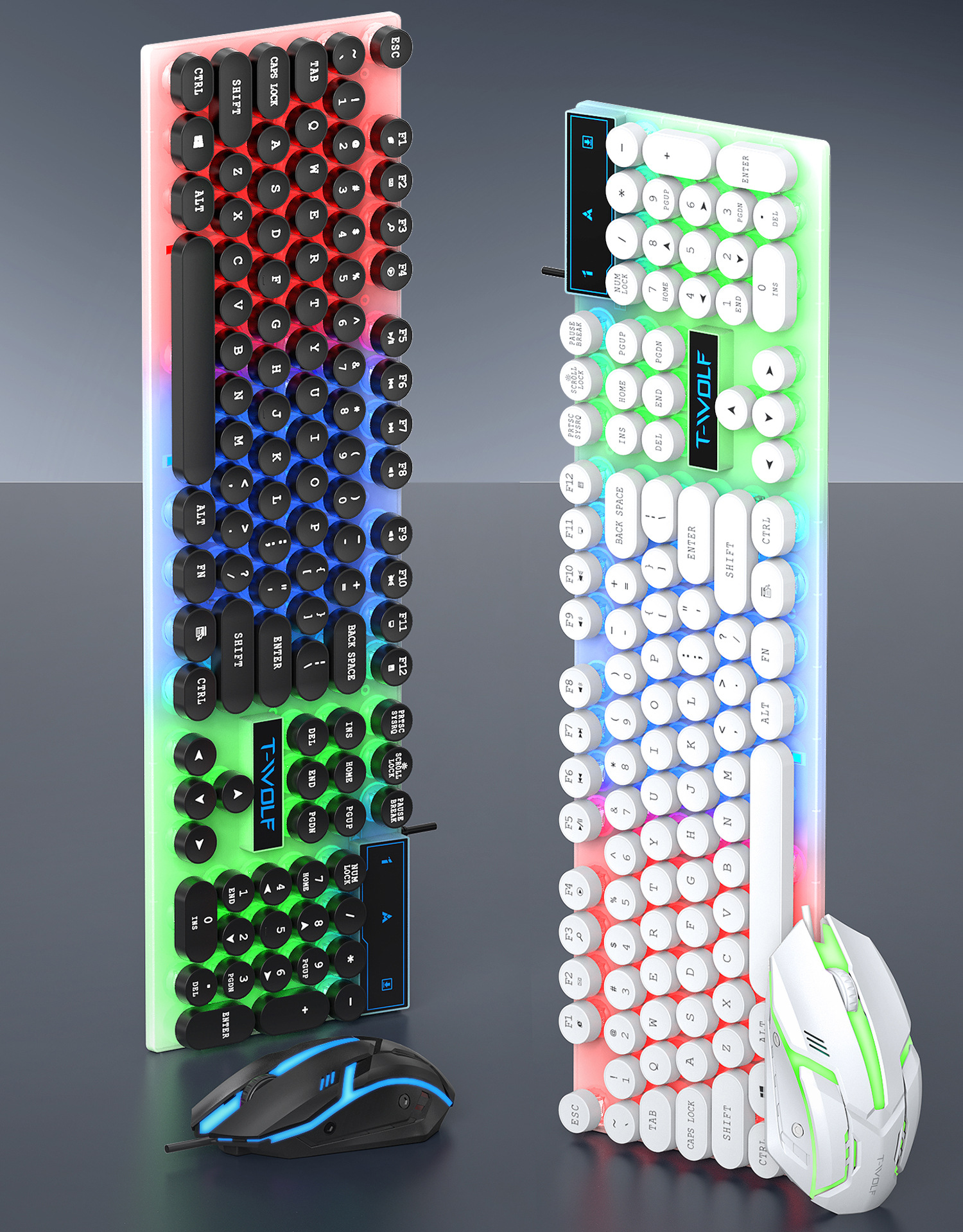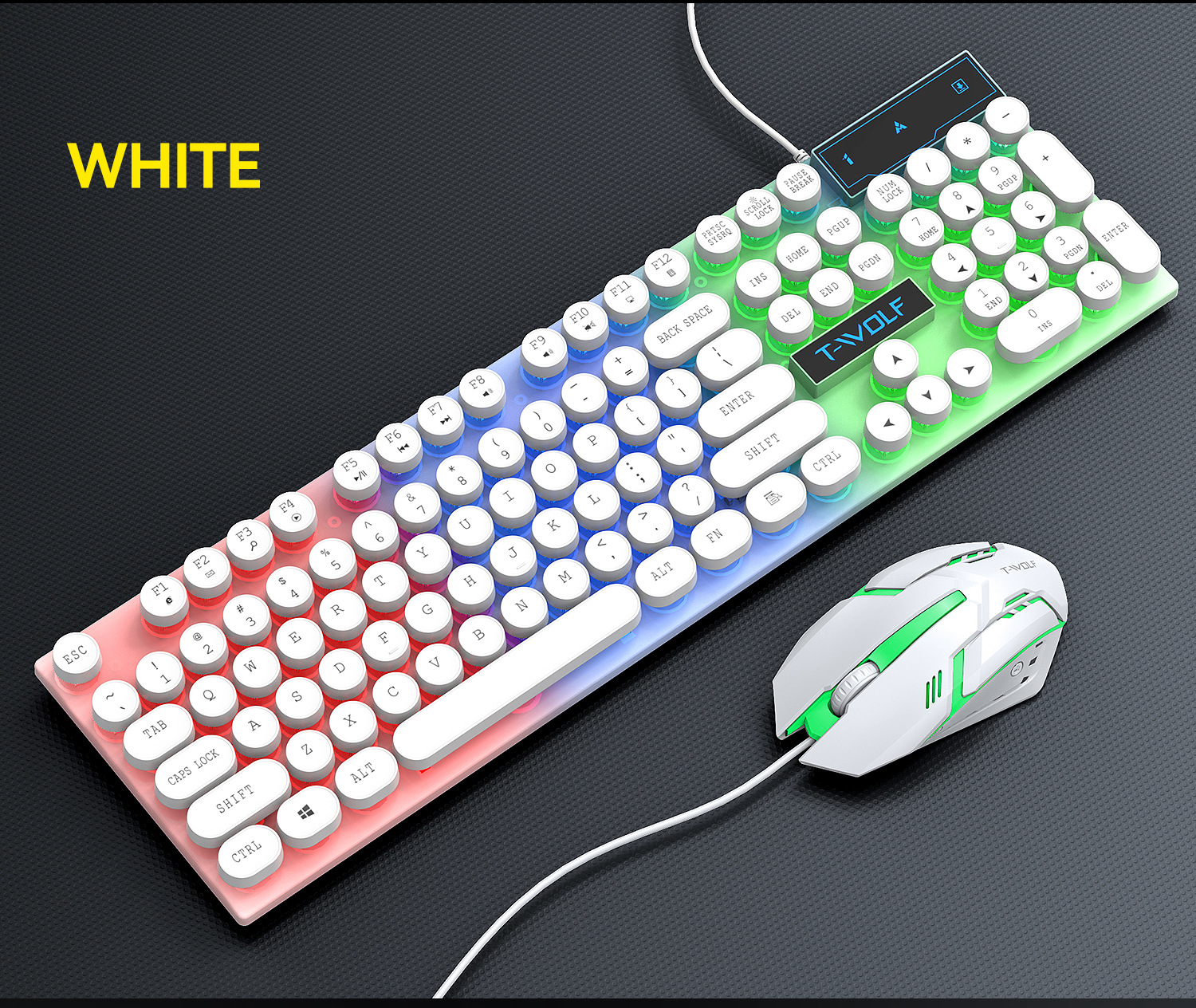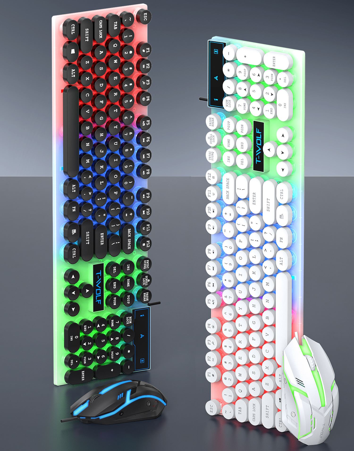0 Review for Retro Wired Glowing Mechanical-feel Keyboard And Mouse Gaming Set