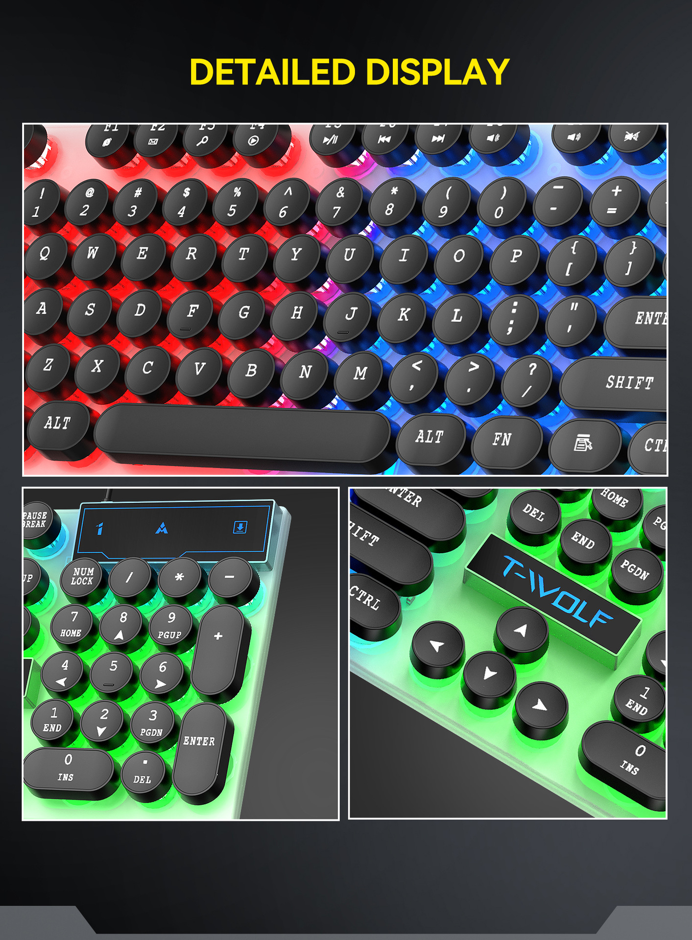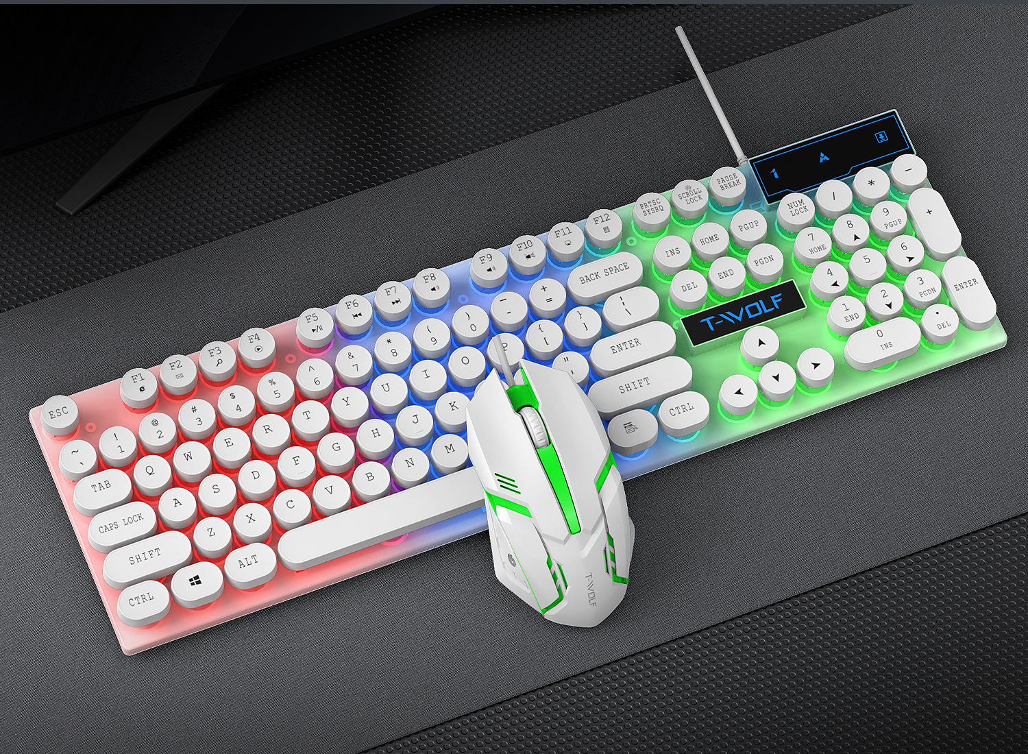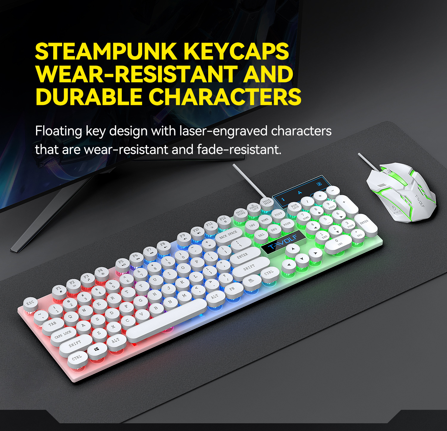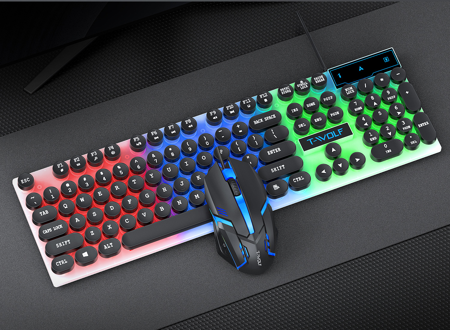 0 Review for Retro Wired Glowing Mechanical-feel Keyboard And Mouse Gaming Set