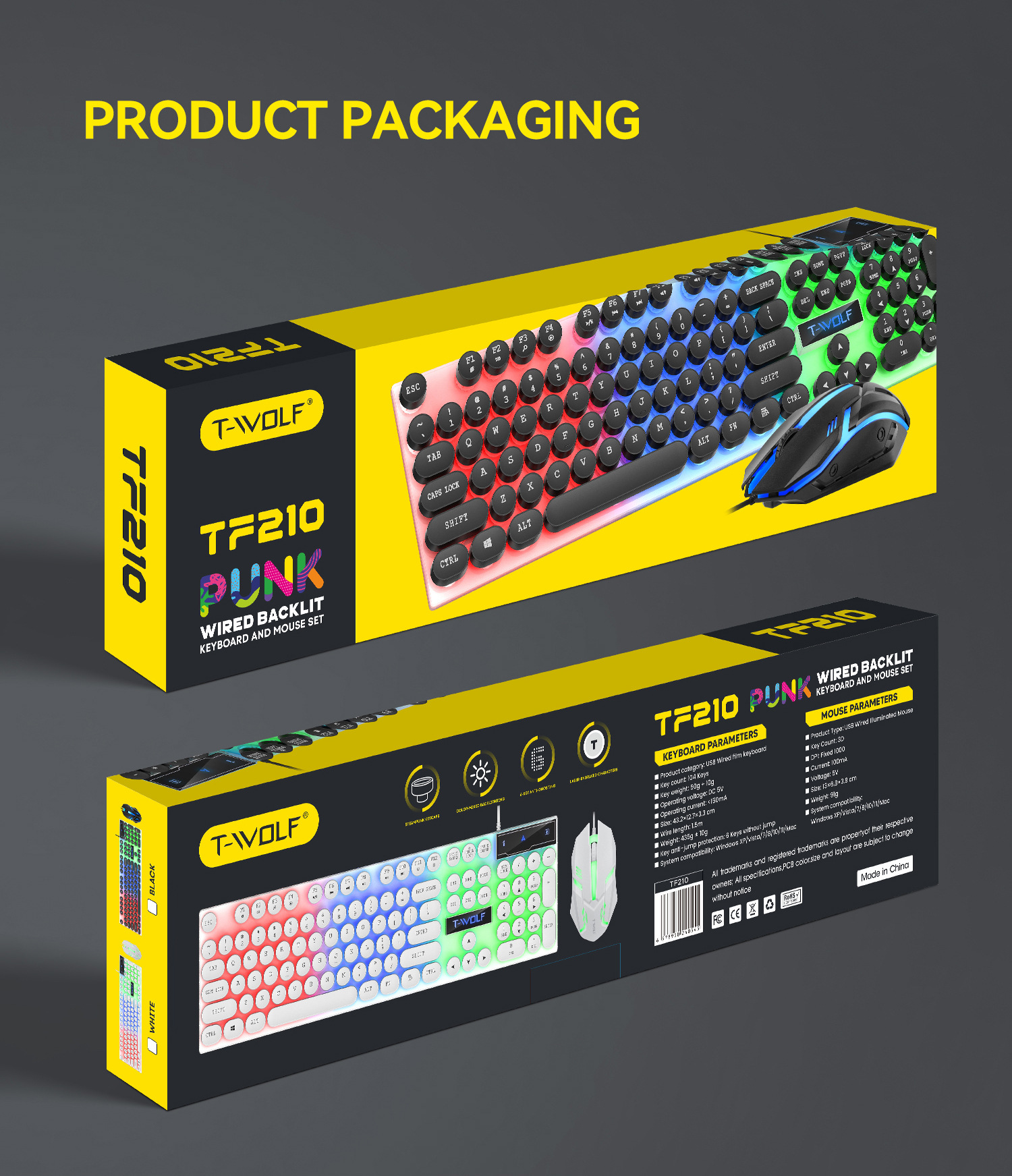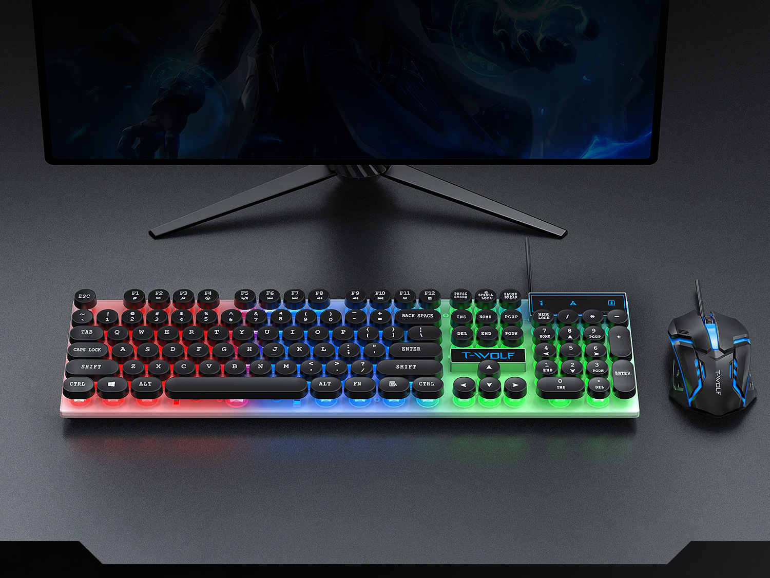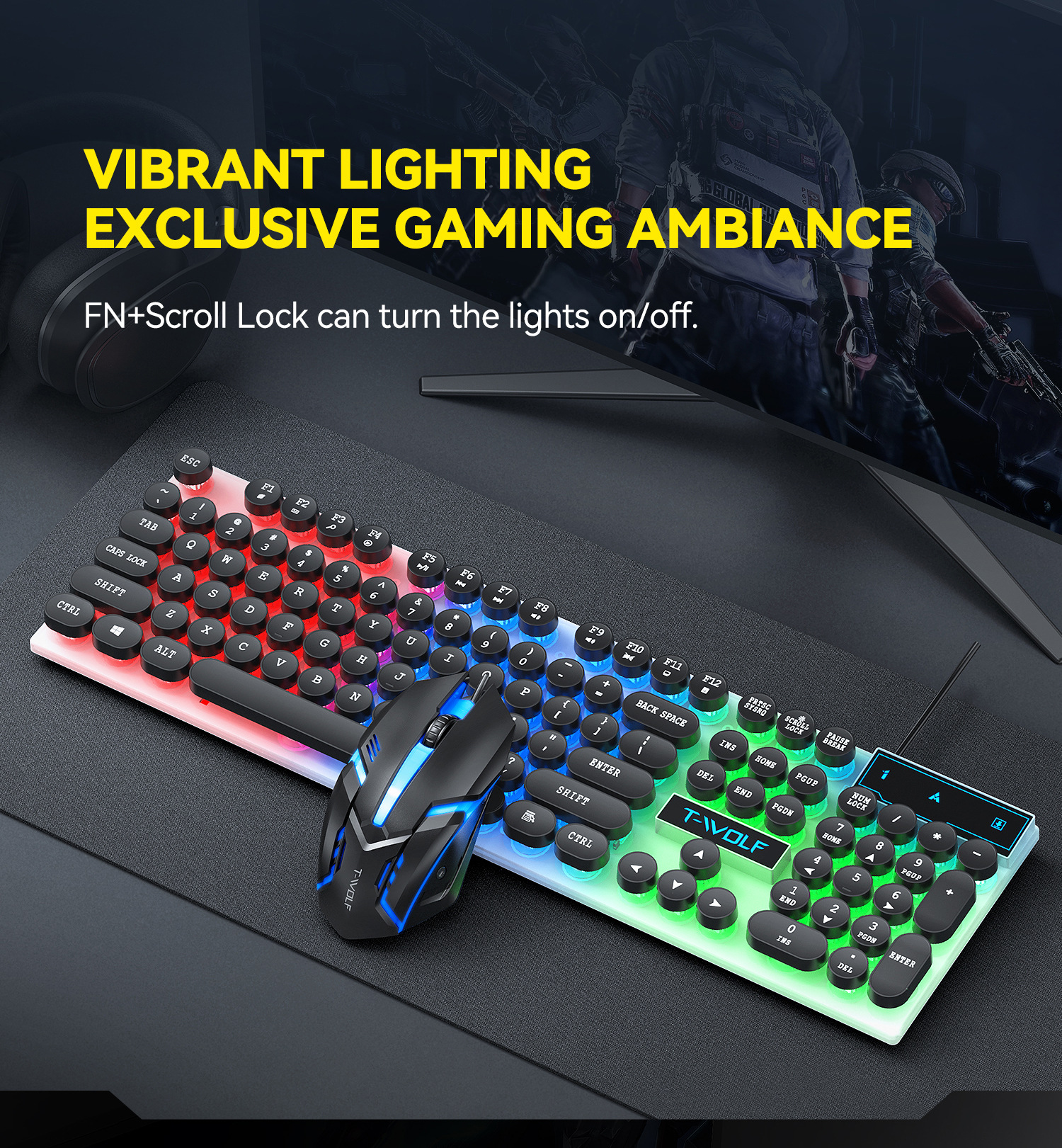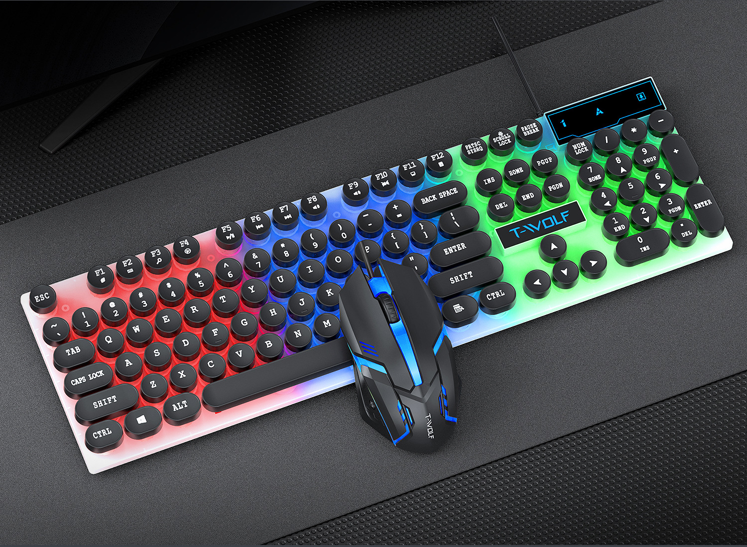 0 Review for Retro Wired Glowing Mechanical-feel Keyboard And Mouse Gaming Set